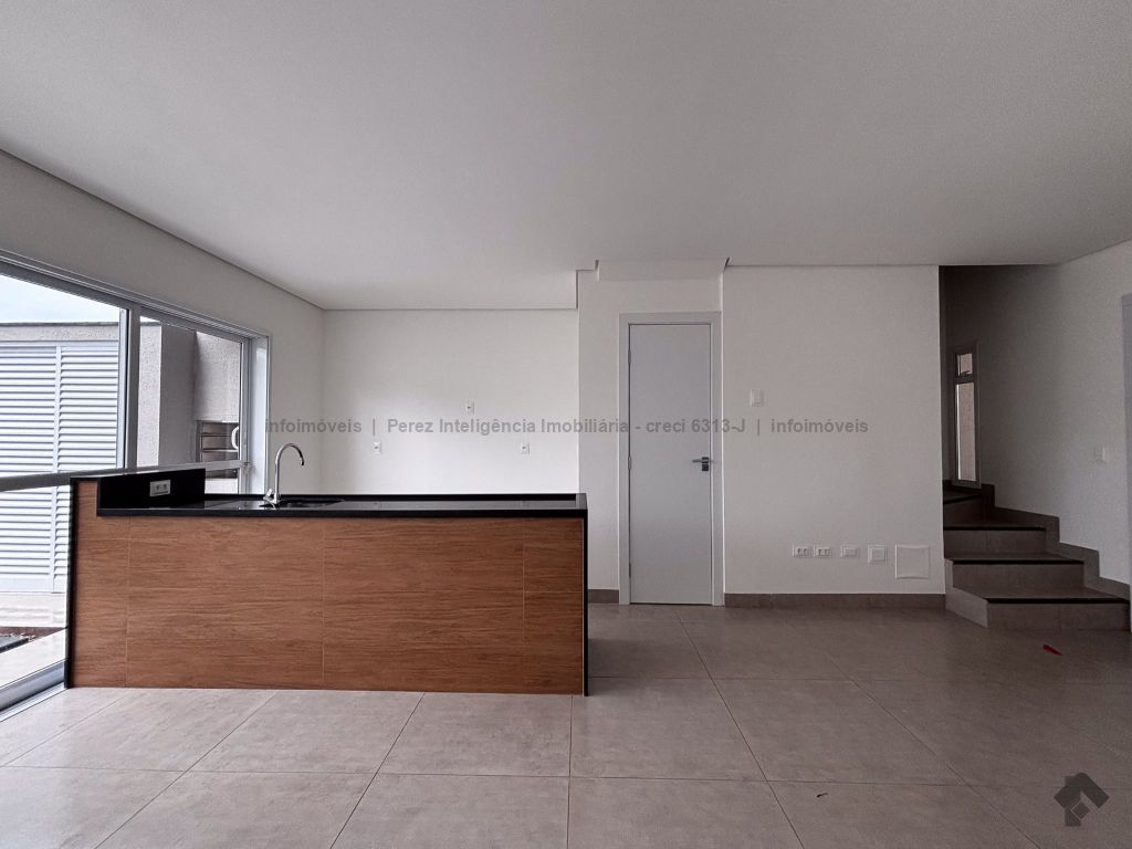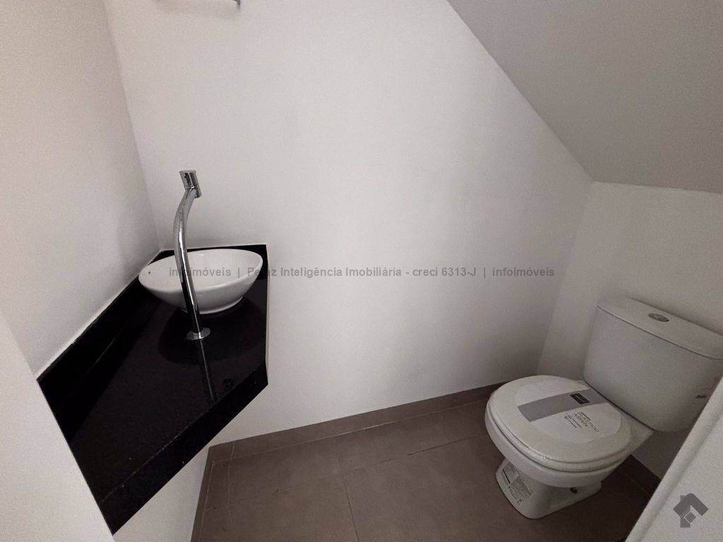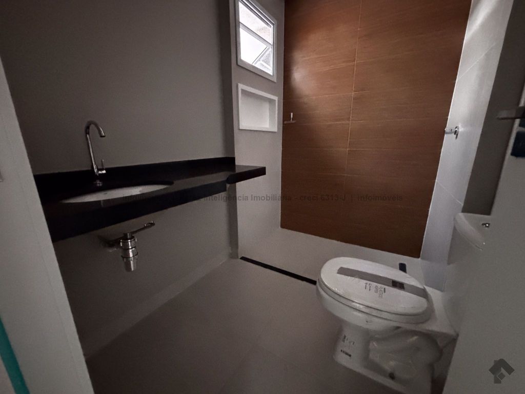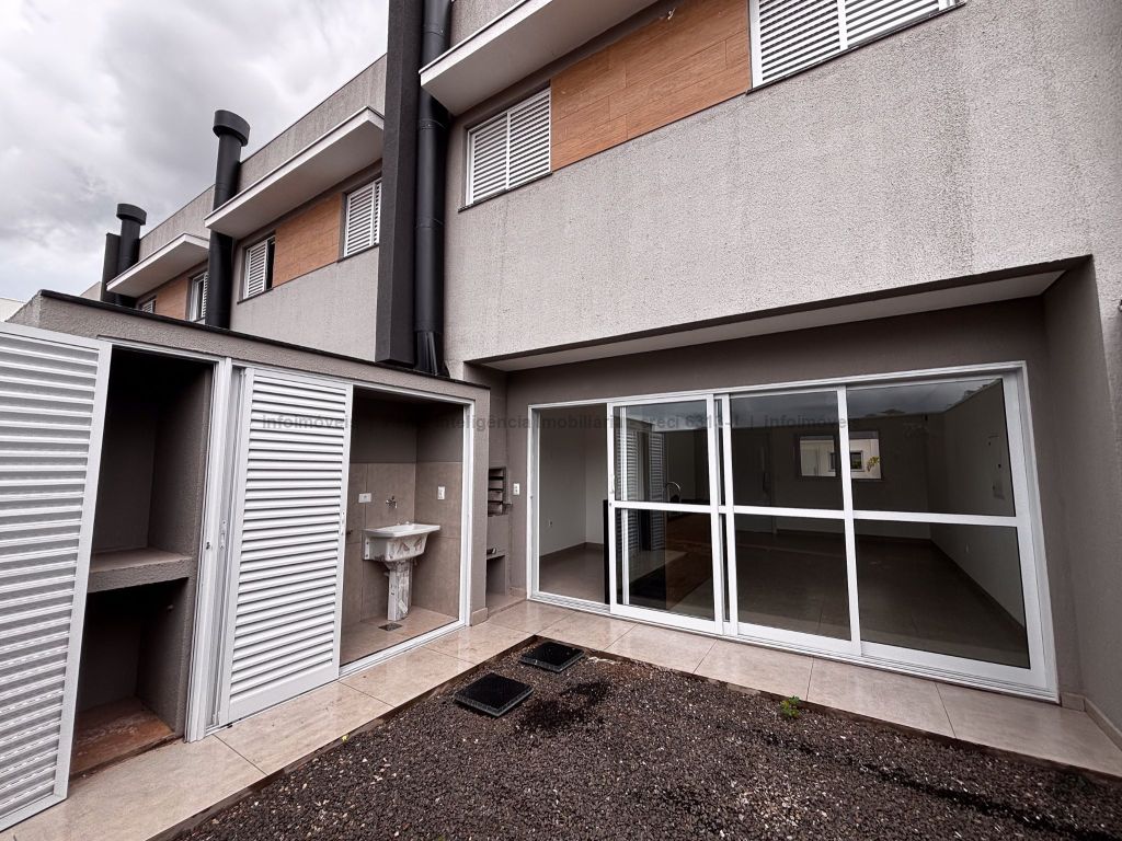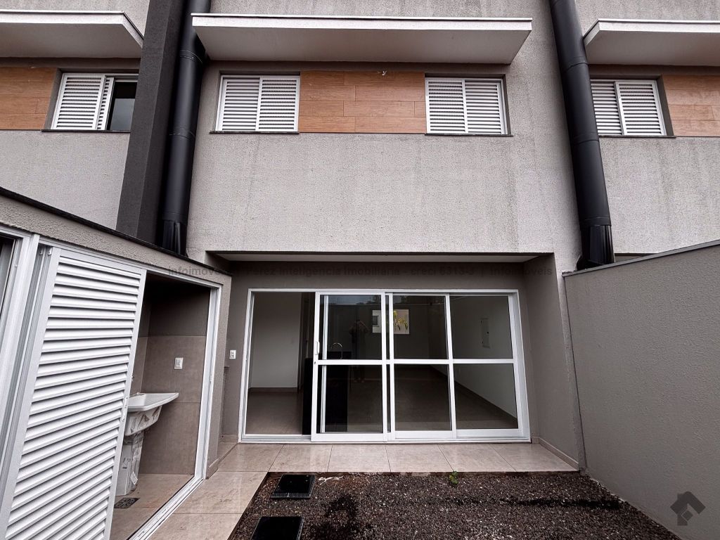 Sobrado com 102 m² de área construída. Ambientes internos: três quartos, sendo um suíte para mais privacidade, uma sala de estar ampla e aconchegante, uma sala de jantar integrada ao ambiente social, um lavabo ideal para visitantes, um WC social para atender os demais dormitórios, uma cozinha funcional e bem planejada, uma área de serviço garantindo praticidade no dia a dia. Ambientes externos: duas vagas de garagem garantindo mais comodidade.