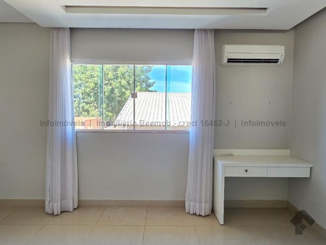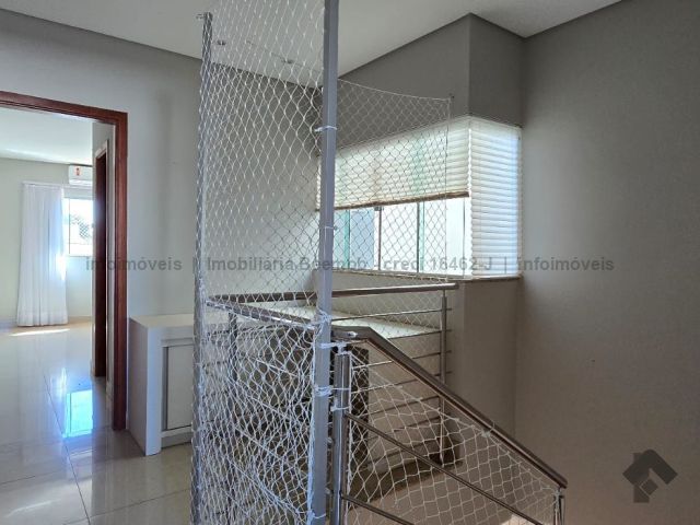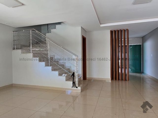 Um excelente sobrado com 3 suítes, sala em 2 ambientes, copa, lavabo, cozinha integrada com a área gourmet e portas em blindex, despensa, área de serviço, corredor lateral. Piso superior: escada, hall com bancada de escritório, 1 suíte com closet, 1 suíte com armários e varanda, 1 suíte com armários e vaga para 3 carros.