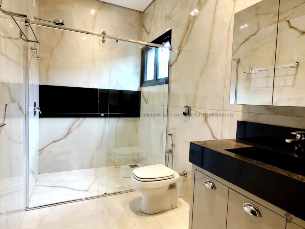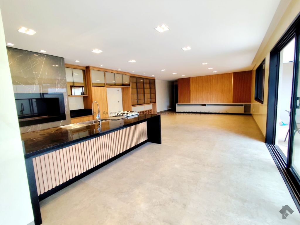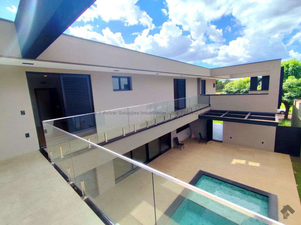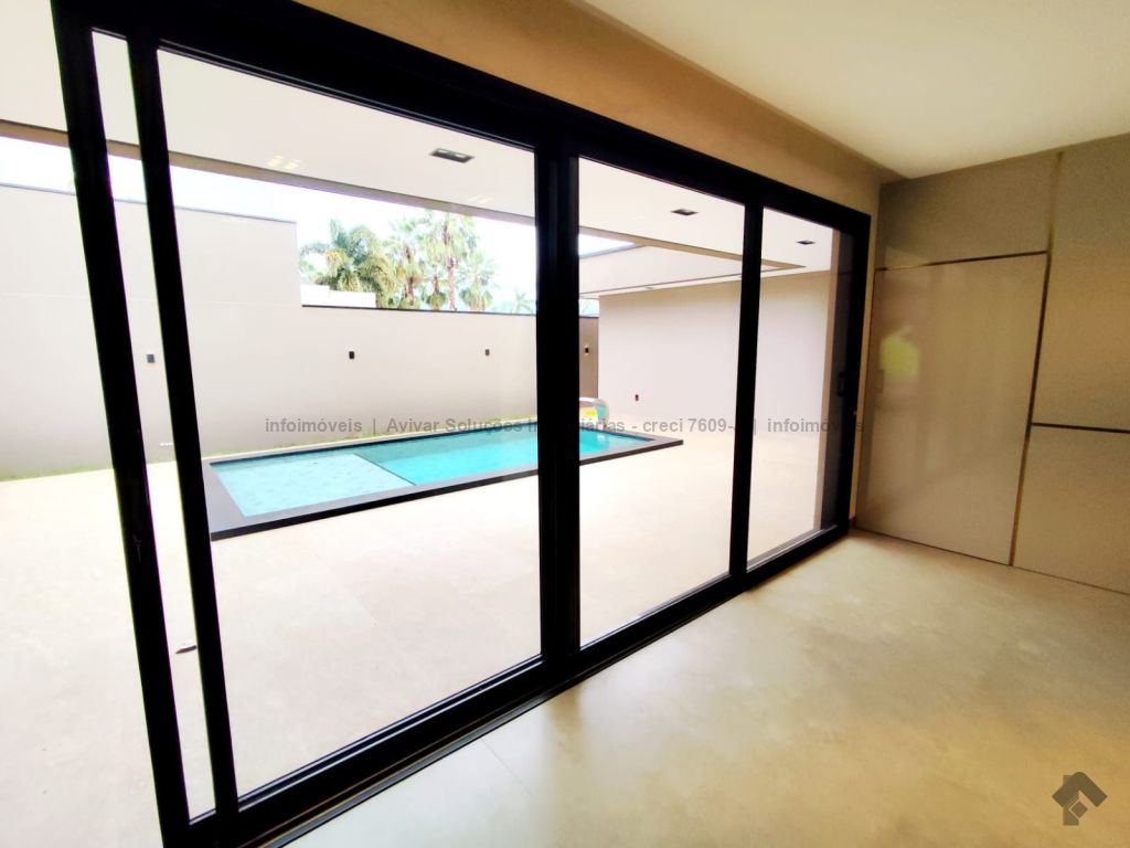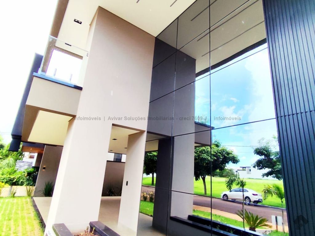 Excelente sobrado com sala de TV com painel, sala de jantar, cozinha gourmet com armários e churrasqueira, banheiro social com gabinete, três suítes com closet na parte superior e uma suíte na parte inferior, área de serviço ampla, piscina com cascata, iluminação e prainha e garagem coberta para quatro carros.