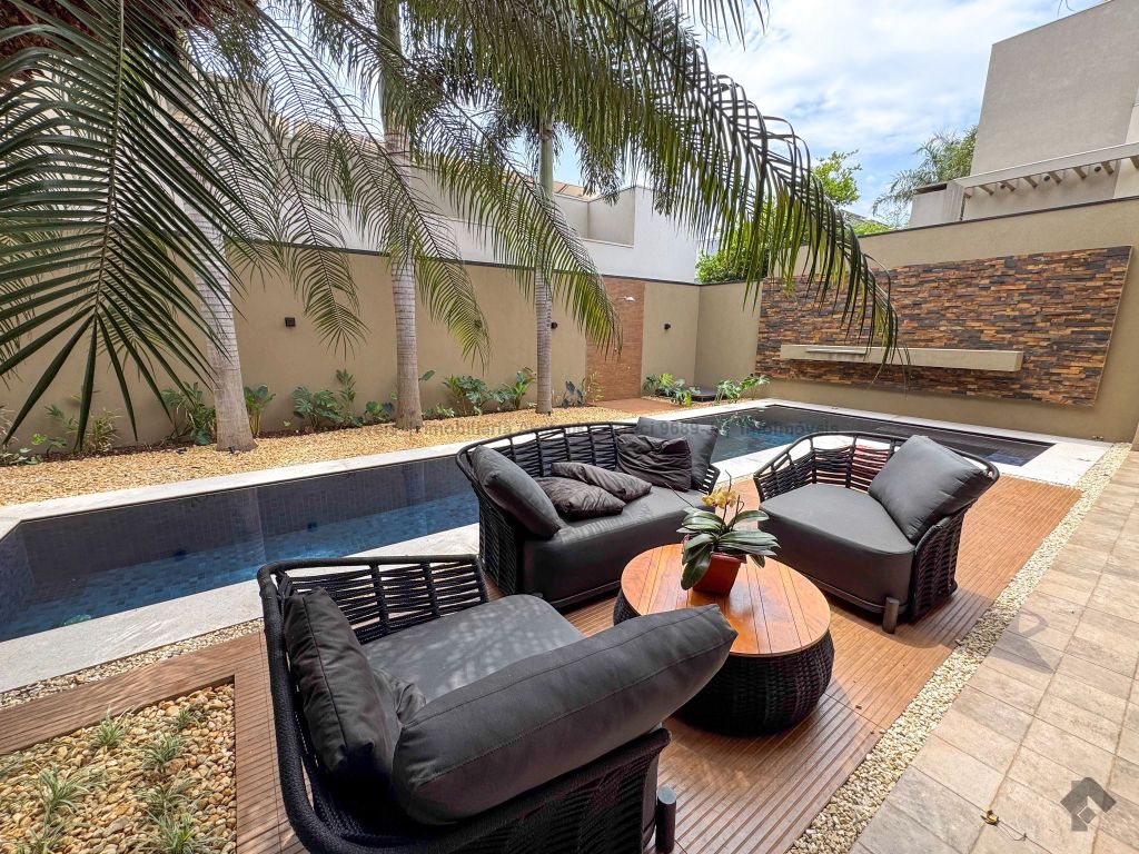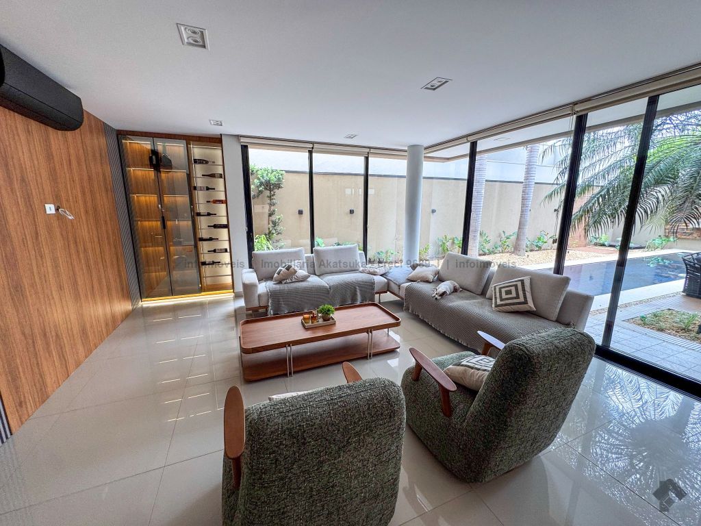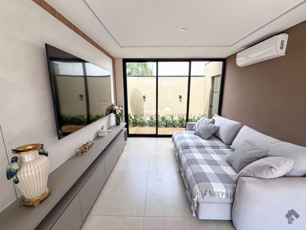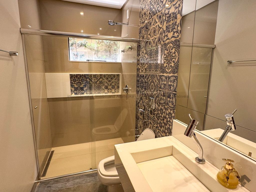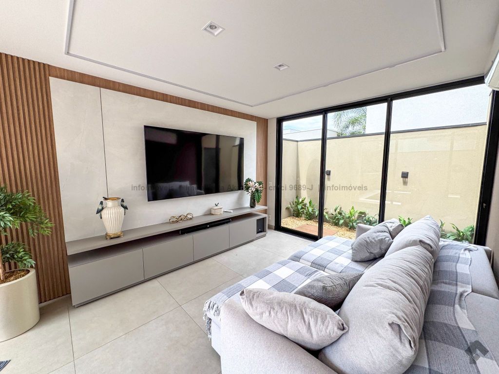 Sobrado de alto padrão no condomínio Ecoville II com móveis planejados e 343 m² de área construída em um terreno de 450 m². A residência conta com energia fotovoltaica, boiler pressurizado e 4 suítes.