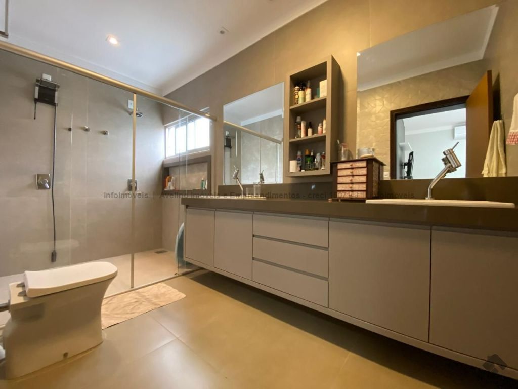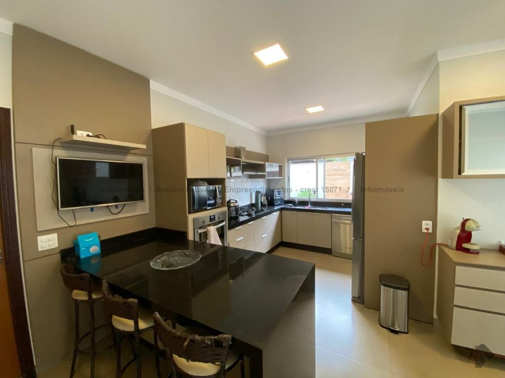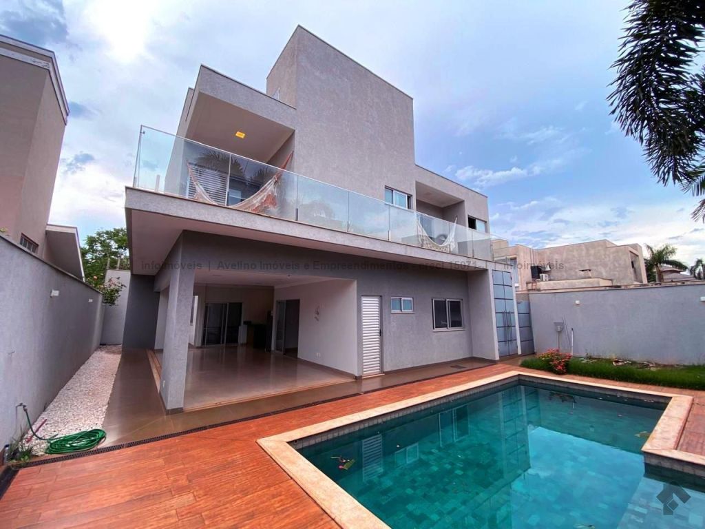 04 vagas de garagem sendo duas cobertas, 04 suítes sendo uma com closet (02 delas com sacada para a piscina nos fundos), escritório embaixo, sala de estar, sala de jantar, cozinha planejada com despensa, espaço gourmet completo com banheiro, lavanderia, piscina com cascata, depósito ao lado da piscina, entrada lateral, terraço descoberto.