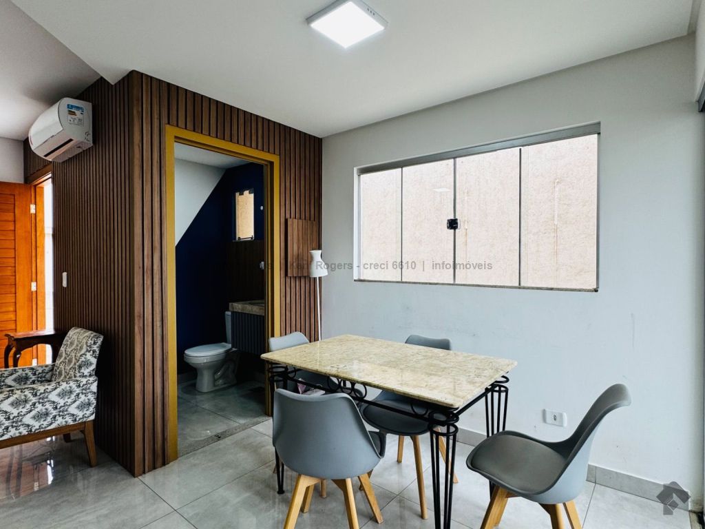 Sala de estar, sala de jantar, sala de TV, lavabo, uma suíte com closet, dois quartos, um banheiro, varanda gourmet com churrasqueira e garagem. Sobrado com uma suíte com closet e armários planejados, dois quartos com ar condicionado, sala, cozinha planejada integrada à varanda gourmet com churrasqueira, condomínio com piscina, espaço de festa com churrasqueira e uma área verde, garagem para dois veículos, segurança, conforto e localização privilegiada. Todo planejado, rico em pedra. Área gourmet nova com coifa e cooktop. Parede com pintura em mármore. Ares-condicionados. Todo reformado.