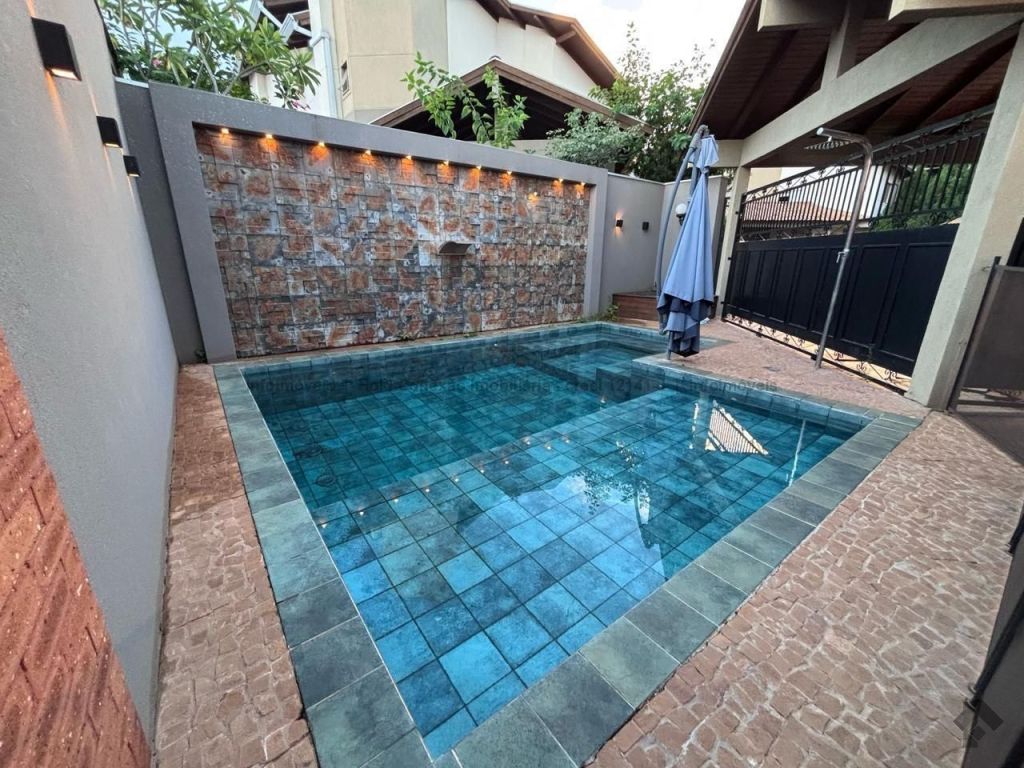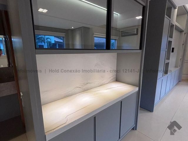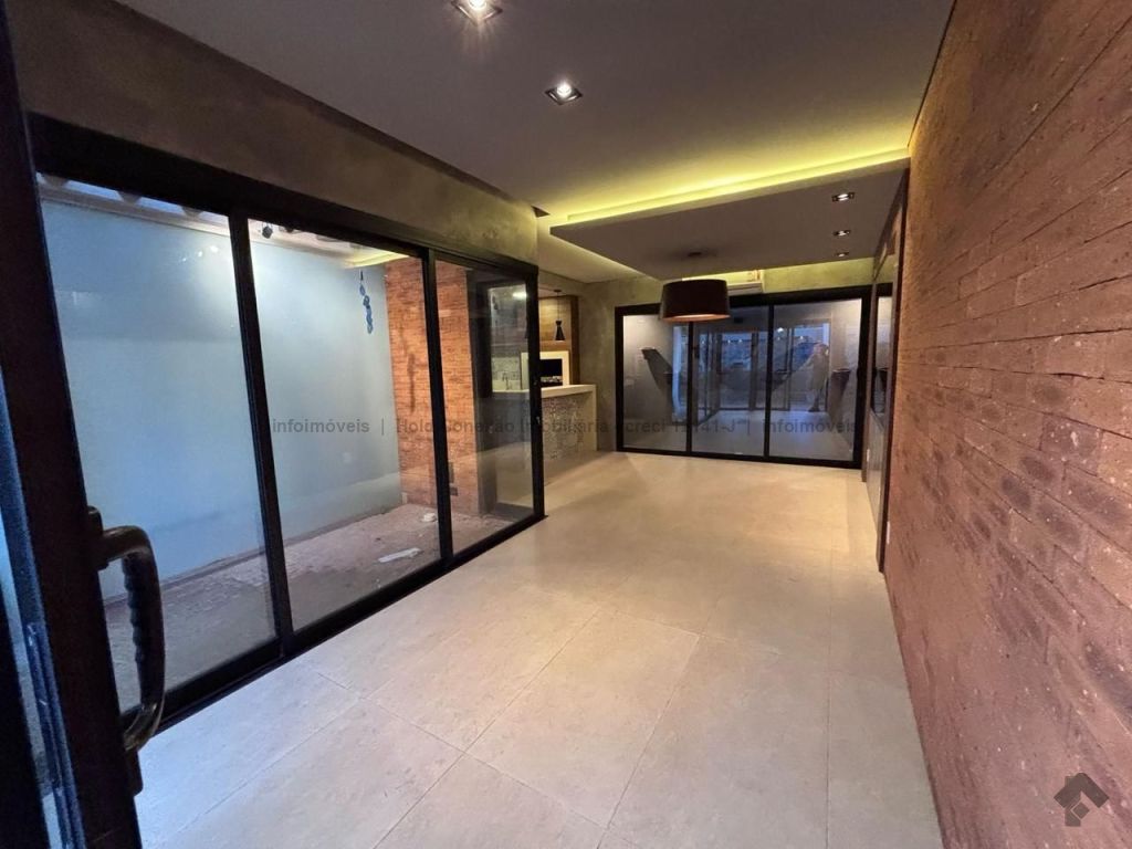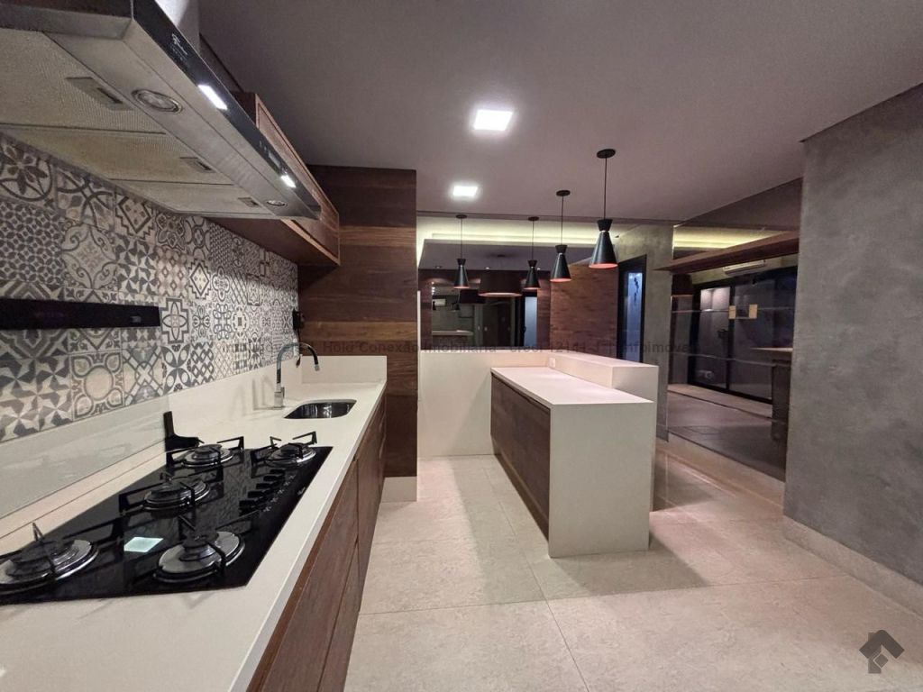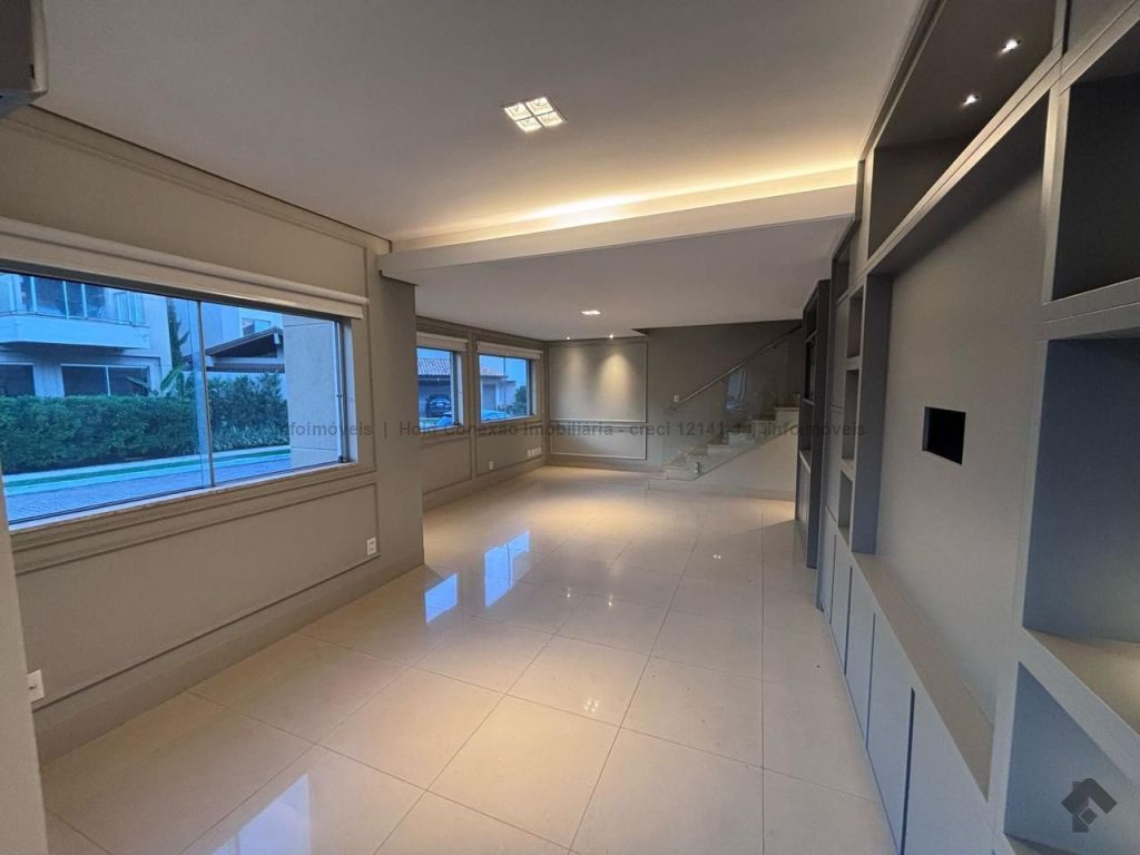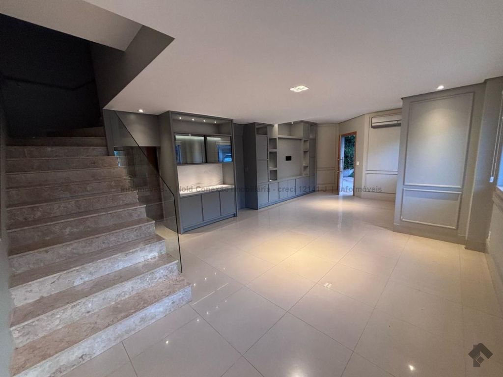 No piso inferior, esse sobrado conta com sala para dois ambientes, lavabo, cozinha, lavanderia, espaço gourmet, piscina aquecida e banheiro externo. No piso superior, esse sobrado conta com 3 suítes, sala íntima, rico em armários.