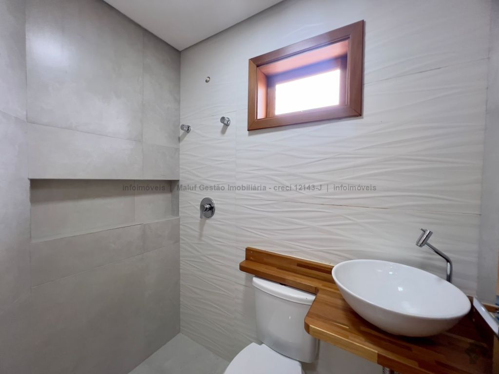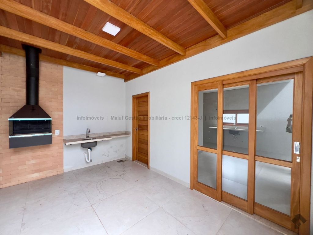 O sobrado conta com 1 suíte e 2 quartos, WC social, sala para dois ambientes com lavabo, cozinha ampla, área de serviço coberta, varanda gourmet com churrasqueira e bancada, garagem para 2 carros, boiler e preparação para câmeras e ar condicionado.