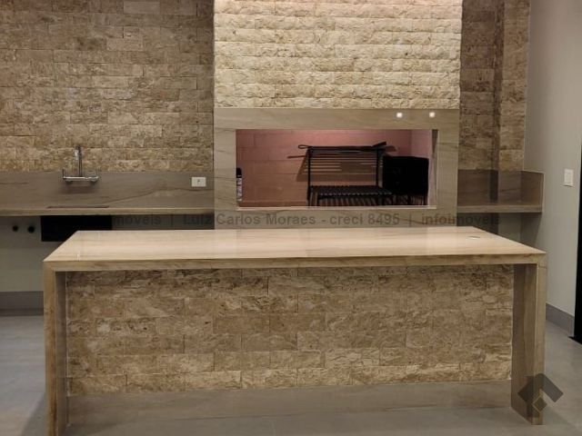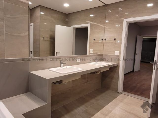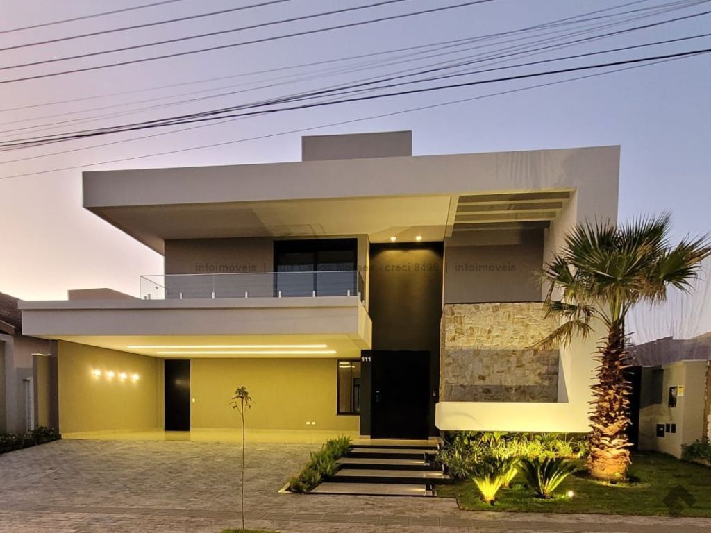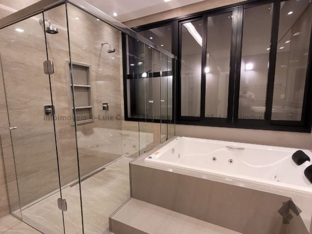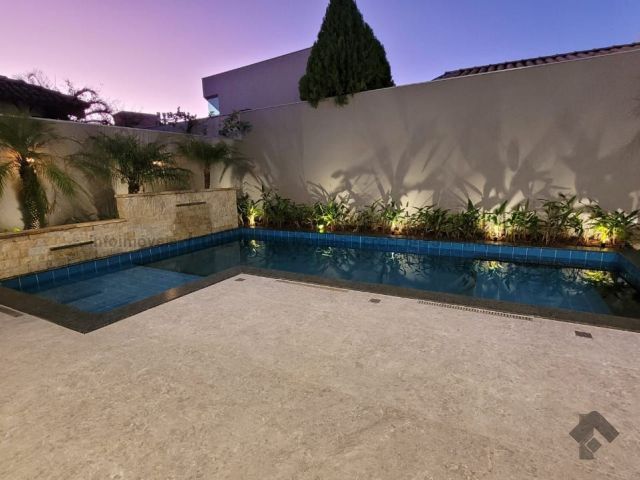 Excelente projeto: térreo, garagem coberta para 03 carros e 03 descobertos, sala estar, jantar com pé direito duplo, escritório, lavabo, pré instalação elevador, lavabo, sala home (opção apto), copa cozinha, despensa, lavanderia, deposito interno e externo, banheiro funcionário, espaço gourmet amplo climatizador com churrasqueira e parrilla, banheiro social, piscina aquecida com hidro e prainha, com iluminação LED. Cascata, deck muito espaçoso pavimento superior: 02 suítes master com closet, 02 apartamentos, brinquedoteca, copinha apoio, roupeiro, sacada, jardim de inverno. Esquadrias automatizadas com tela mosquiteiro, portas internas laqueadas, ar condicionado em toda casa.
