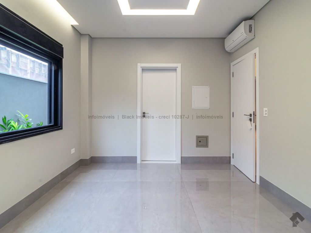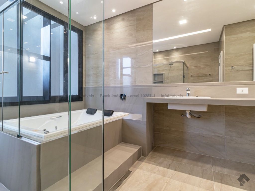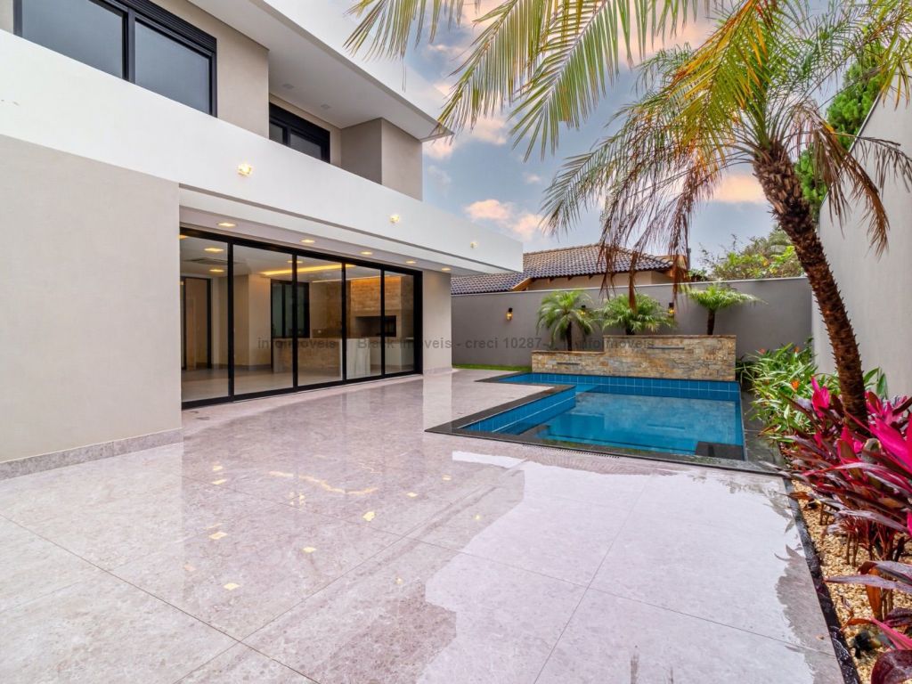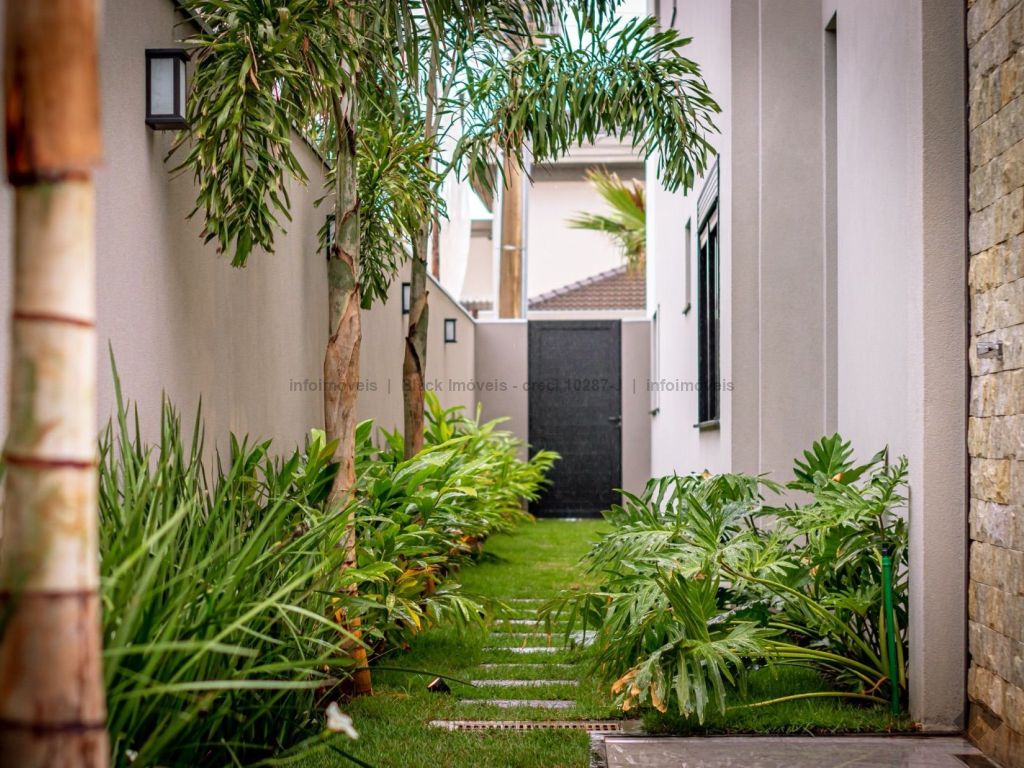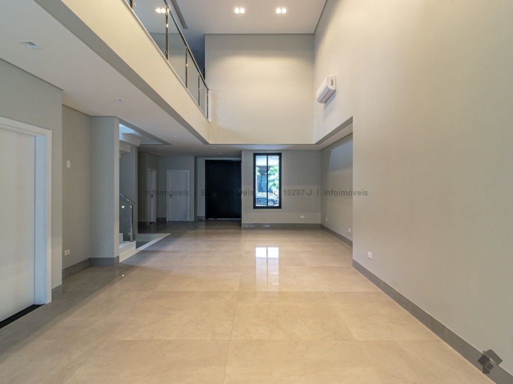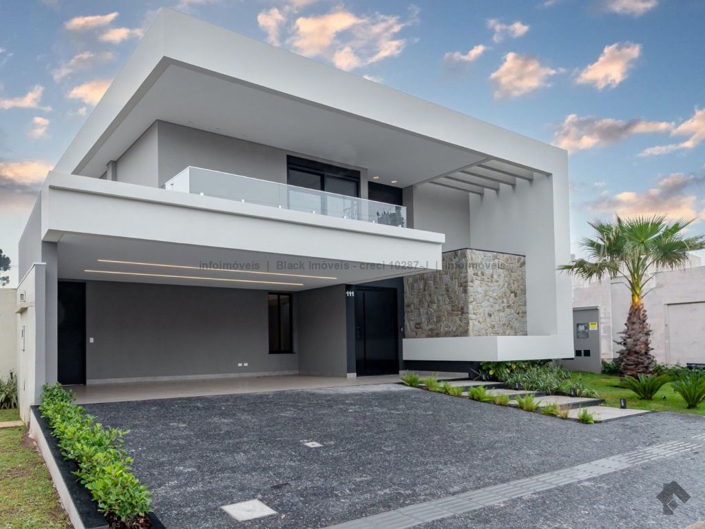 Sobrado fantástico. Pavimento inferior: sala com pé direito duplo, living estar, jantar, escritório, lavabo, preparação para elevador, piso rebaixado na escada, sala home (opcional para apto com acessibilidade), cozinha, espaço gourmet amplo, lavabo. Pavimento superior: 1 suíte máster com closet banheiro com banheira, sacada, 1 suíte com sacada, 02 apto grandes, 1 brinquedoteca, 1 copinha. Diferencias do imóvel: persianas automatizadas com tela mosquiteiro nos quartos, aquecimento água solar para casa e piscina, equipamento fotovoltaico, irrigação jardins automatizada, ar condicionado em todos os ambientes, cabeamento lógico e TV, planejados no escritório, sala home, espaço gourmet, cozinha.