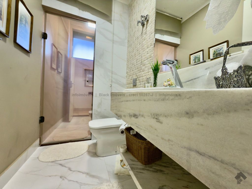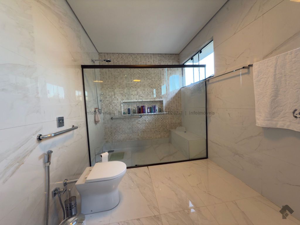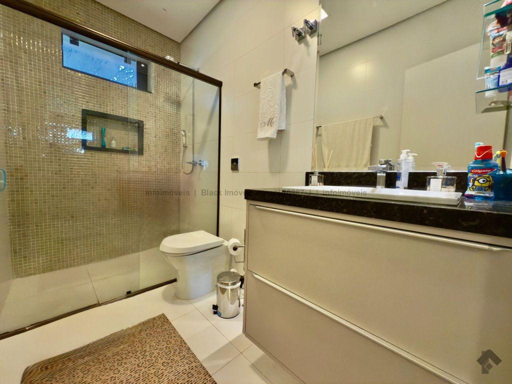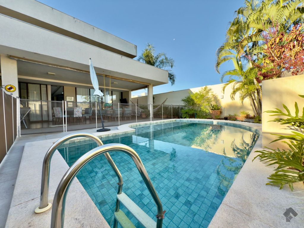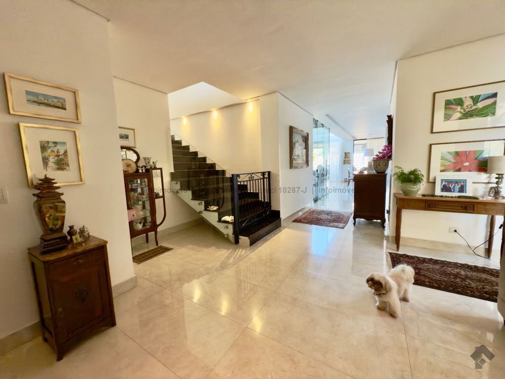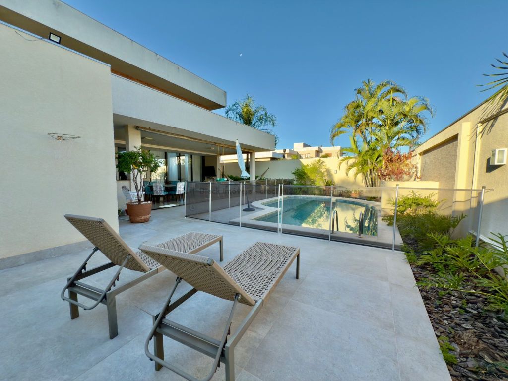Sobrado no Residencial Damha I, 401,05 m² de área útil e 551,62 m² de área total. Hall de entrada, 3 suítes no piso superior, sendo uma delas com closet, 1 dormitório no piso inferior, banheiro social, sala de TV, living amplo para 2 ambientes, cozinha completa, lavanderia, varanda gourmet com churrasqueira, banheiro externo, piscina aquecida, garagem para até 4 veículos.
