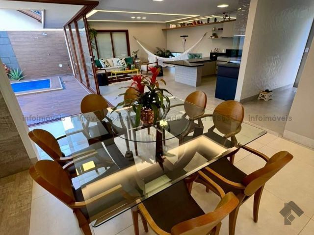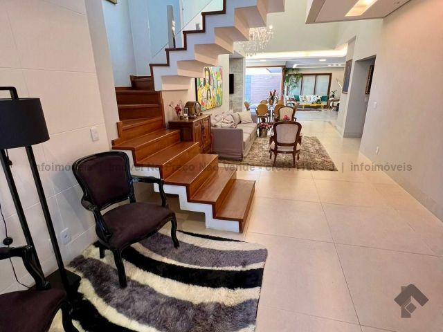 3 suítes, sendo 1 master com sacada, deck, sala 2 ambientes, lavabo, sala de TV/home, cozinha, escritório, área gourmet, área de serviço, piscina aquecida, 4 vagas de garagem, sendo 2 cobertas.