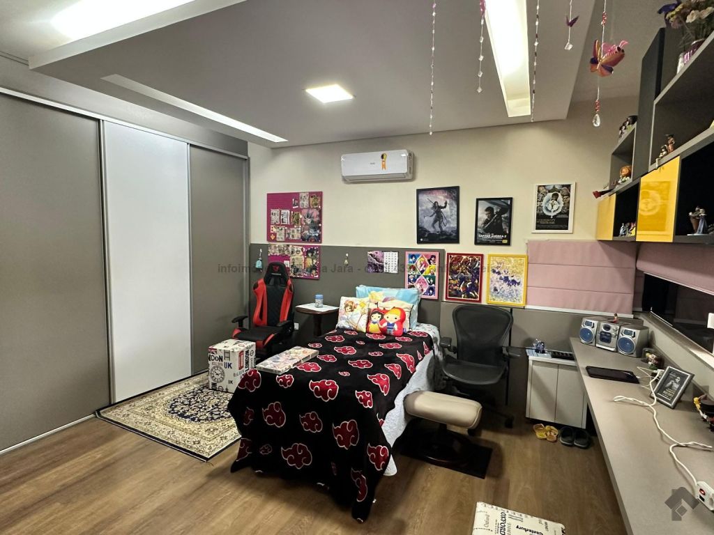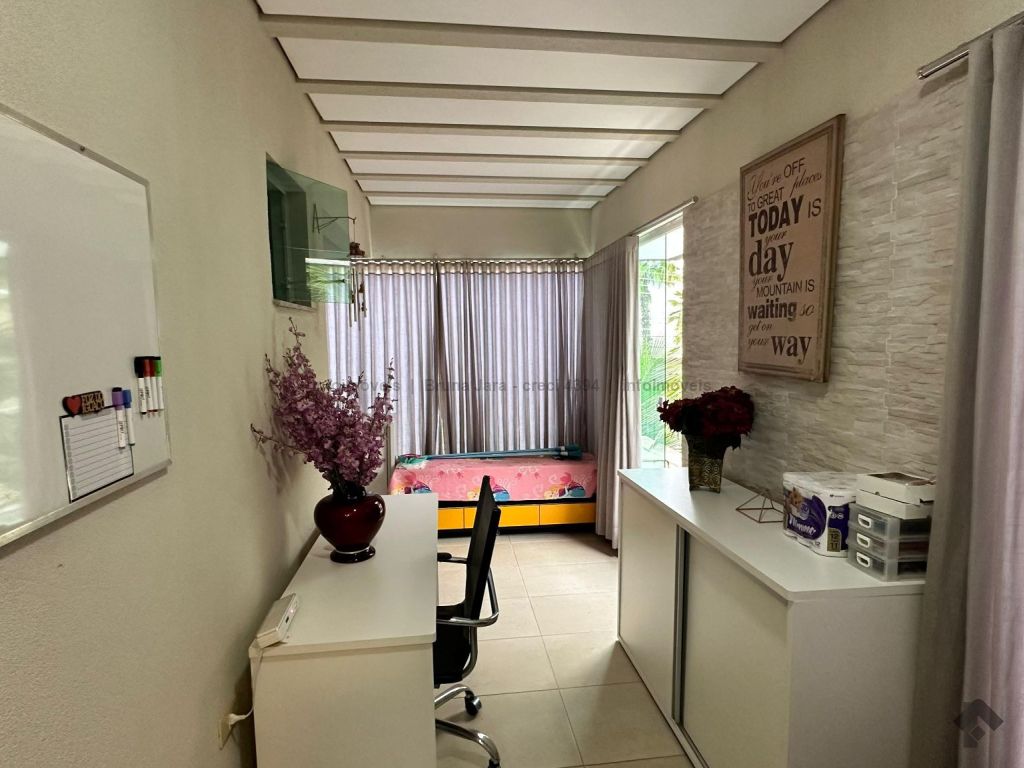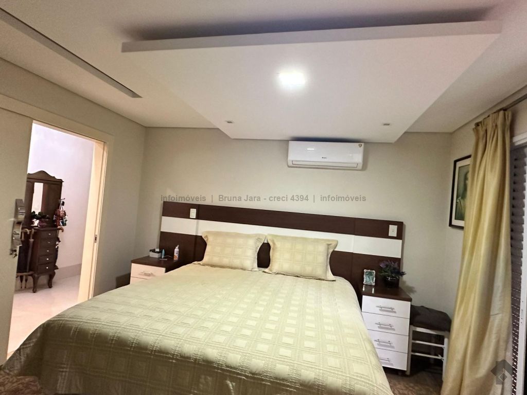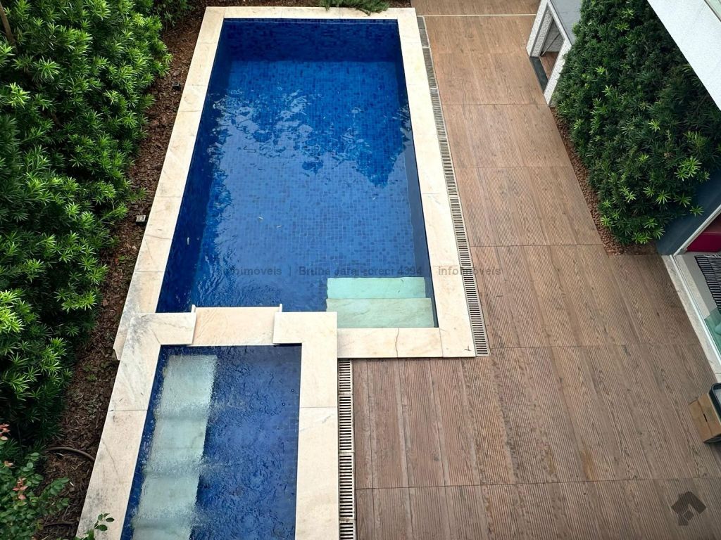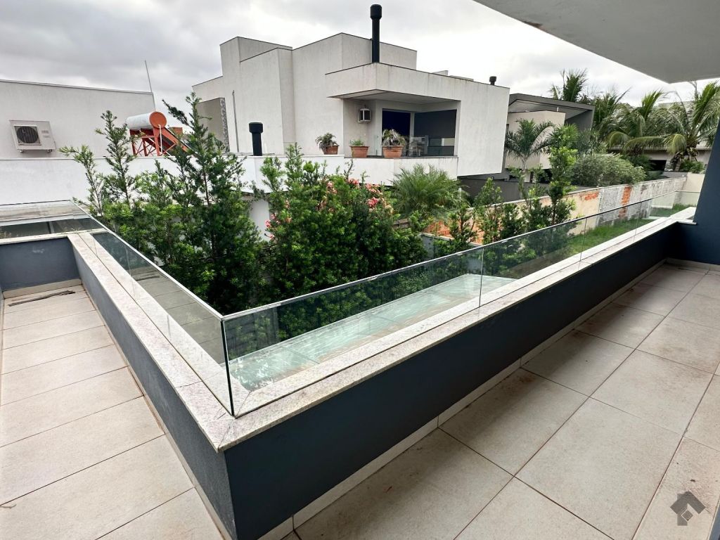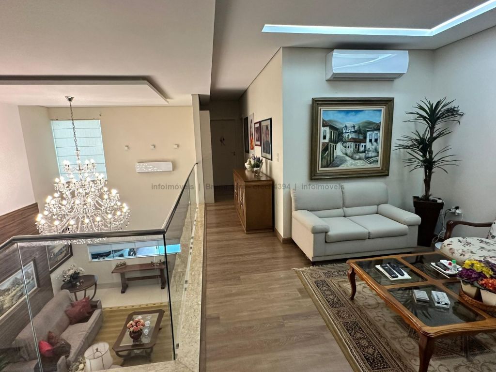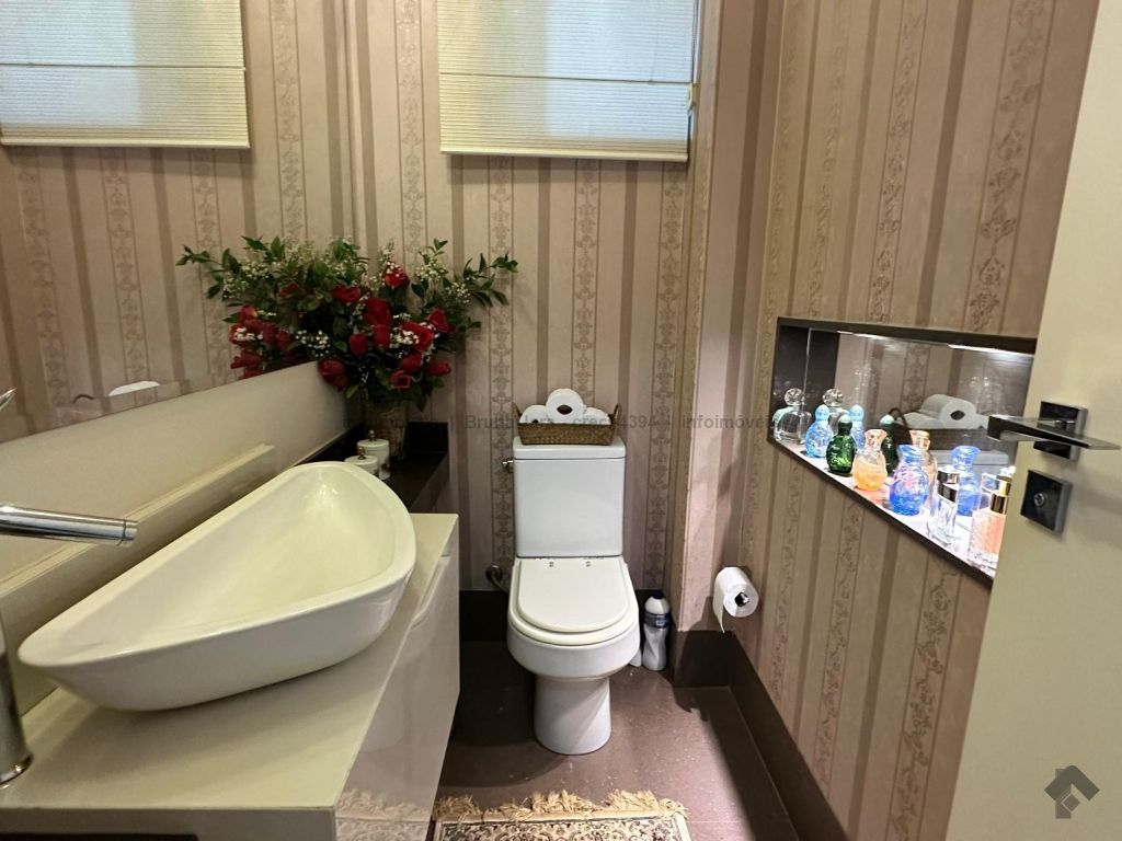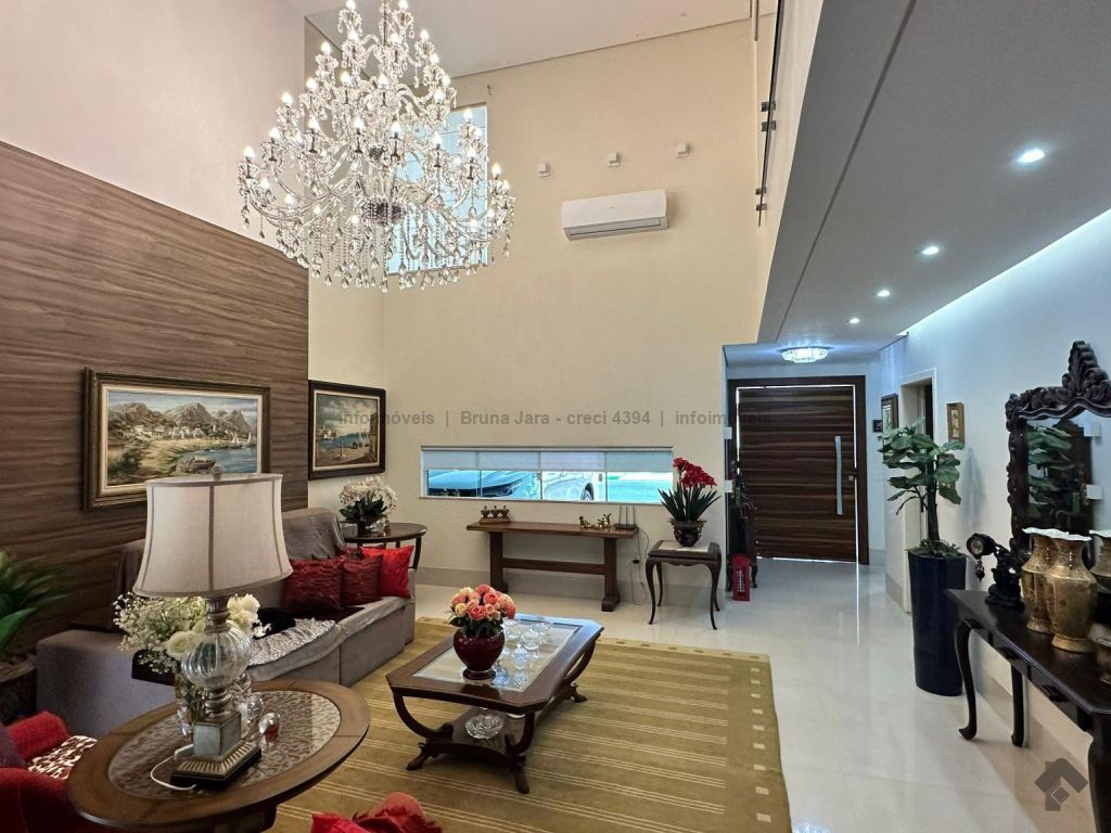Sobrado bem estruturado, sendo o projeto elaborado por arquiteto renomado. No piso térreo, é composto por suíte máster, escritório, lavabo, sala ampla de estar, jantar e de TV, cozinha planejada e equipada, área gourmet com churrasqueira, área de serviço, despensa e piscina aquecida. No piso superior, é composto por hall, sala íntima/TV, 03 suítes com sacada. Os ambientes são planejados e climatizados.