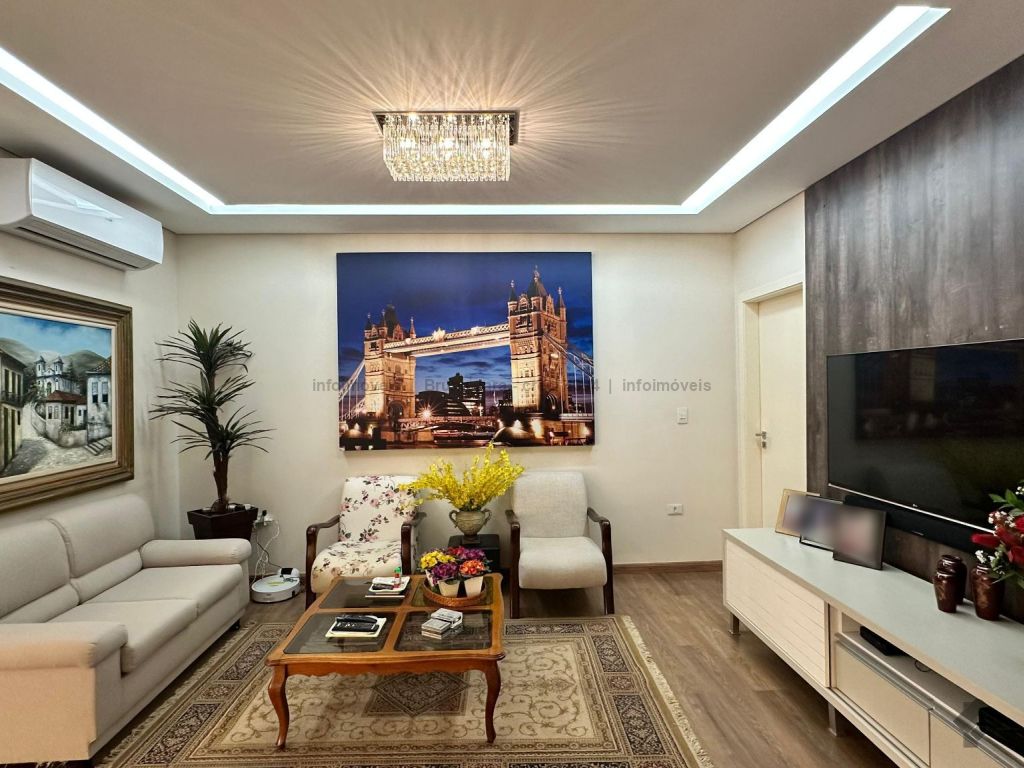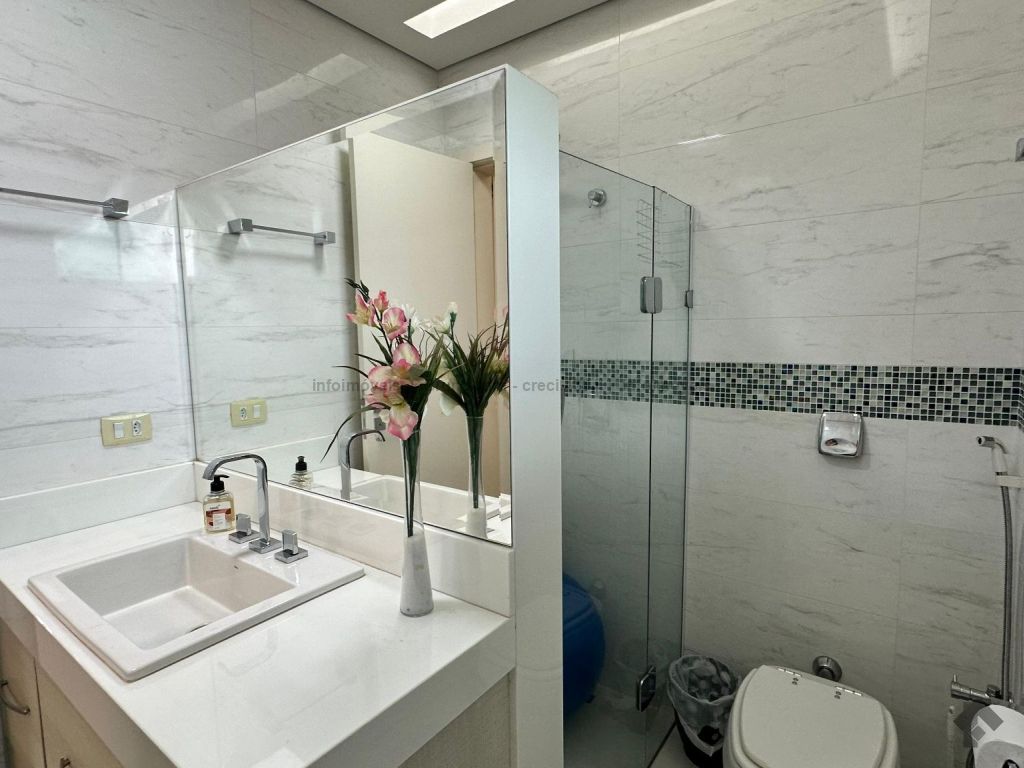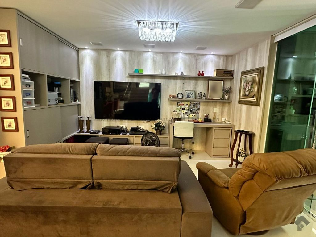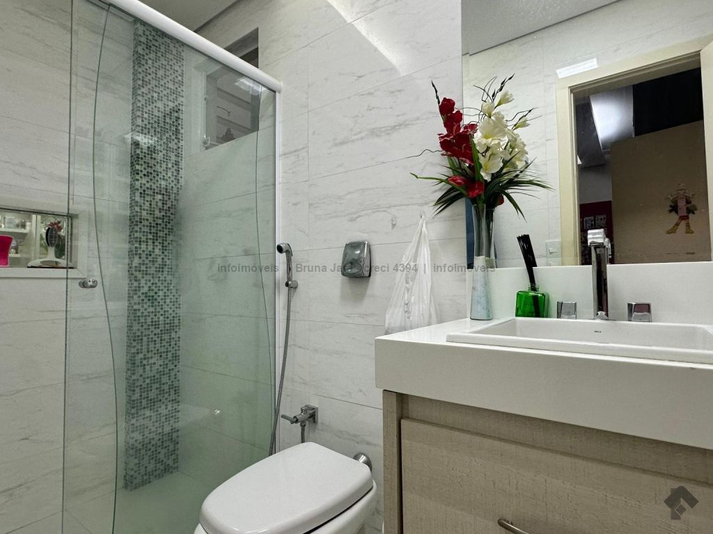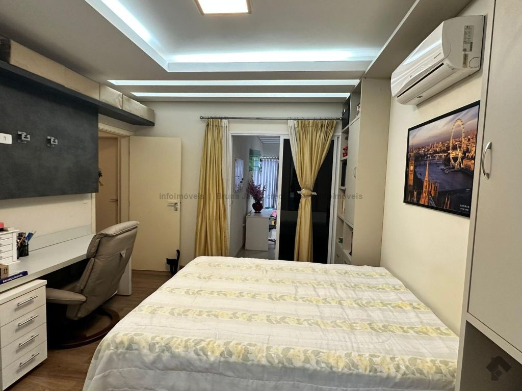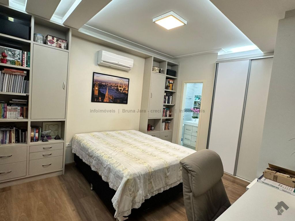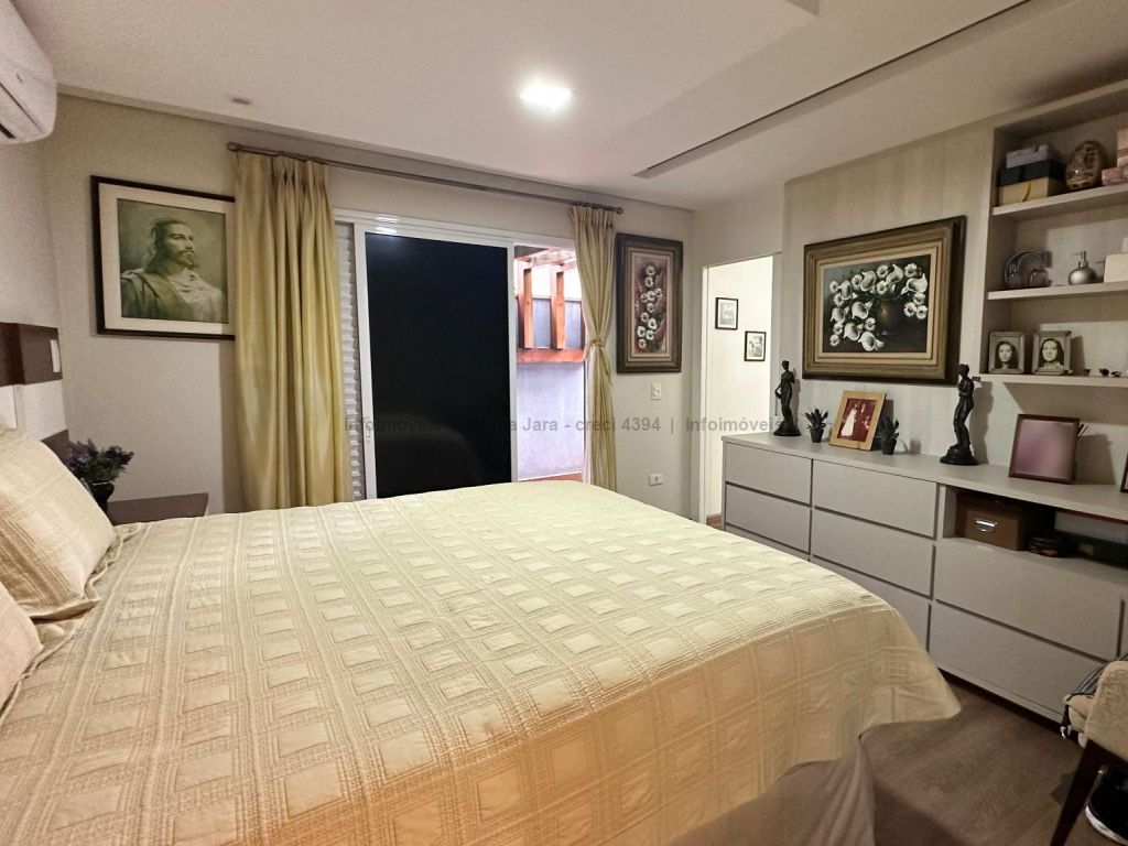Sobrado bem estruturado, sendo o projeto elaborado por arquiteto renomado. No piso térreo, é composto por suíte máster, escritório, lavabo, sala ampla de estar, jantar e de TV, cozinha planejada e equipada, área gourmet com churrasqueira, área de serviço, despensa e piscina aquecida. No piso superior, é composto por hall, sala íntima/TV, 03 suítes com sacada. Os ambientes são planejados e climatizados.