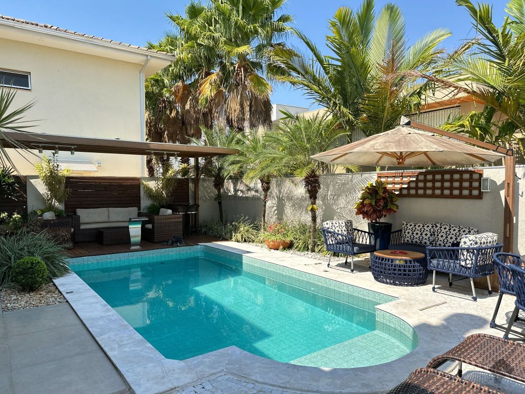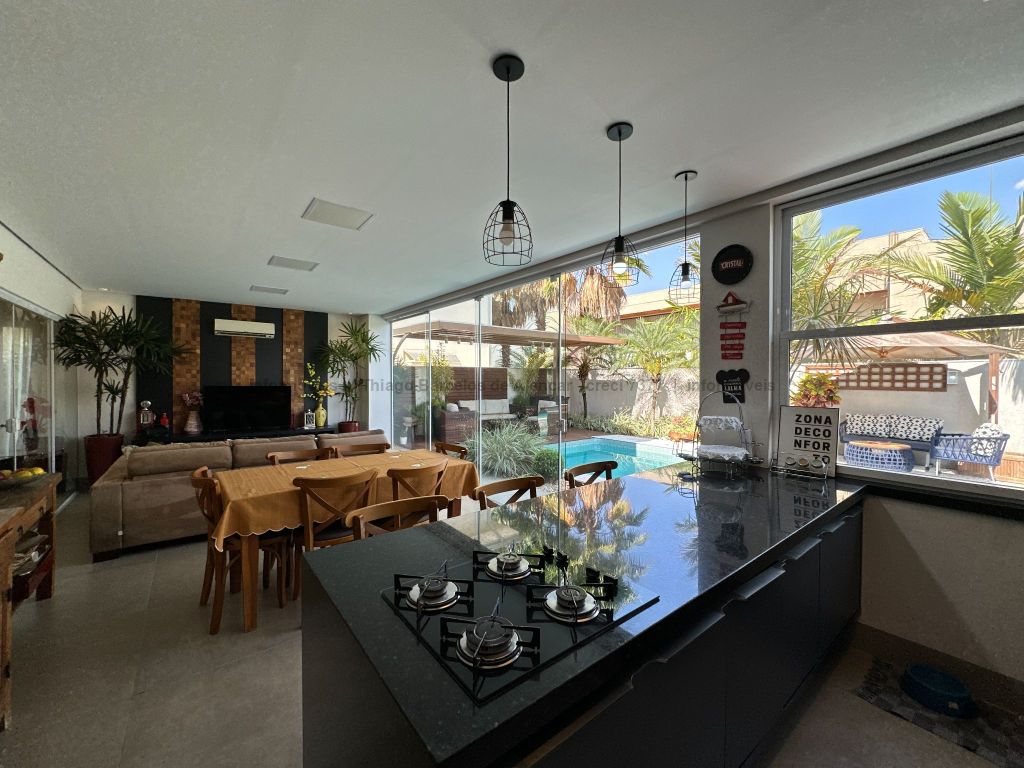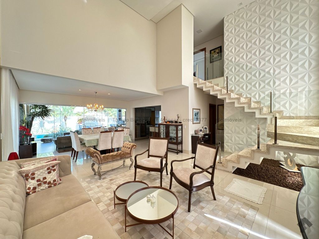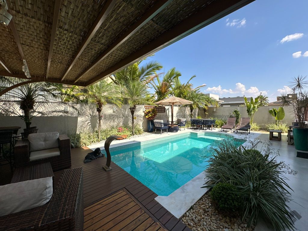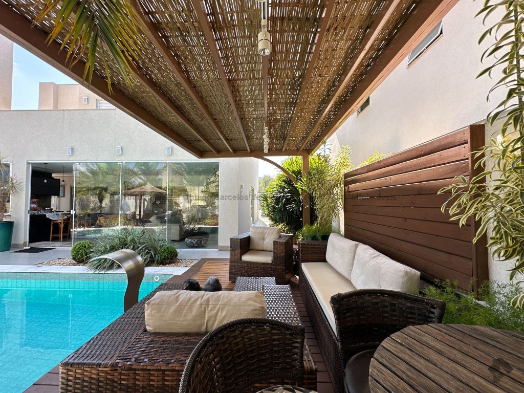 Sobrado no Damha I rico em planejados, com 3 suítes no piso superior, com sacada e armários, sendo a máster com closet. No térreo, conta com 1 quarto que pode ser convertido em escritório, além de salas de estar, jantar e TV integradas. A cozinha planejada conecta-se ao espaço gourmet completo, que se integra à área externa com piscina aquecida, cascata e paisagismo de muito bom gosto. Possui lavabo, área de serviço funcional e garagem para até 4 veículos.