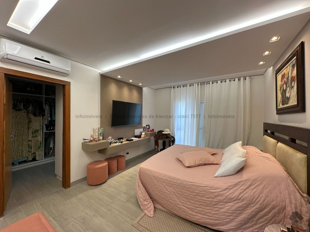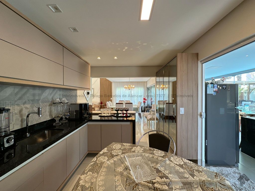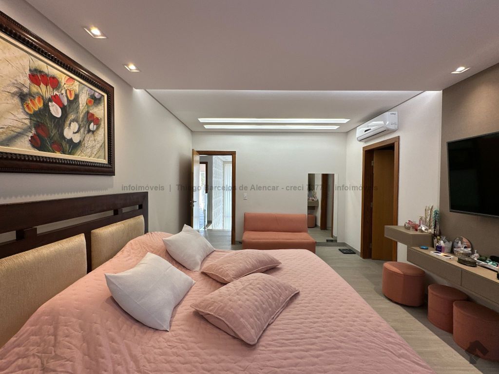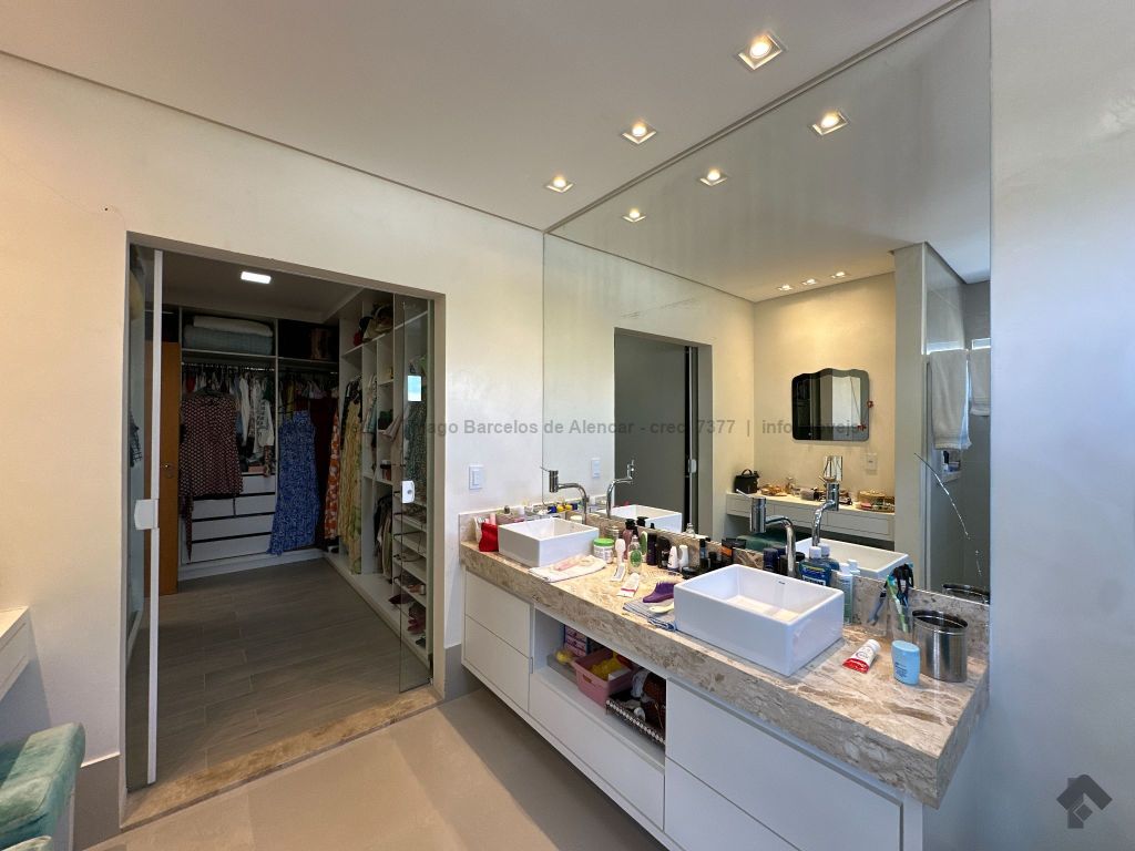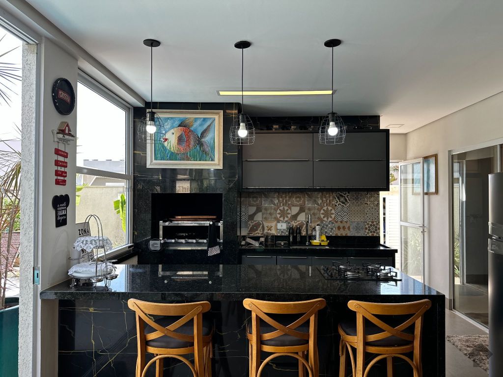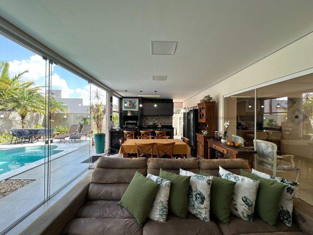 Sobrado no Damha I rico em planejados, com 3 suítes no piso superior, com sacada e armários, sendo a máster com closet. No térreo, conta com 1 quarto que pode ser convertido em escritório, além de salas de estar, jantar e TV integradas. A cozinha planejada conecta-se ao espaço gourmet completo, que se integra à área externa com piscina aquecida, cascata e paisagismo de muito bom gosto. Possui lavabo, área de serviço funcional e garagem para até 4 veículos.