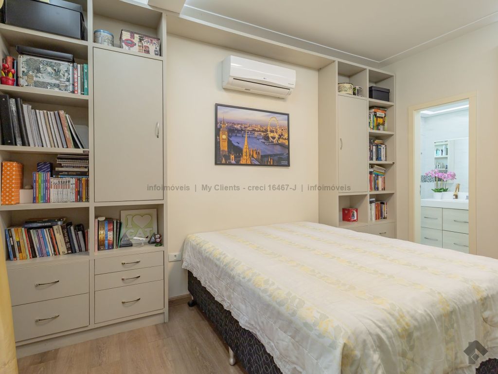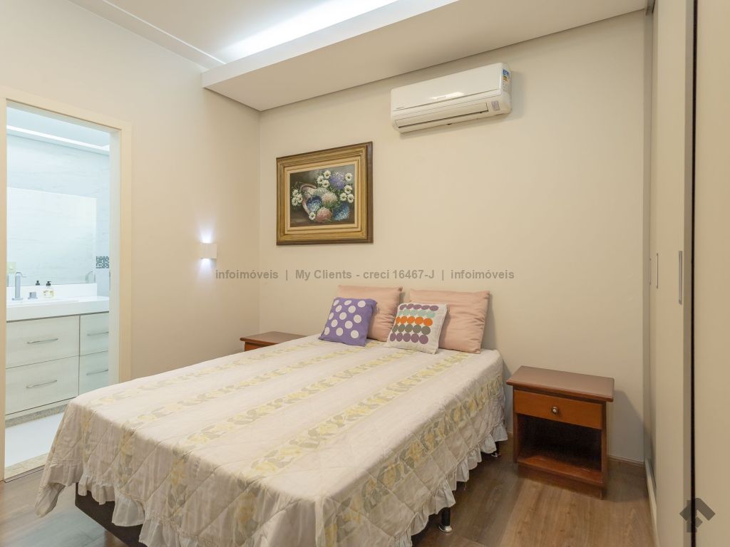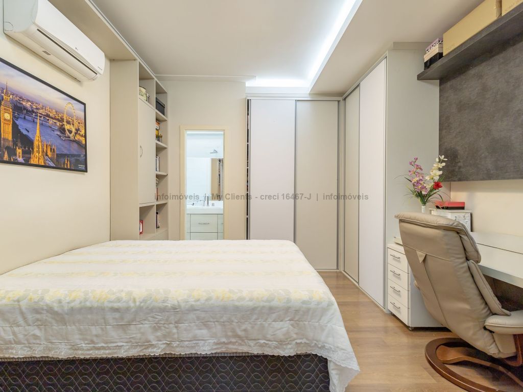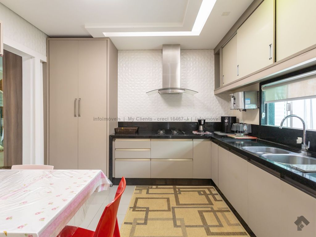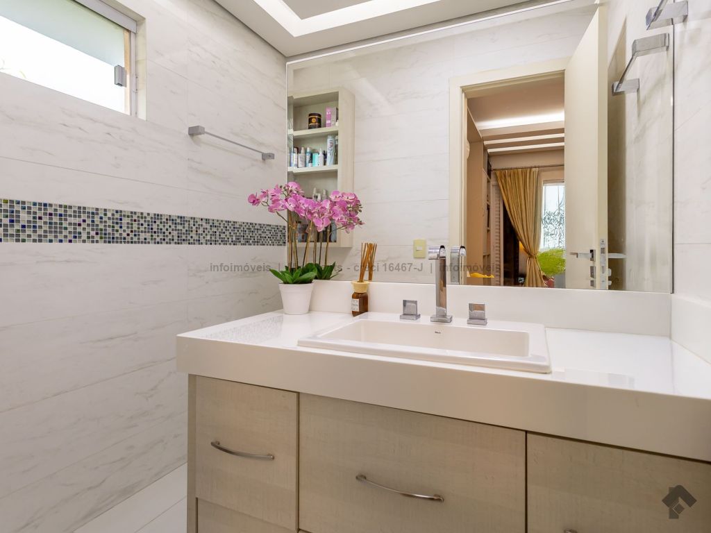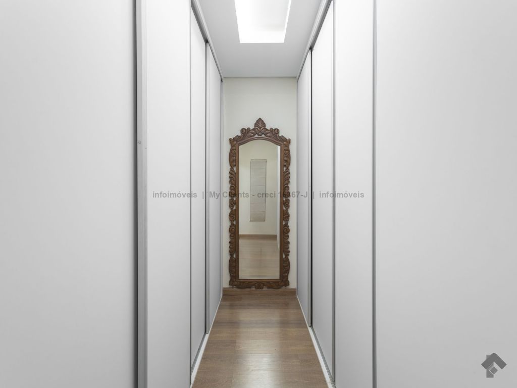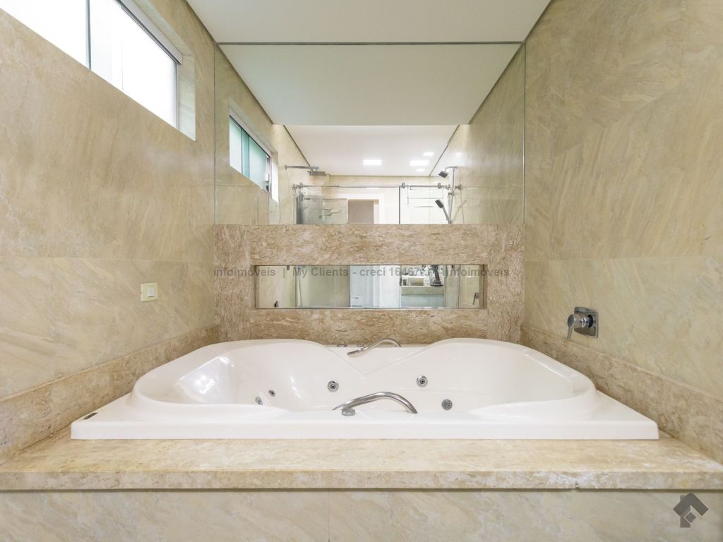 4 suítes com armários planejados, 2 salas de TV, sala de estar, sala de jantar, cozinha planejada, despensa, lavabo, escritório, área de serviço e lavanderia, 3 sacadas, 1 banheiro social, churrasqueira, área de lazer, piscina com aquecimento, jardim, 4 vagas de garagem.