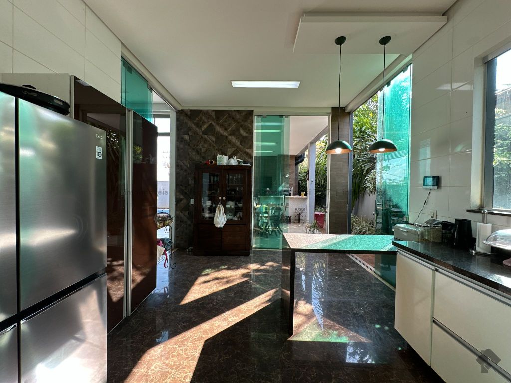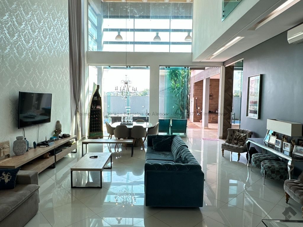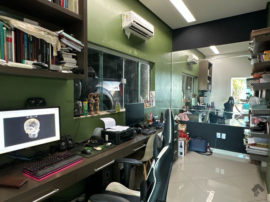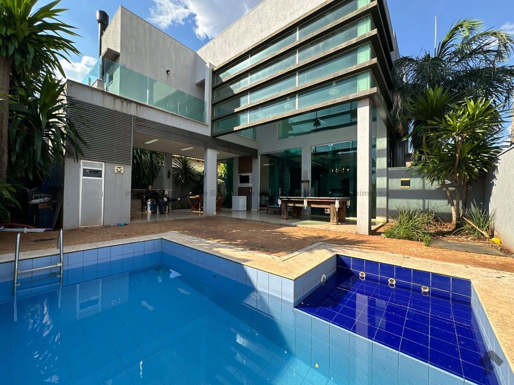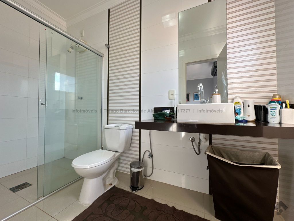 Sobrado de esquina com acabamento de alto padrão e energia fotovoltaica. No térreo, hall de entrada, sala com pé-direito duplo, lavabo, escritório, cozinha planejada, lavanderia com WC de serviço e área gourmet completa com churrasqueira, forno e fogão a lenha, sauna e WC social. A área de lazer conta com piscina aquecida e iluminação em LED. No piso superior, são 4 quartos, sendo 1 suíte master com closet e banheira, 1 suíte e 2 quartos adicionais. Garagem para 4 veículos, sendo 2 cobertos. Imóvel imponente, funcional e ideal para quem busca conforto e sofisticação.
