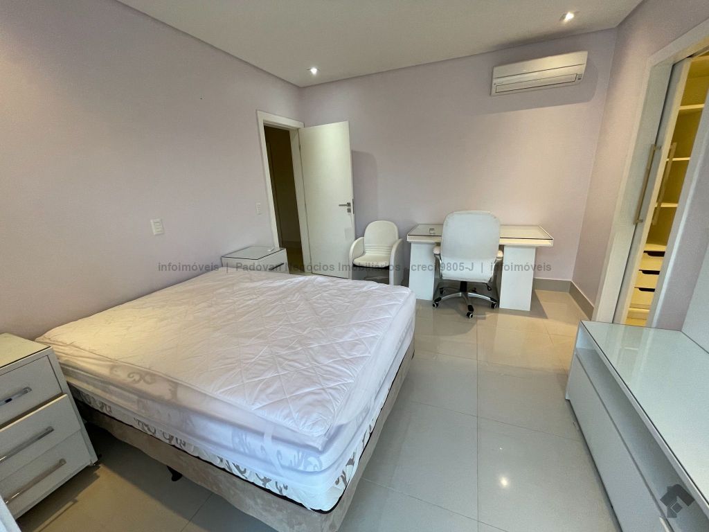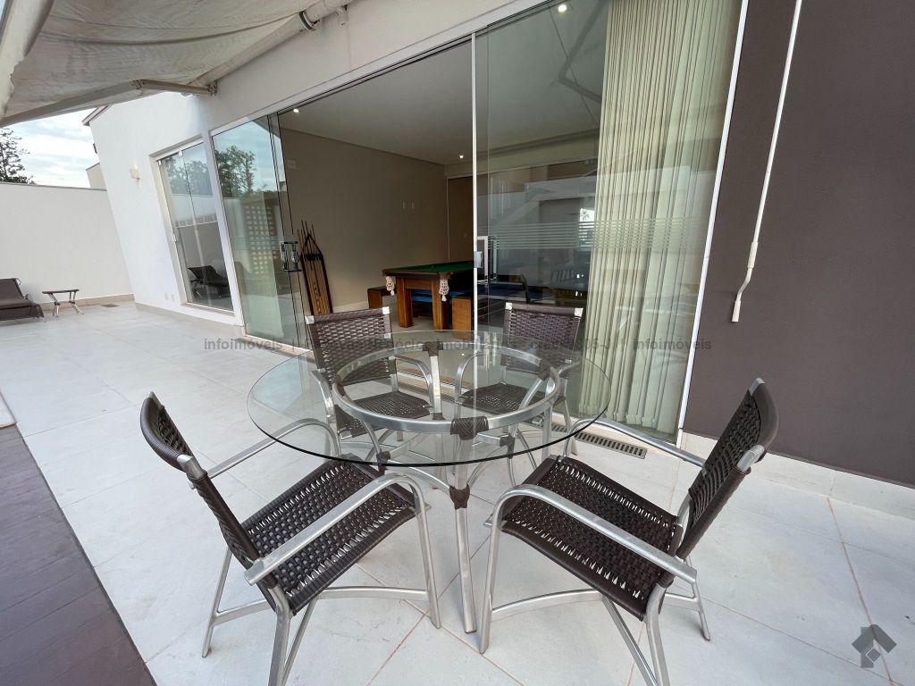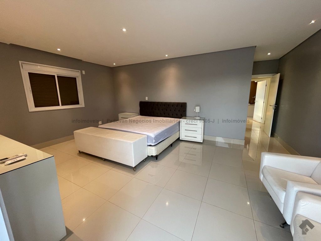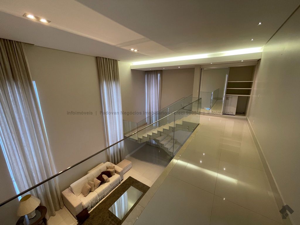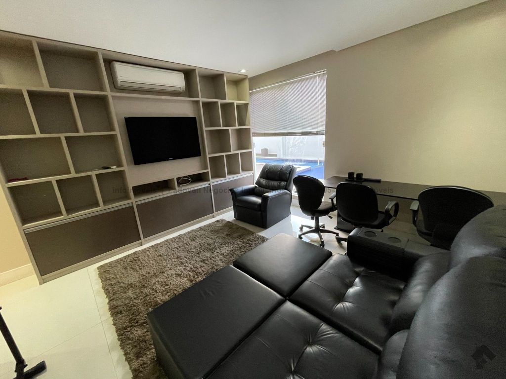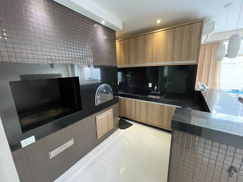 Sobrado bem localizado, próximo à guarita e sol da manhã, 7 vagas de garagem, sendo3 cobertas, sistema de segurança com 5 câmeras infravermelho de visão noturna com wi-fi pelo celular, aquecimento de água solar, a gás e elétrico, 3 suítes climatizadas, com persianas automatizadas e closet no andar superior, sendo uma master, todas com sacadas, sala ampla de estar e jantar com escadaria em mármore, lavabo, 1 suíte térrea com home office climatizado, área de serviço com wc e quarto de serviço climatizado com a/e, área gourmet climatizada com lavabo, mesa integrada de sinuca, ping pong e jantar, churrasqueira em granito preto, forno de pizza e bancada. Piscina aquecida com raia.
