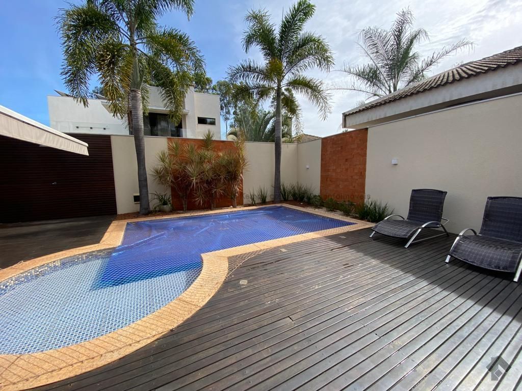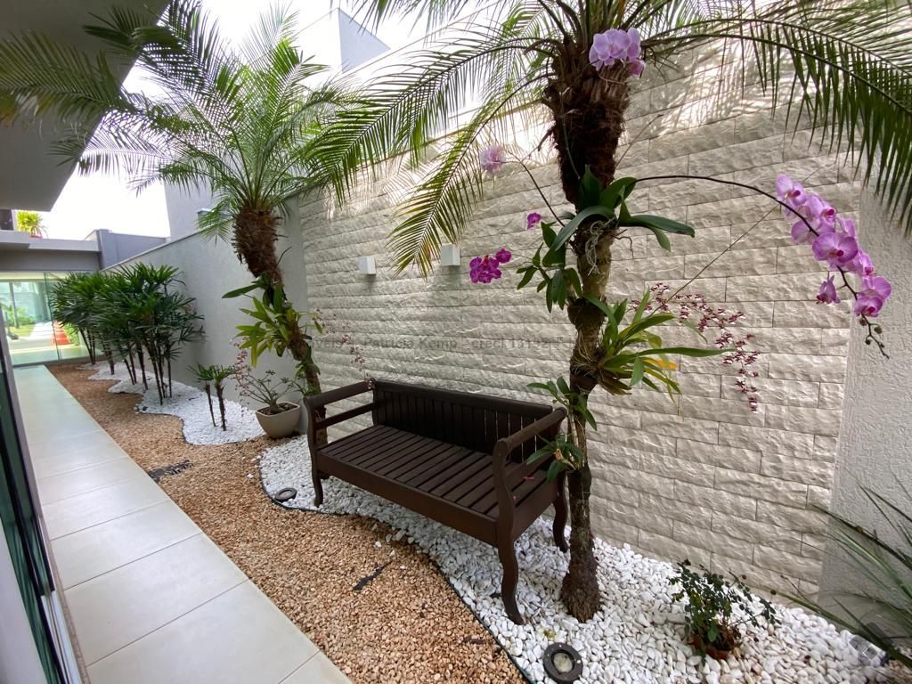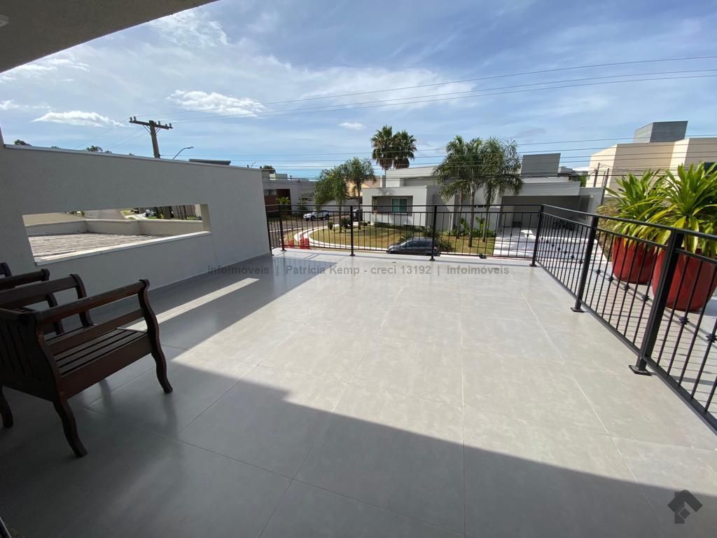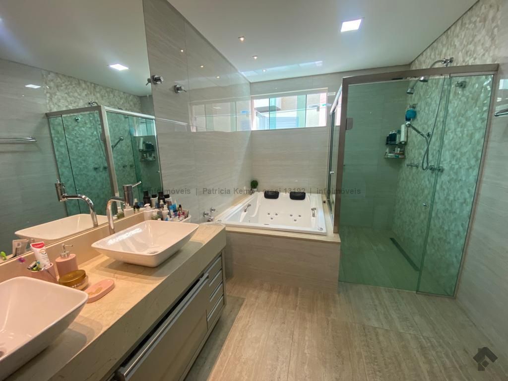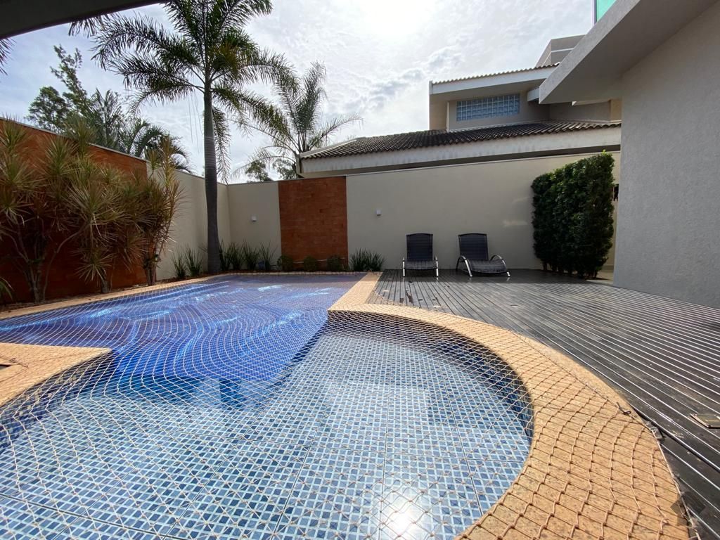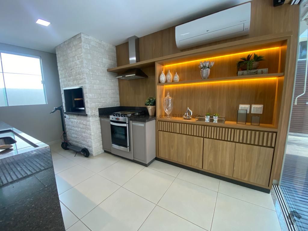 Sala com pé direito duplo para dois ambientes, três suítes com planejados, lavabo, espaço gourmet integrado, cozinha com planejados e lavanderia. Piso superior: sala de TV com ampla sacada, duas suítes com planejados, escritório com sacada, área externa, piscina aquecida, energia fotovoltaica.