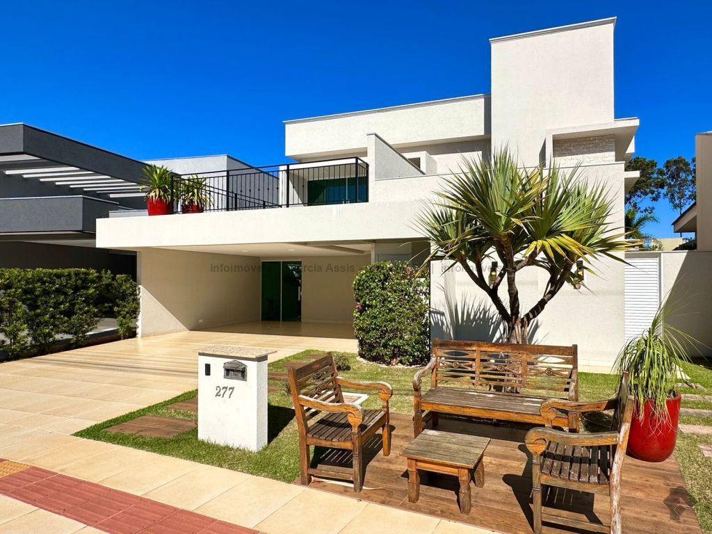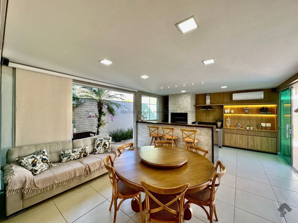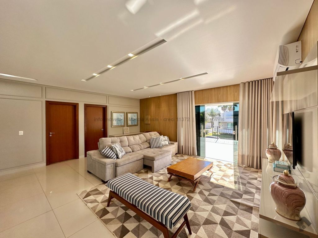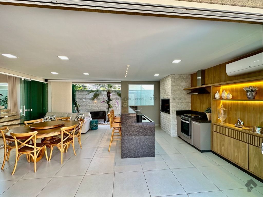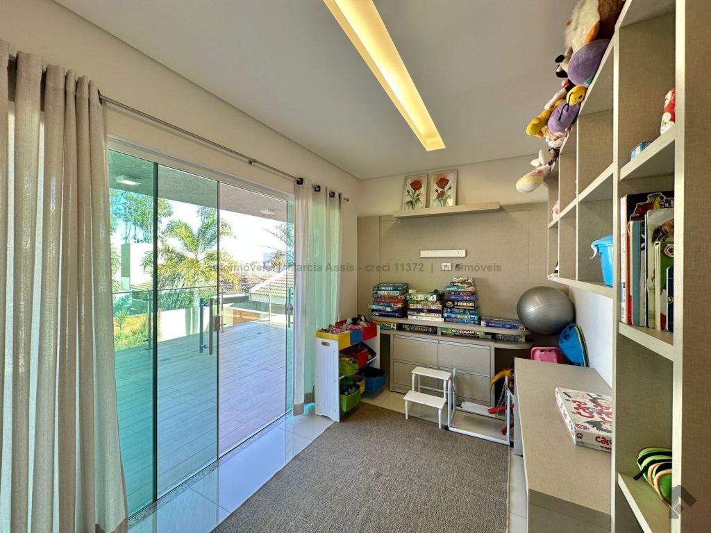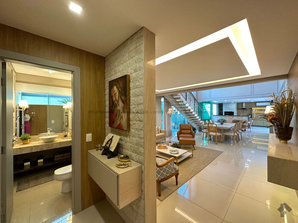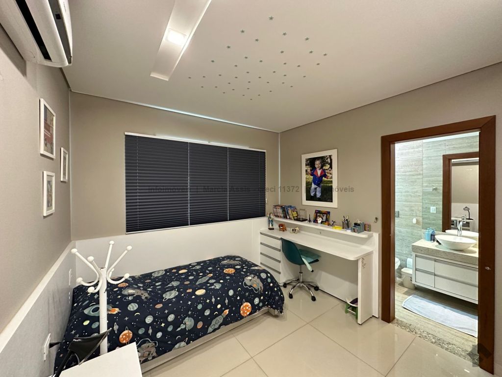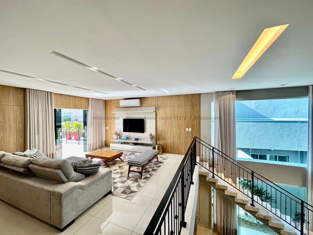 Espetacular sobrado com 5 suítes. Piso térreo: hall de entrada, lavabo, salas integradas dois ambientes com pé direito duplo. Um amplo espaço gourmet recém reformado, 3 suítes com armários planejados sendo a suíte máster com closet, banheiro com banheira, cozinha impecável, uma ampla lavanderia ao lado, banheiro externo e despensa, piscina aquecida com prainha, hidromassagem e com um incrível deck, jardinagem completa. Piso superior: sala de TV, com uma super sacada com vista para o condomínio, duas suítes e escritório ou brinquedoteca com sacada, vista para área de lazer, piscina. Imóvel com instalação de energia fotovoltaica 1.500 kWh ao mês.