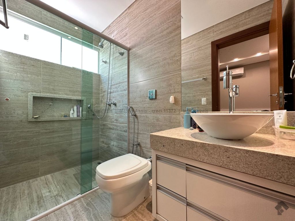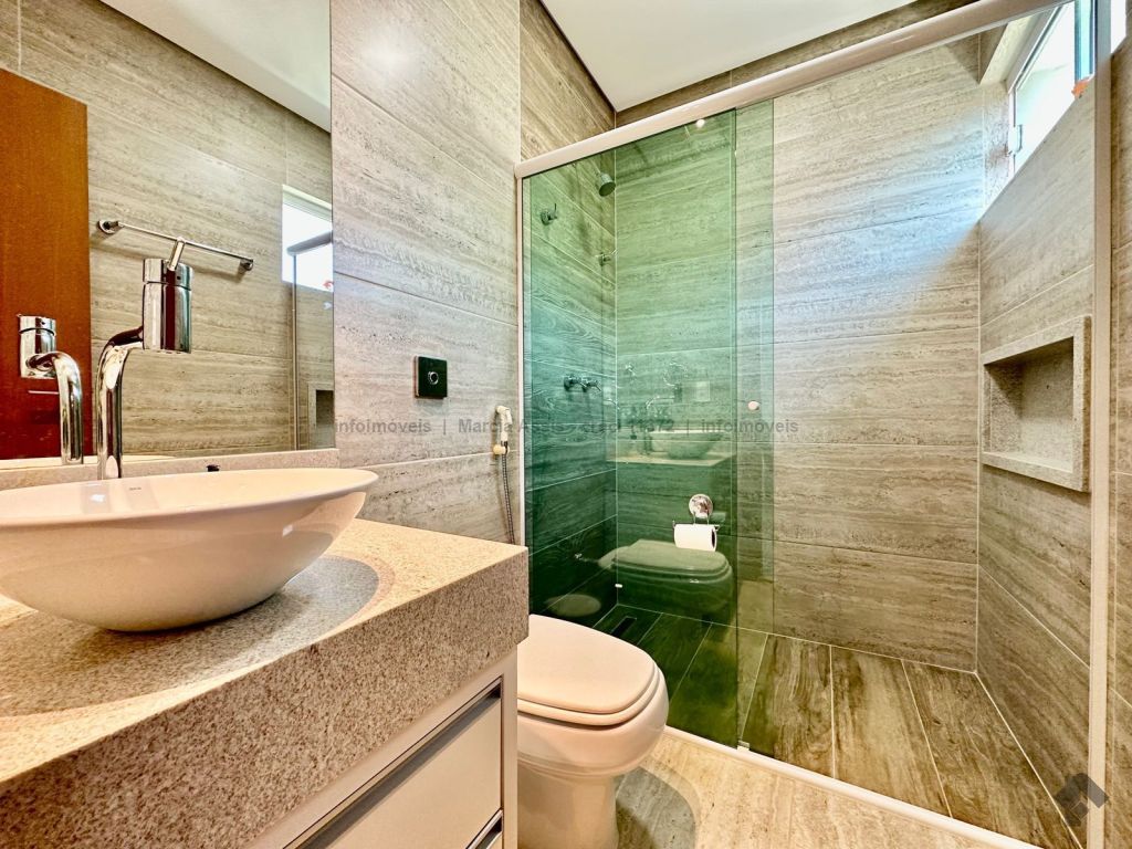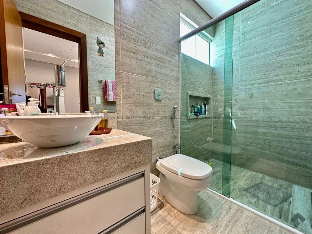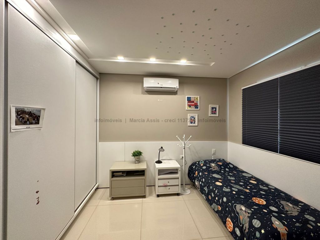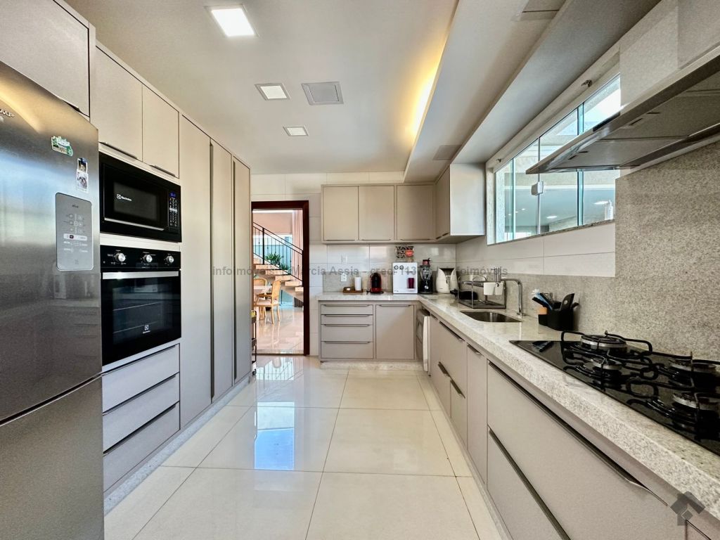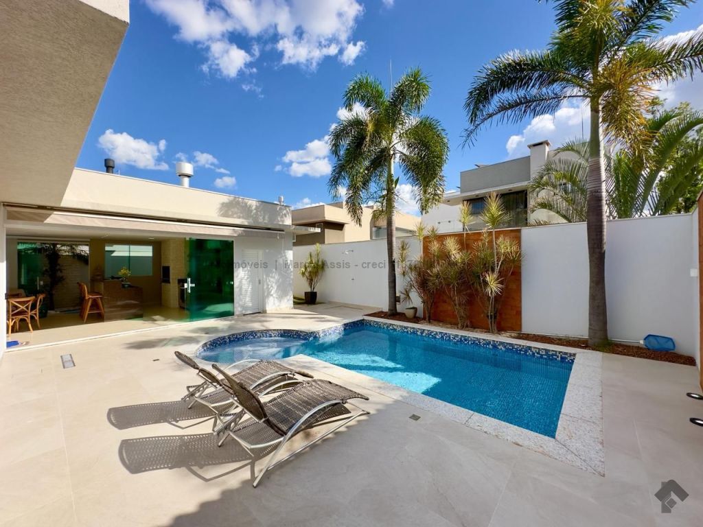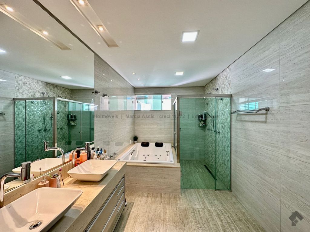 Espetacular sobrado com 5 suítes. Piso térreo: hall de entrada, lavabo, salas integradas dois ambientes com pé direito duplo. Um amplo espaço gourmet recém reformado, 3 suítes com armários planejados sendo a suíte máster com closet, banheiro com banheira, cozinha impecável, uma ampla lavanderia ao lado, banheiro externo e despensa, piscina aquecida com prainha, hidromassagem e com um incrível deck, jardinagem completa. Piso superior: sala de TV, com uma super sacada com vista para o condomínio, duas suítes e escritório ou brinquedoteca com sacada, vista para área de lazer, piscina. Imóvel com instalação de energia fotovoltaica 1.500 kWh ao mês.