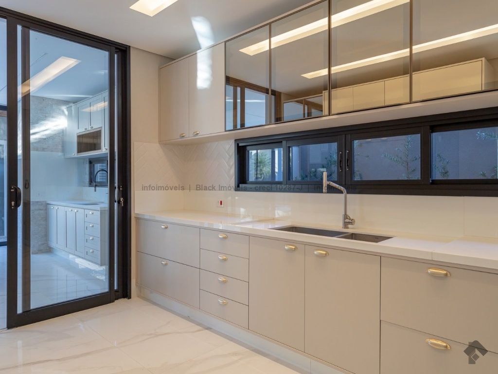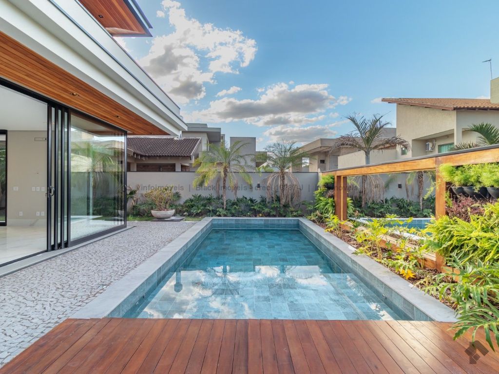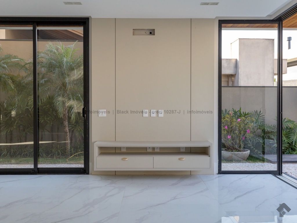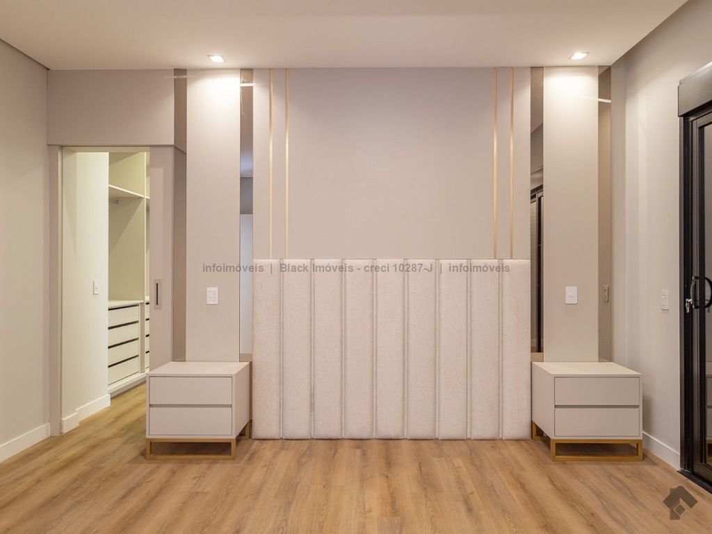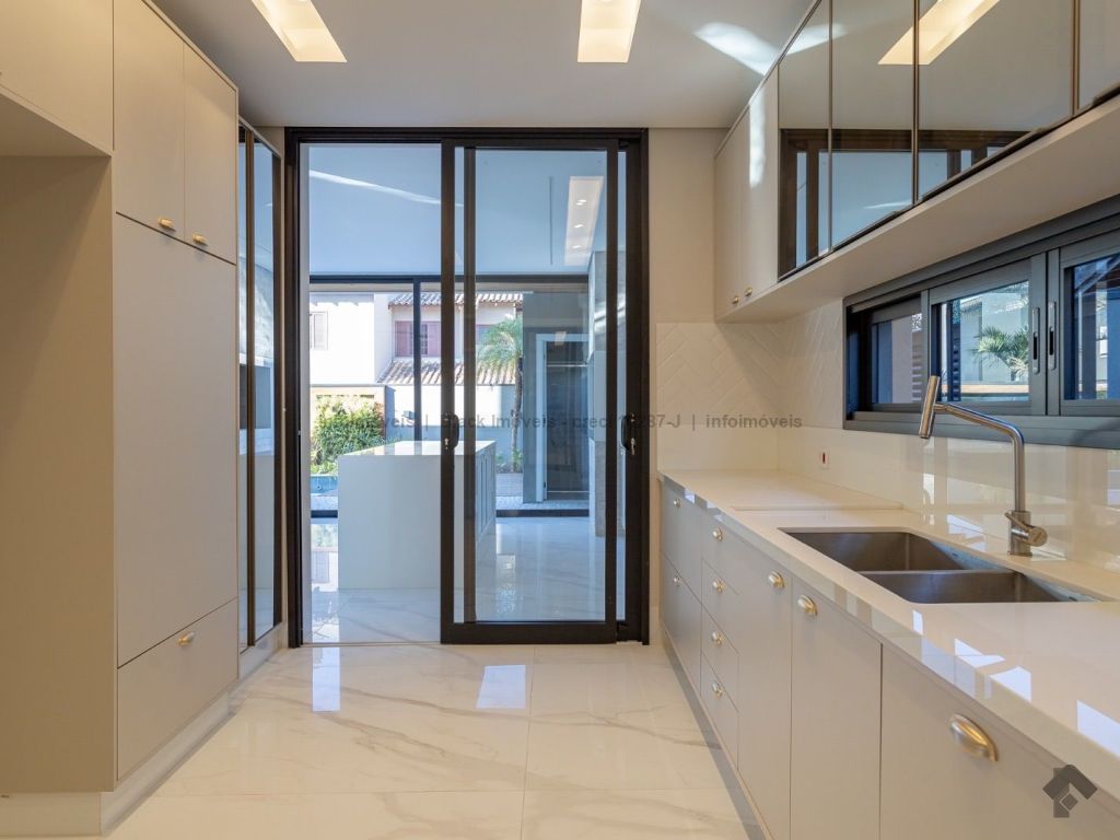 Sobrado com 5 suítes sendo 1 com closet, sacada e banheira dupla. Sala de cinema, living, lavabo, sala de jantar, gourmet, cozinha, lavanderia, 2 depósitos, wc da piscina, deck da piscina em madeira, piscina com prainha e hidromassagem. Garagem para 6 carros sendo 3 cobertas. Persianas automáticas com blackout.
