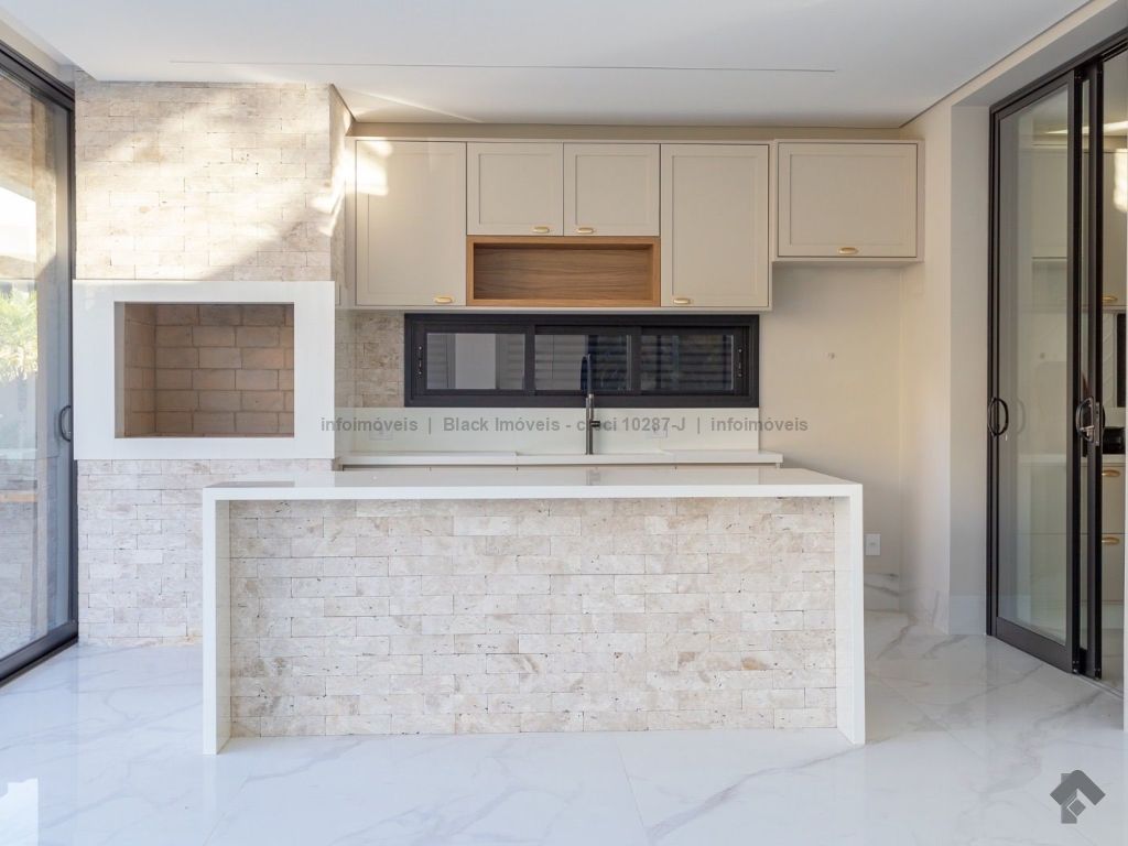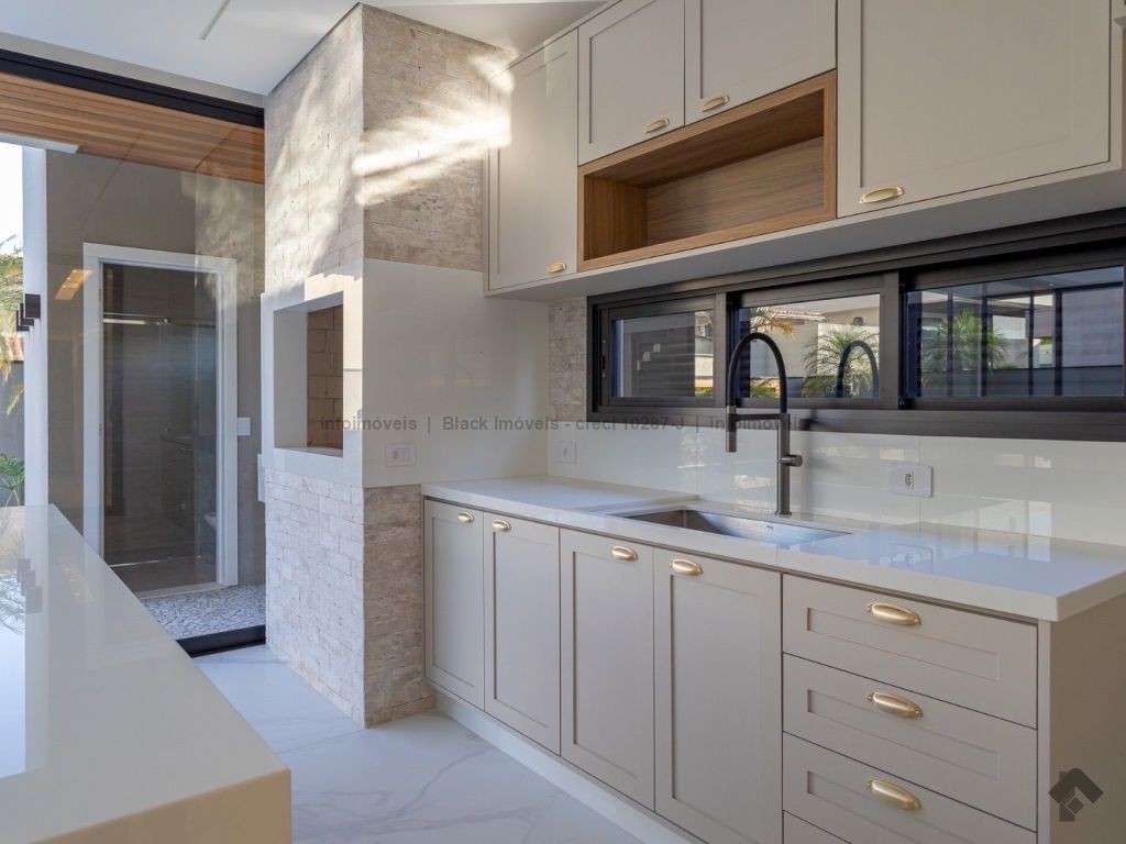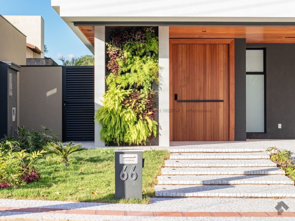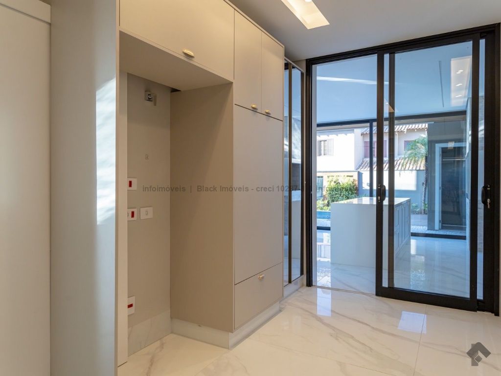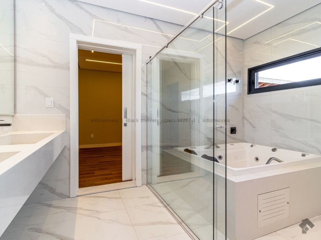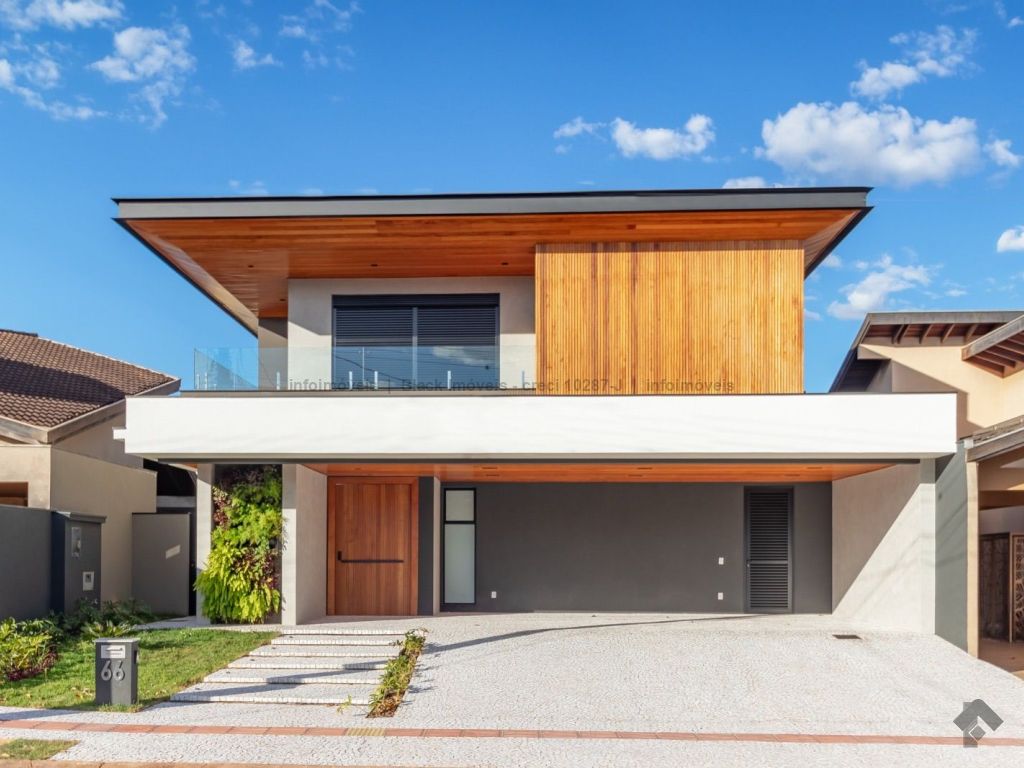 Sobrado com 5 suítes sendo 1 com closet, sacada e banheira dupla. Sala de cinema, living, lavabo, sala de jantar, gourmet, cozinha, lavanderia, 2 depósitos, wc da piscina, deck da piscina em madeira, piscina com prainha e hidromassagem. Garagem para 6 carros sendo 3 cobertas. Persianas automáticas com blackout.
