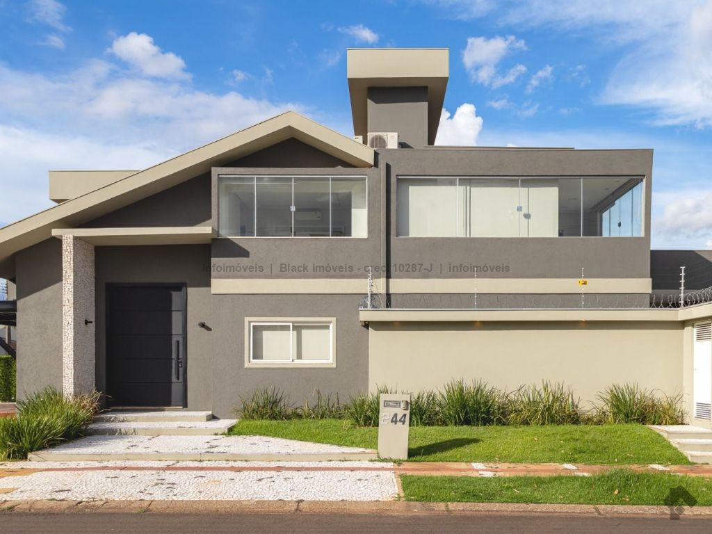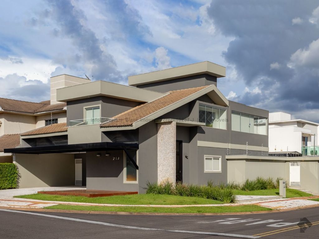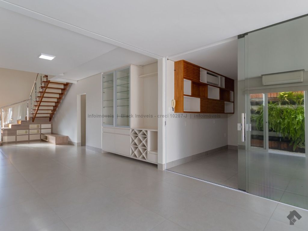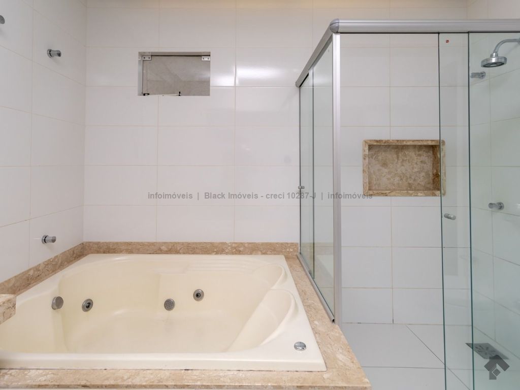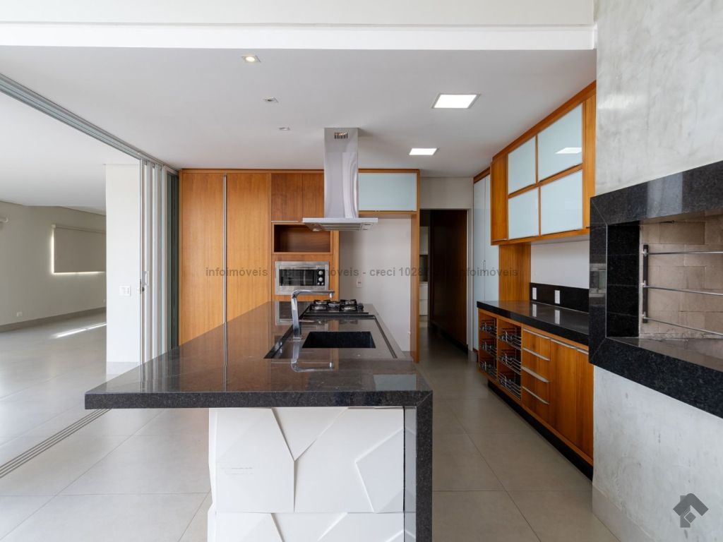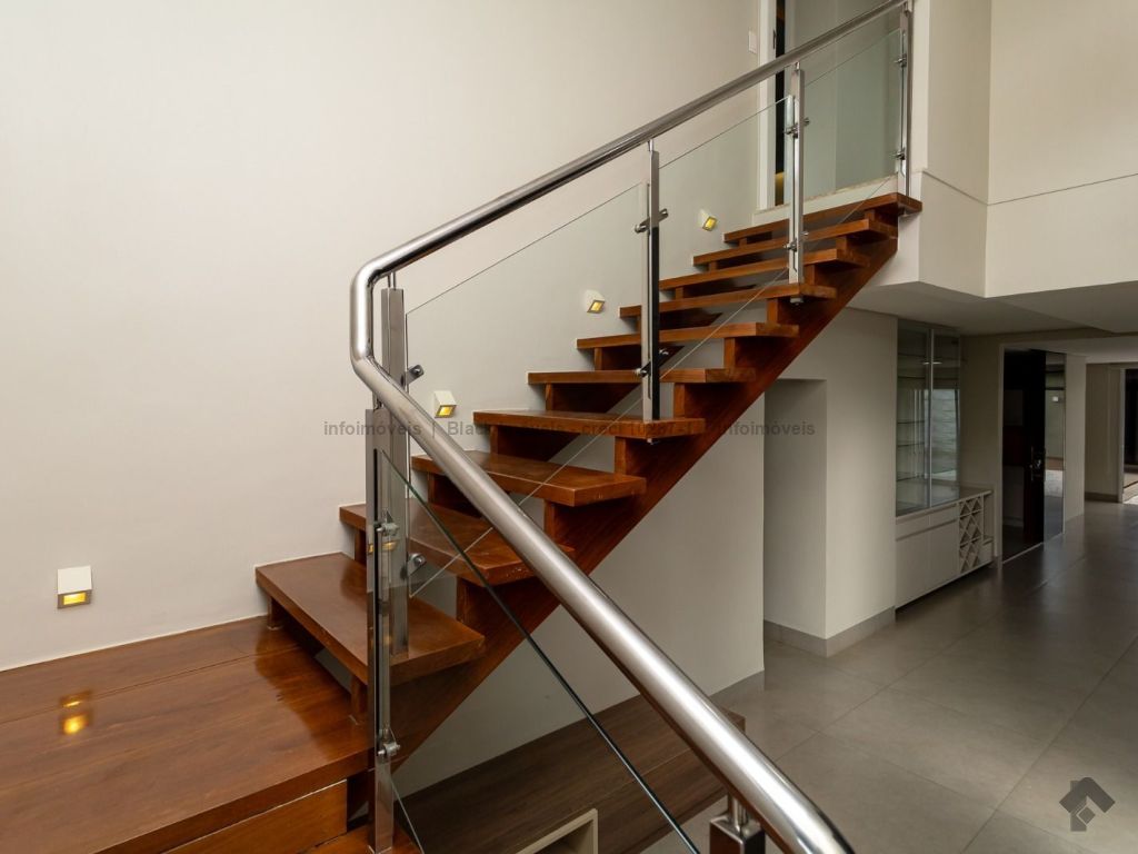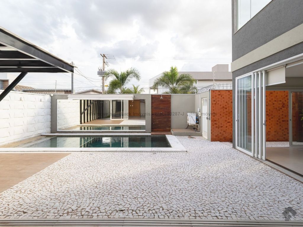 Sala ampla para três ambientes com planejados, lavabo, um escritório sem armário, contendo banheiro e ar condicionado, sala de TV com ar e ventilador, cozinha com planejados, com forno e cooktop, exaustor, ar condicionado cassete, espaço gourmet amplo com churrasqueira e planejado, lavanderia com planejados, piscina aquecida com boiler. Piso superior, sala de TV com ar e planejados, suítes master com closet, com hidro, sala íntima com ar e sacada, suíte com planejados com ar e sacada, suíte com planejados e ar condicionado, garagem para quatro veículos.