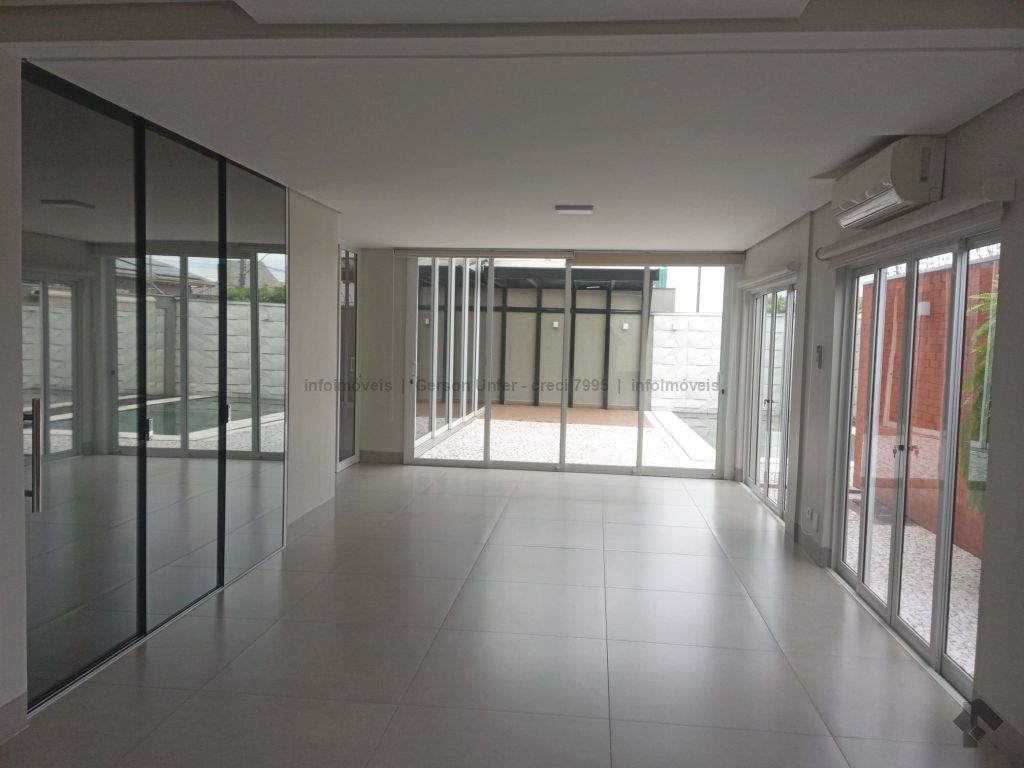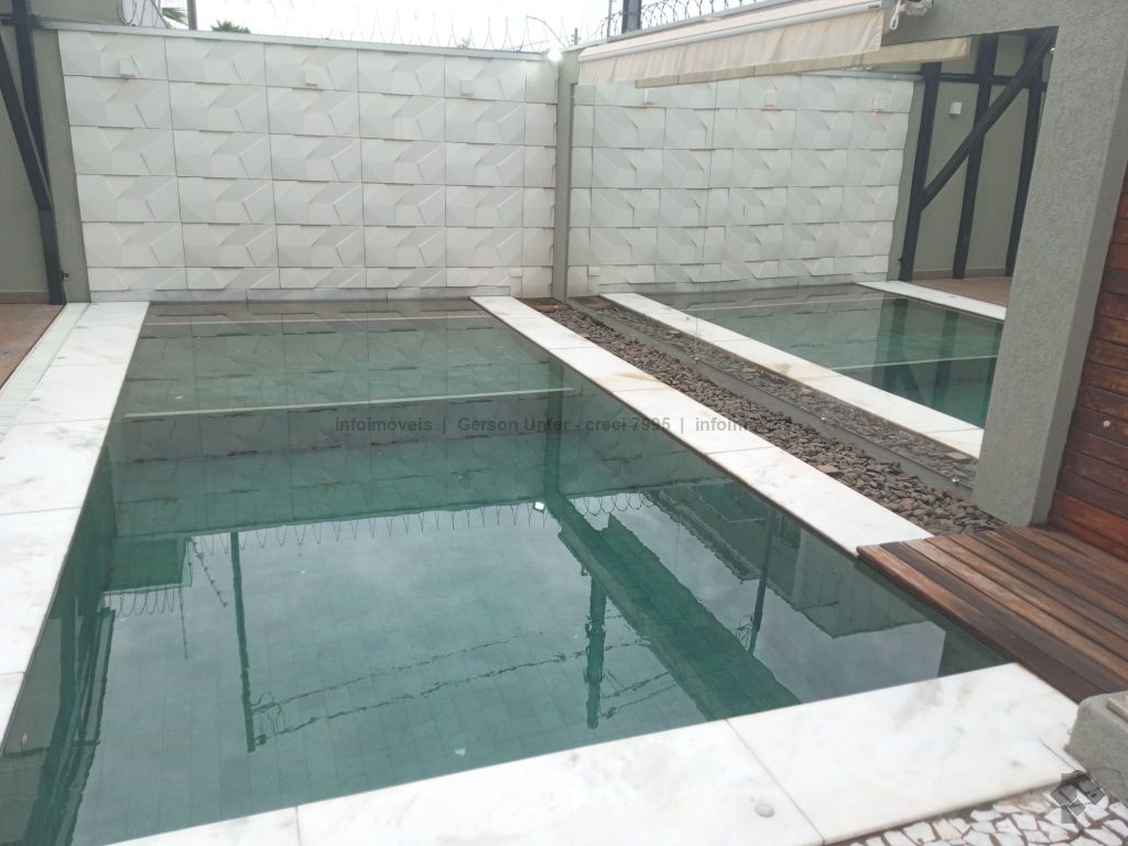 Sobrado de esquina com quatro suítes espaçosas, sendo 2 suítes com sacada íntima e escritório, jardim de inverno, sala integrada com dois ambientes, cozinha moderna, área gourmet, todos os ambientes integrados e climatizados, para momentos especiais, além de ótima lavanderia com um apartamento e área de serviço. Desfrute de uma piscina aquecida com prainha e hidromassagem, além de garagem para quatro carros.