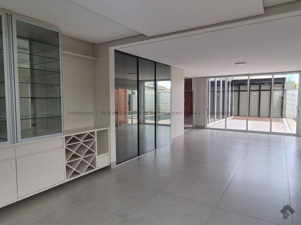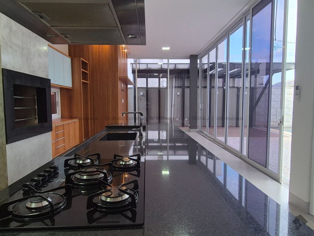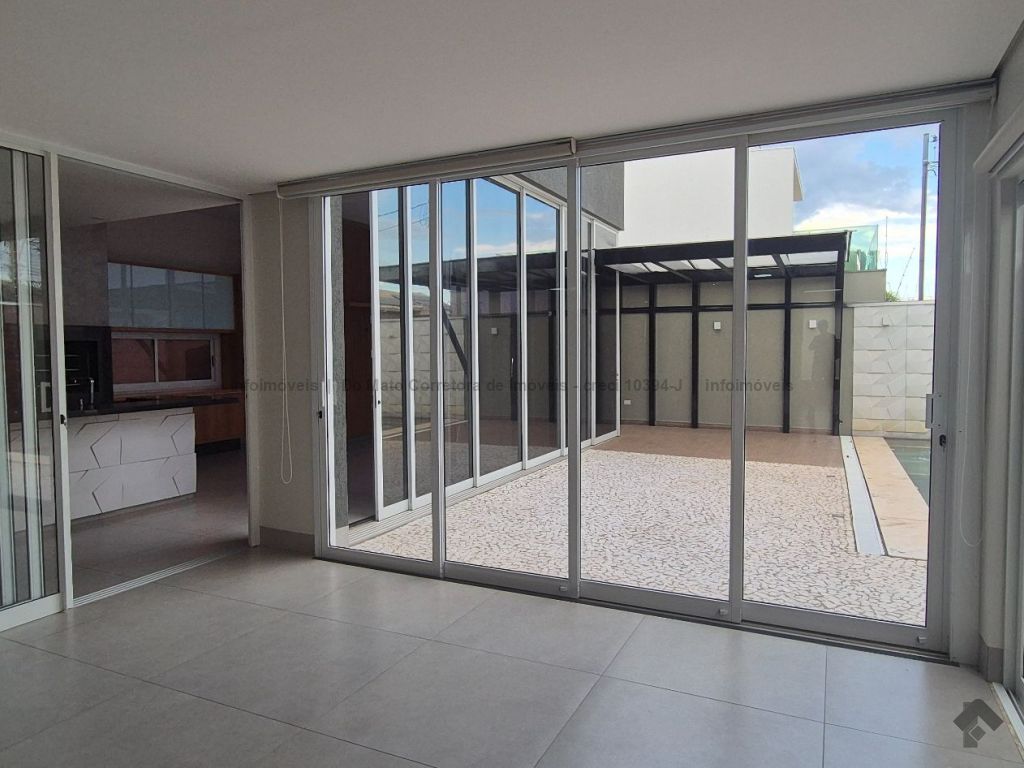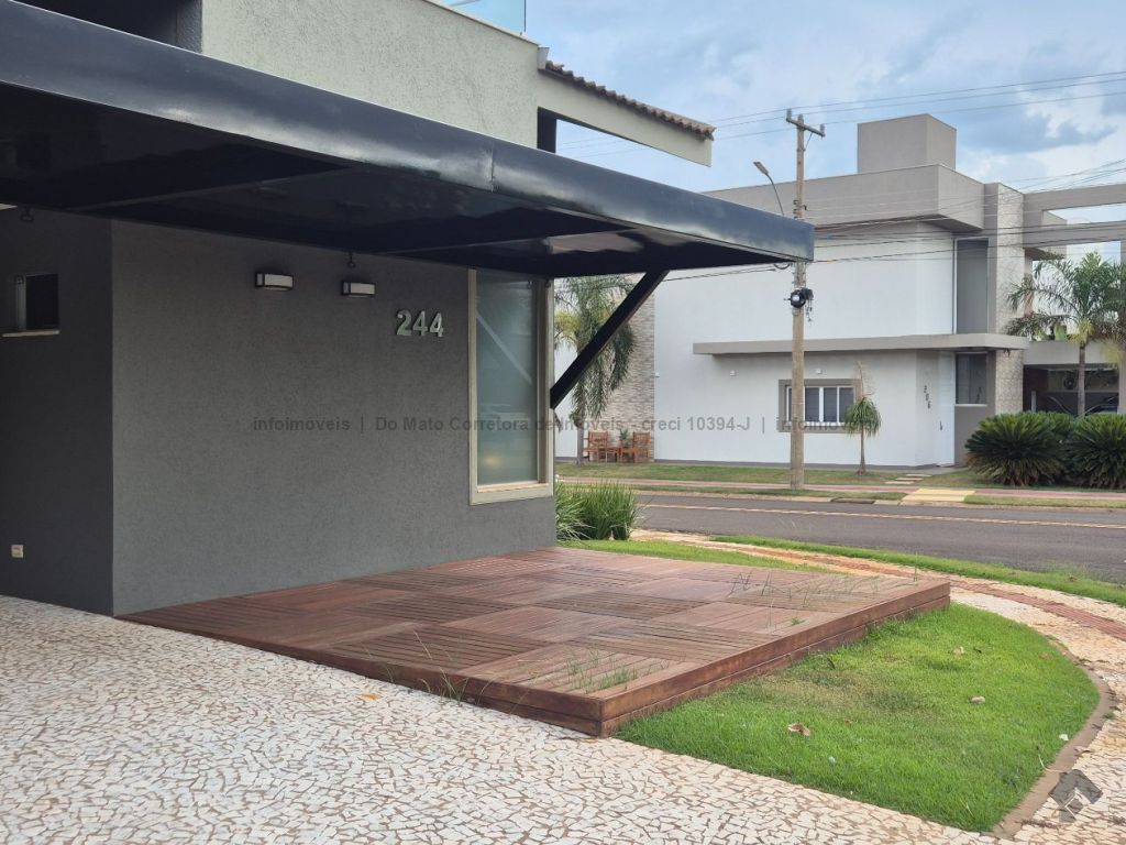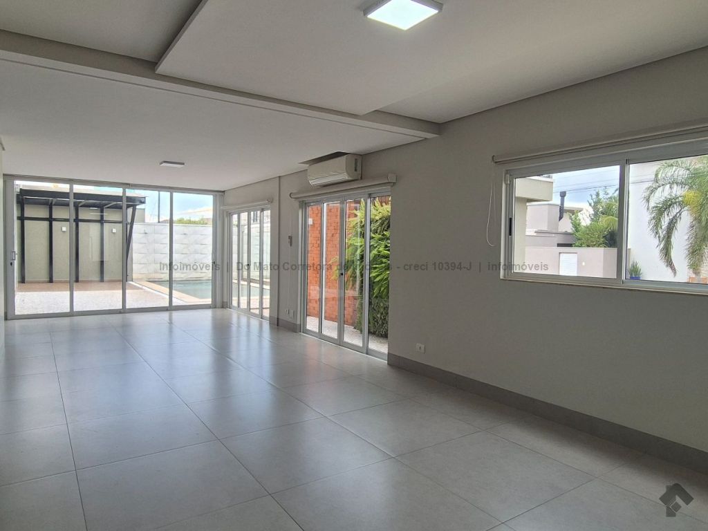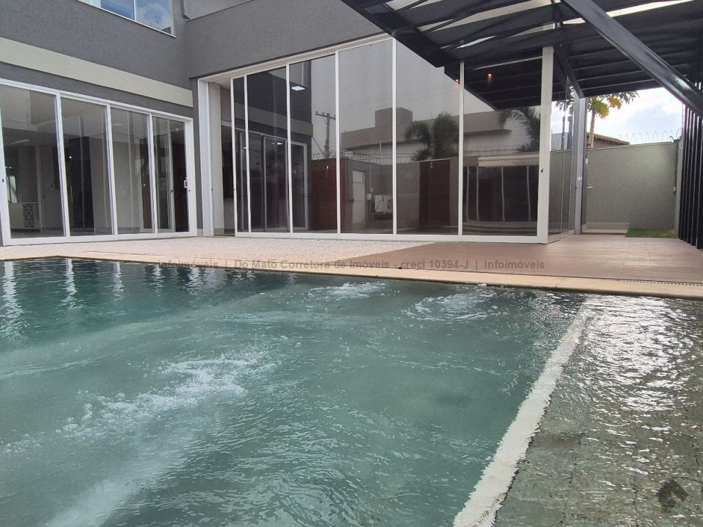 Localizada no prestigiado condomínio Dahma II, esta espetacular casa de esquina combina design sofisticado, ambientes amplos e detalhes luxuosos. Primeiro piso (térreo): garagem para 4 carros, sendo 2 vagas cobertas e 2 descobertas. Hall de entrada imponente, com pé-direito duplo e escada em madeira. Sala de estar para 2 ambientes, com vista privilegiada para a piscina. Sala de cinema, perfeita para momentos de entretenimento. Cozinha gourmet completa, com churrasqueira ampla, marcenaria planejada e lavabo integrado. Piscina luxuosa, com grande espelho d'água, prainha e acesso independente. Segundo piso (primeiro andar): sala de estar e TV, para momentos de descanso. 1 suíte com sacada.