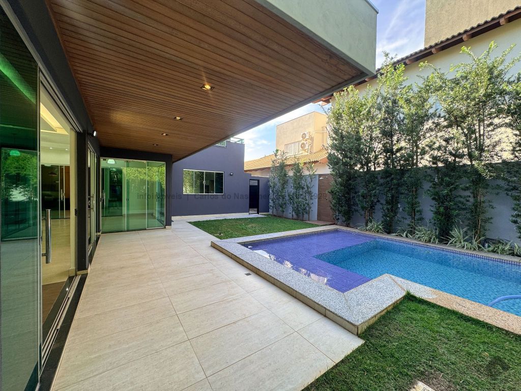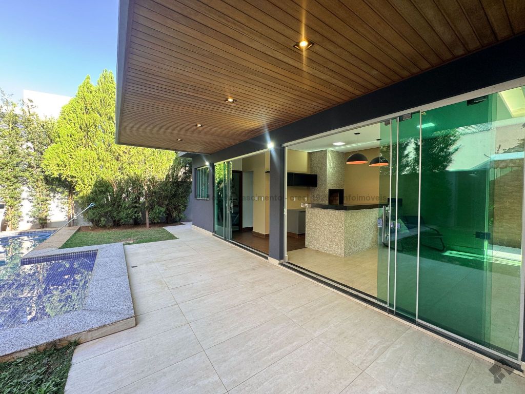 Lindo projeto arquitetônico, sofisticado e com fino acabamento com 4 suítes. Salas de visita e jantar espaçosas, ambientes bem iluminados e ventilados, com grandes aberturas e super aconchegantes. Rico em armários planejados, porcelanatos, vidros temperados, granitos e iluminação. Espaço gourmet espaçoso com balcão, pia e churrasqueira, além de área de lazer completa, com jardim, deck e piscina com prainha, aquecimento e cascata. Pintura interna em toque de seda e externa em granelli. Detalhes de pedra moledo na fachada. Projeto de energia fotovoltaica, estimativa 1.089 kW/mês.