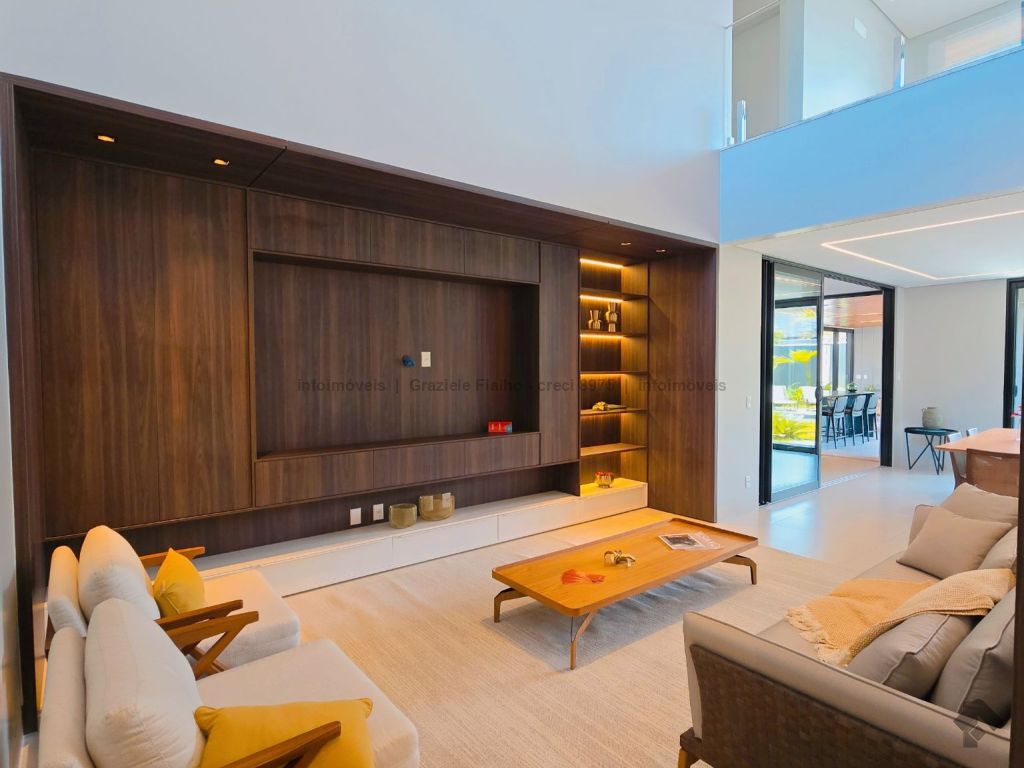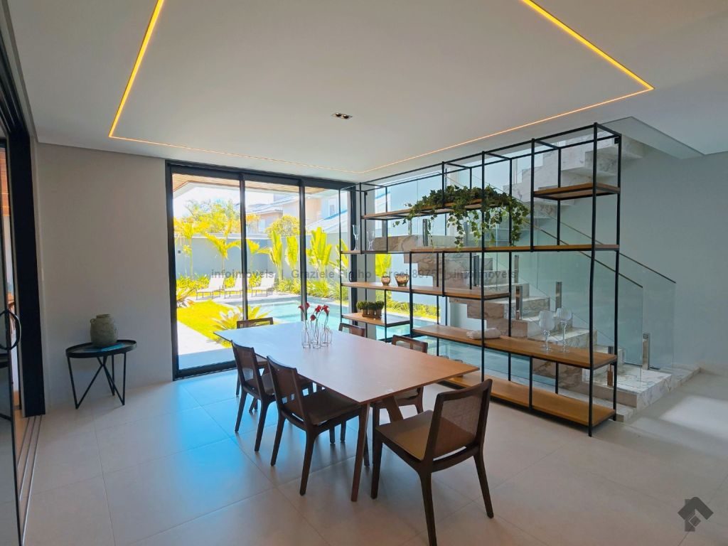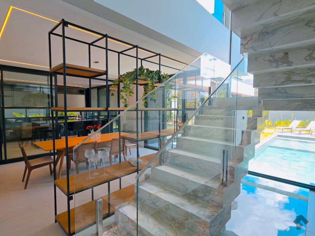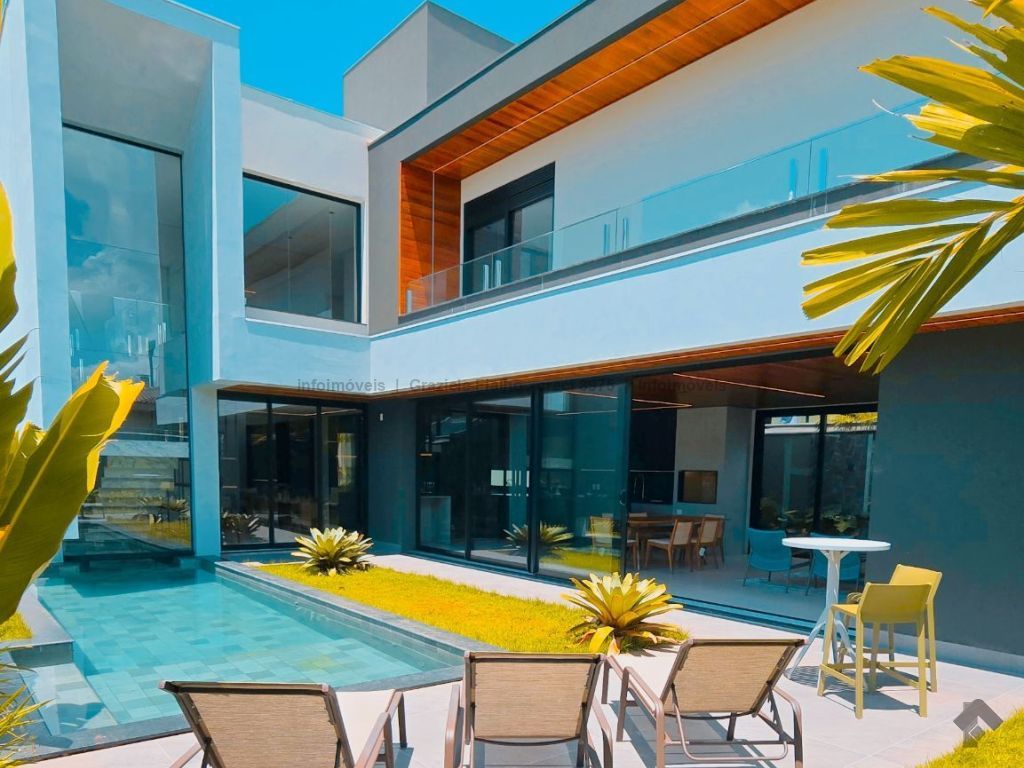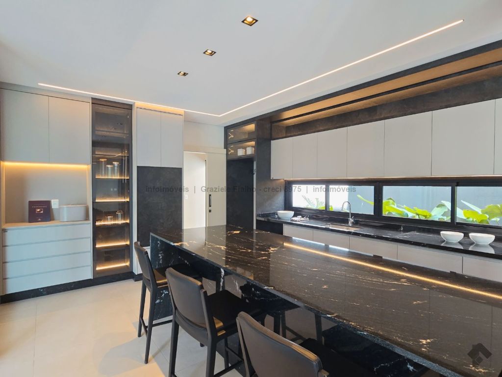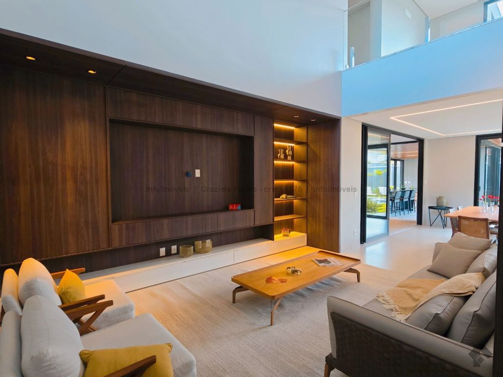 Descubra um sobrado moderno, pronto para morar, onde cada detalhe foi pensado para oferecer conforto e sofisticação. Com uma ampla sala de pé direito duplo e adega integrada, é o espaço ideal para momentos especiais. O piso superior conta com 4 suítes, incluindo uma suíte máster com sacada exclusiva, proporcionando retiros particulares. Este imóvel é equipado com preparação para elevador, ar-condicionado, energia fotovoltaica, persianas automatizadas e sistema de som integrado. Desfrute de um espaço gourmet climatizado, piscina aquecida com cascata e paisagismo completo. Eleve seu estilo de vida com requinte e tecnologia.