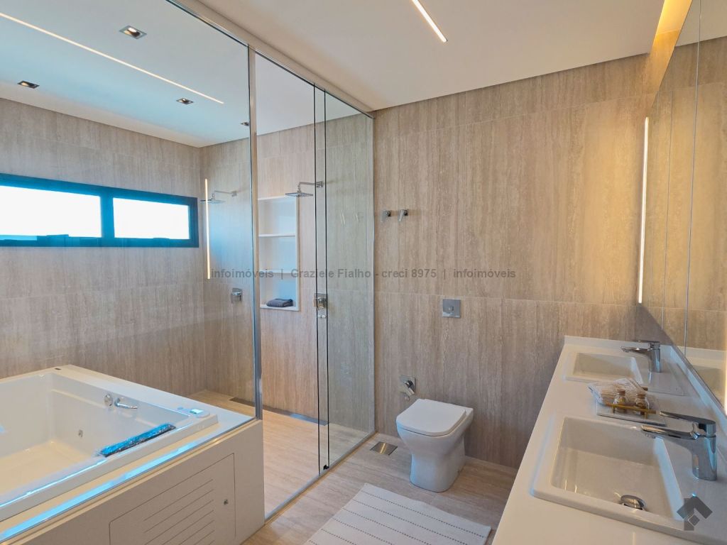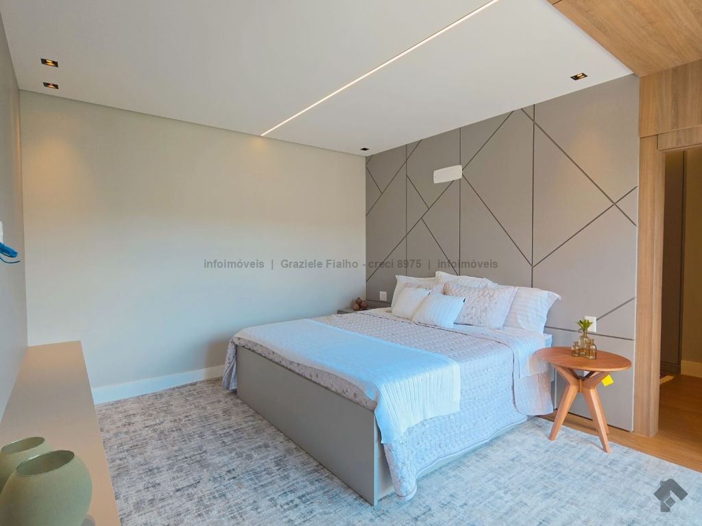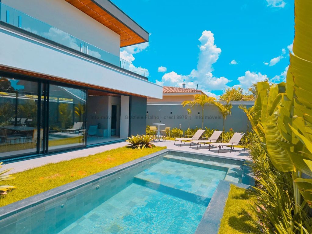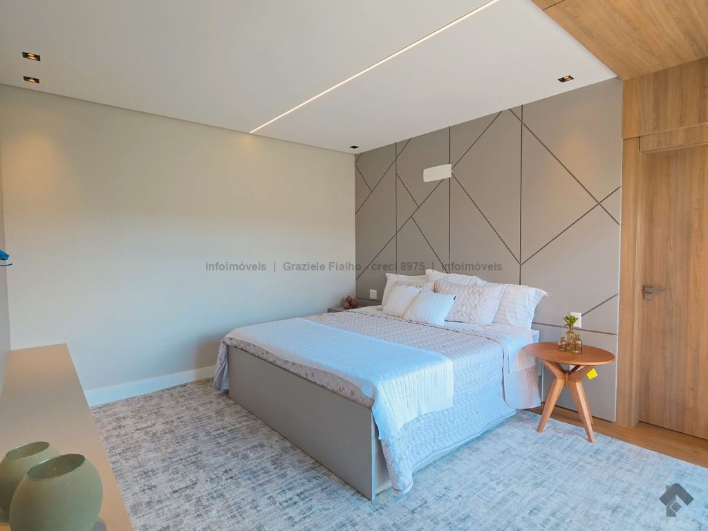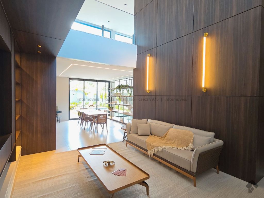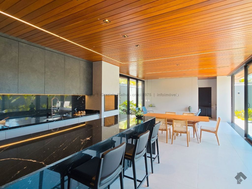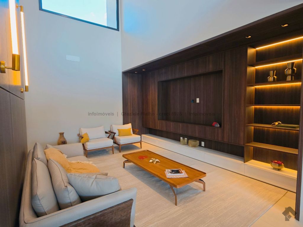 Descubra um sobrado moderno, pronto para morar, onde cada detalhe foi pensado para oferecer conforto e sofisticação. Com uma ampla sala de pé direito duplo e adega integrada, é o espaço ideal para momentos especiais. O piso superior conta com 4 suítes, incluindo uma suíte máster com sacada exclusiva, proporcionando retiros particulares. Este imóvel é equipado com preparação para elevador, ar-condicionado, energia fotovoltaica, persianas automatizadas e sistema de som integrado. Desfrute de um espaço gourmet climatizado, piscina aquecida com cascata e paisagismo completo. Eleve seu estilo de vida com requinte e tecnologia.