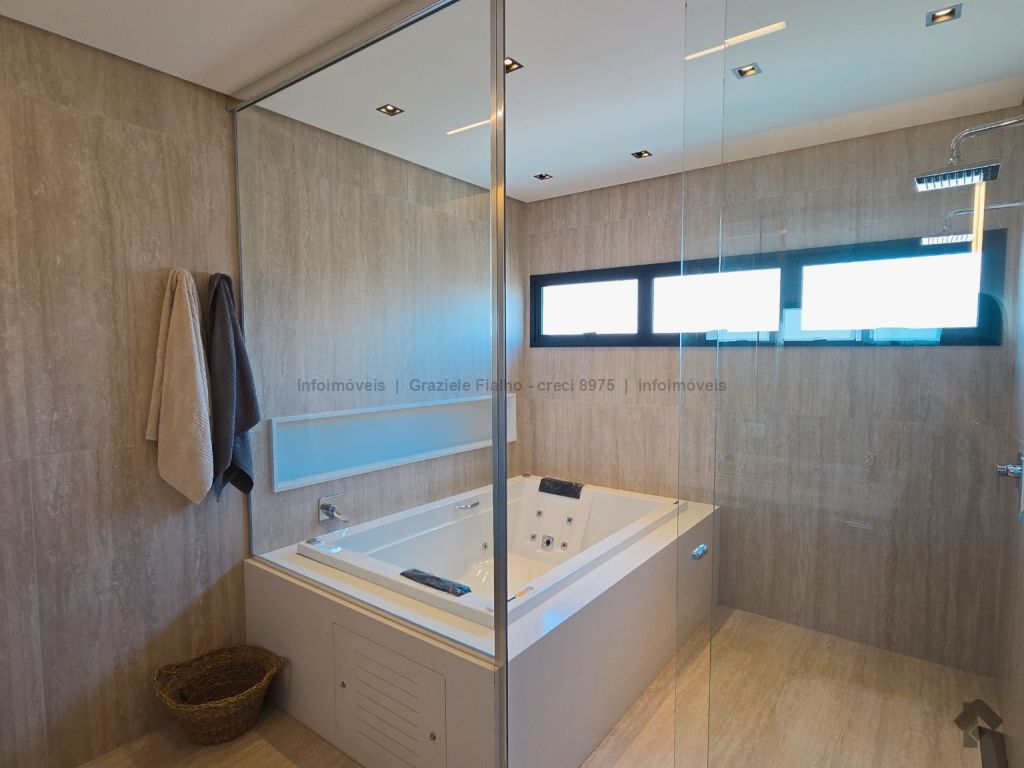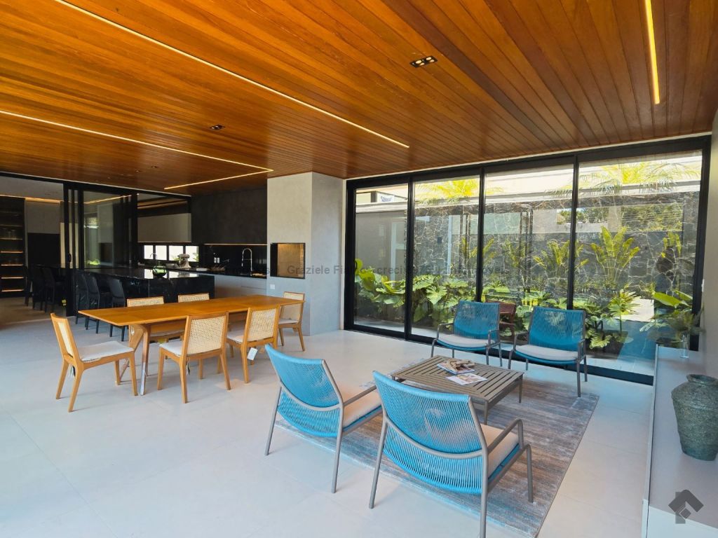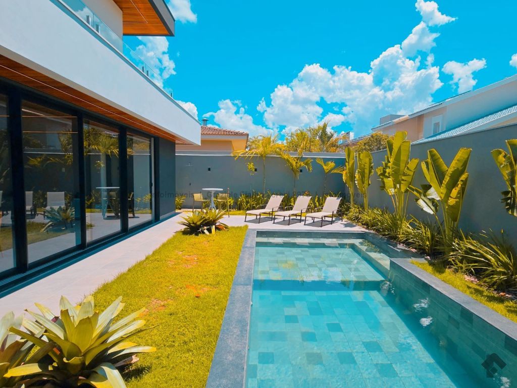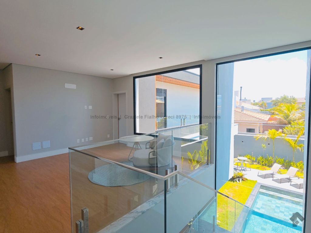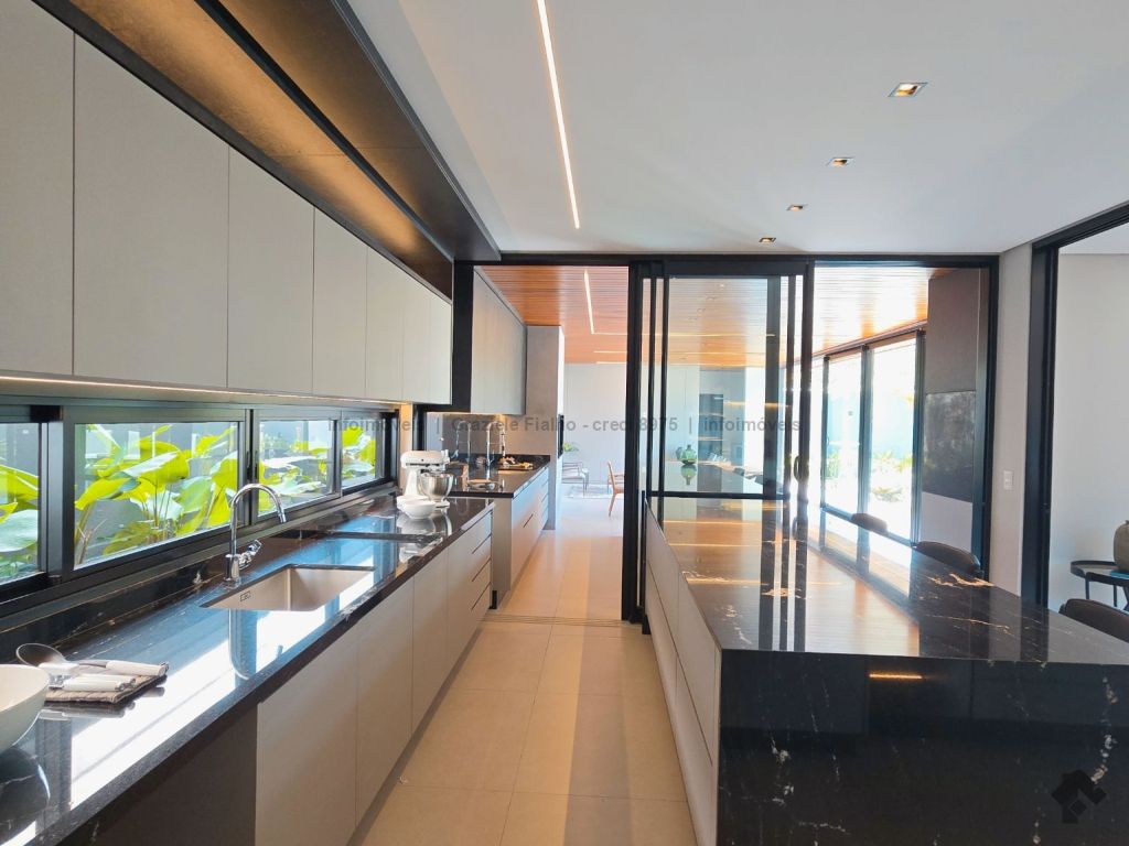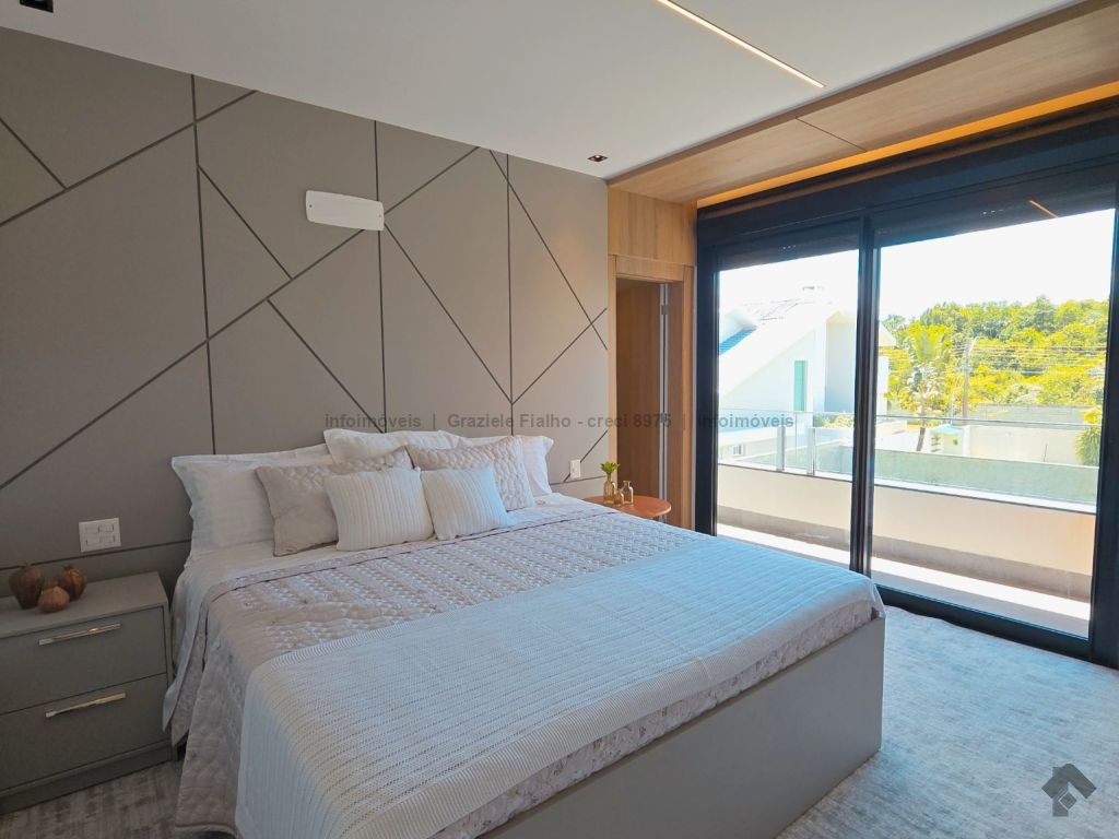 Descubra um sobrado moderno, pronto para morar, onde cada detalhe foi pensado para oferecer conforto e sofisticação. Com uma ampla sala de pé direito duplo e adega integrada, é o espaço ideal para momentos especiais. O piso superior conta com 4 suítes, incluindo uma suíte máster com sacada exclusiva, proporcionando retiros particulares. Este imóvel é equipado com preparação para elevador, ar-condicionado, energia fotovoltaica, persianas automatizadas e sistema de som integrado. Desfrute de um espaço gourmet climatizado, piscina aquecida com cascata e paisagismo completo. Eleve seu estilo de vida com requinte e tecnologia.