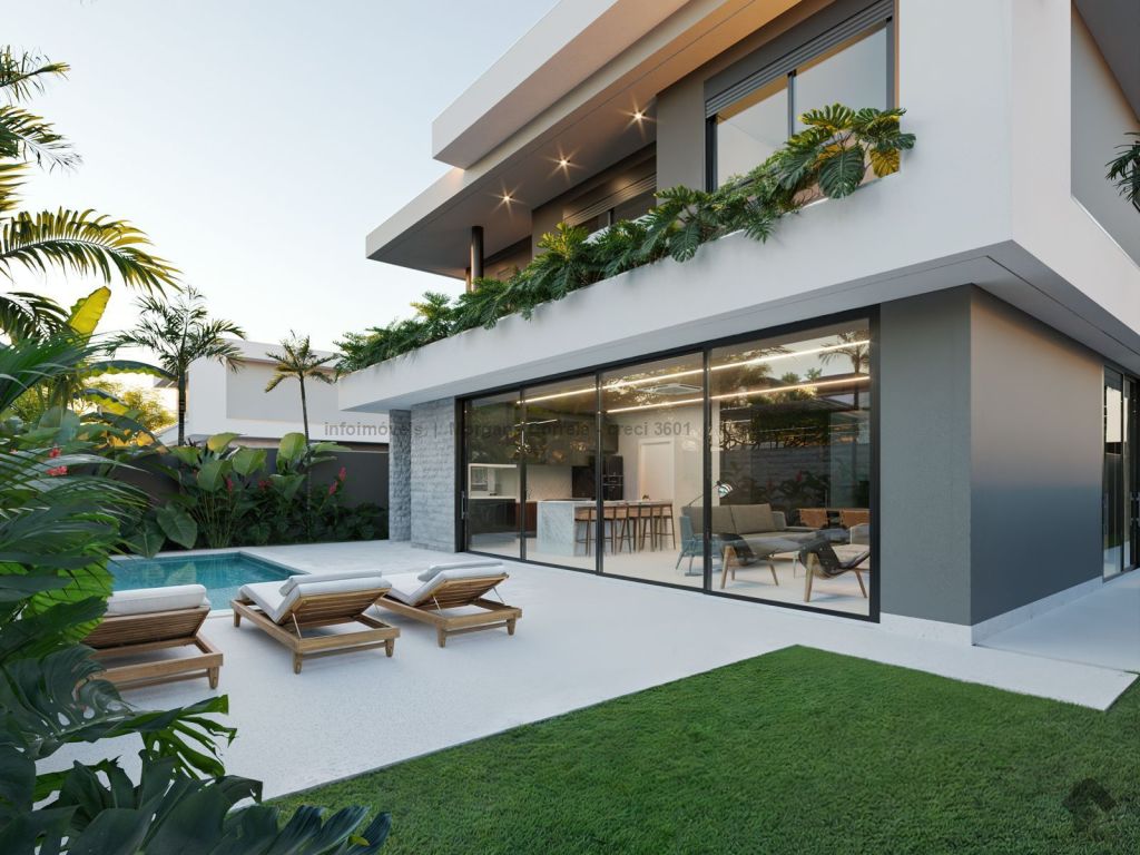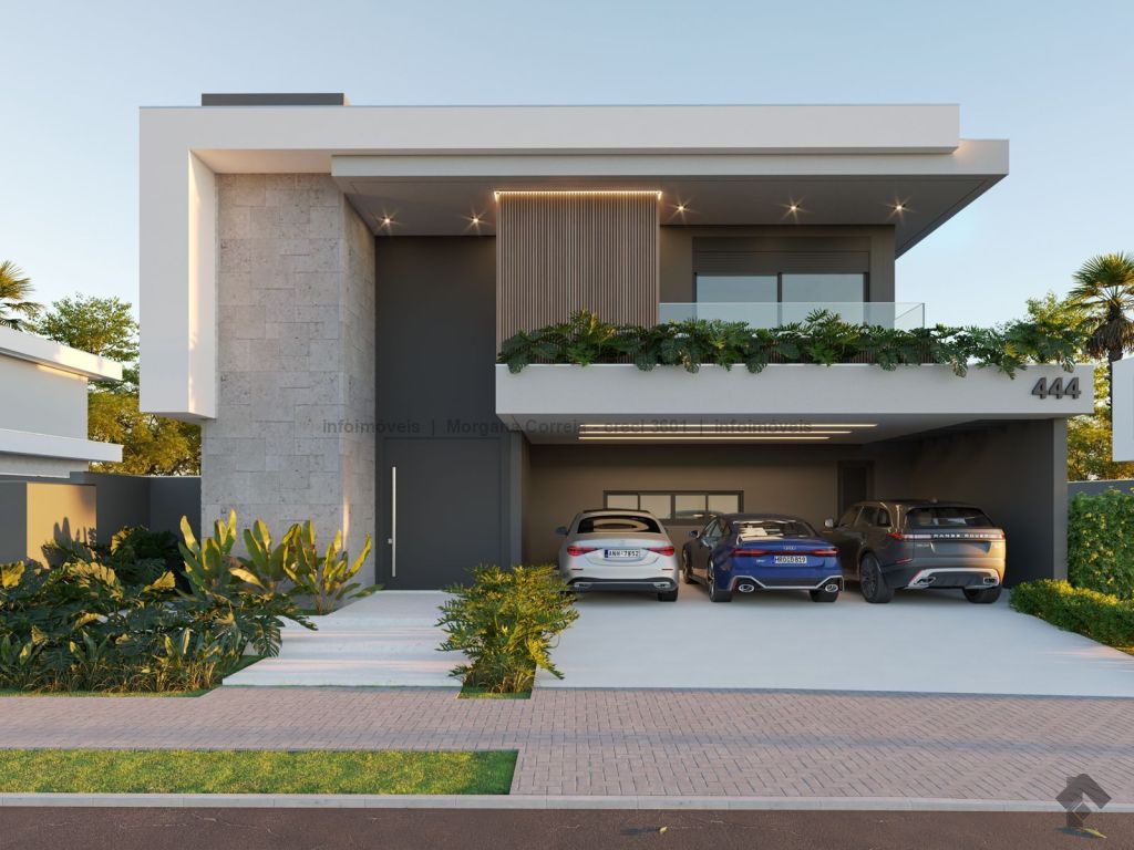 Casa com cinco suítes, preparação para energia fotovoltaica, quatro suítes completas com closet, diversos ambientes em mármore, elevador já instalado, previsão de entrega em maio de 2026.