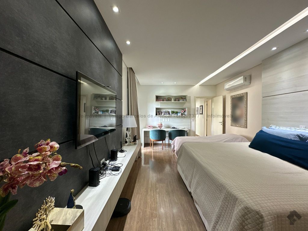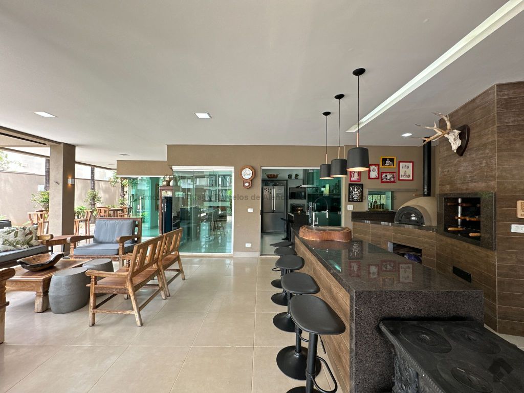 Sobrado de esquina no Damha II, com ambientes amplos e integrados, ideal para quem busca conforto e sofisticação. Conta com 4 suítes, sendo 1 master com hidromassagem e sacada com vista para a praça. No térreo, sala de estar com pé-direito duplo, sala de jantar, home theater, escritório, cozinha planejada, jardim de inverno e lavabo interno e externo. A área gourmet é completa, com forno de pizza, churrasqueira e integração total à piscina com raia, prainha e iluminação em LED. Paisagismo automatizado com irrigação e cisterna. Garagem para 6 veículos e acabamentos de alto padrão.