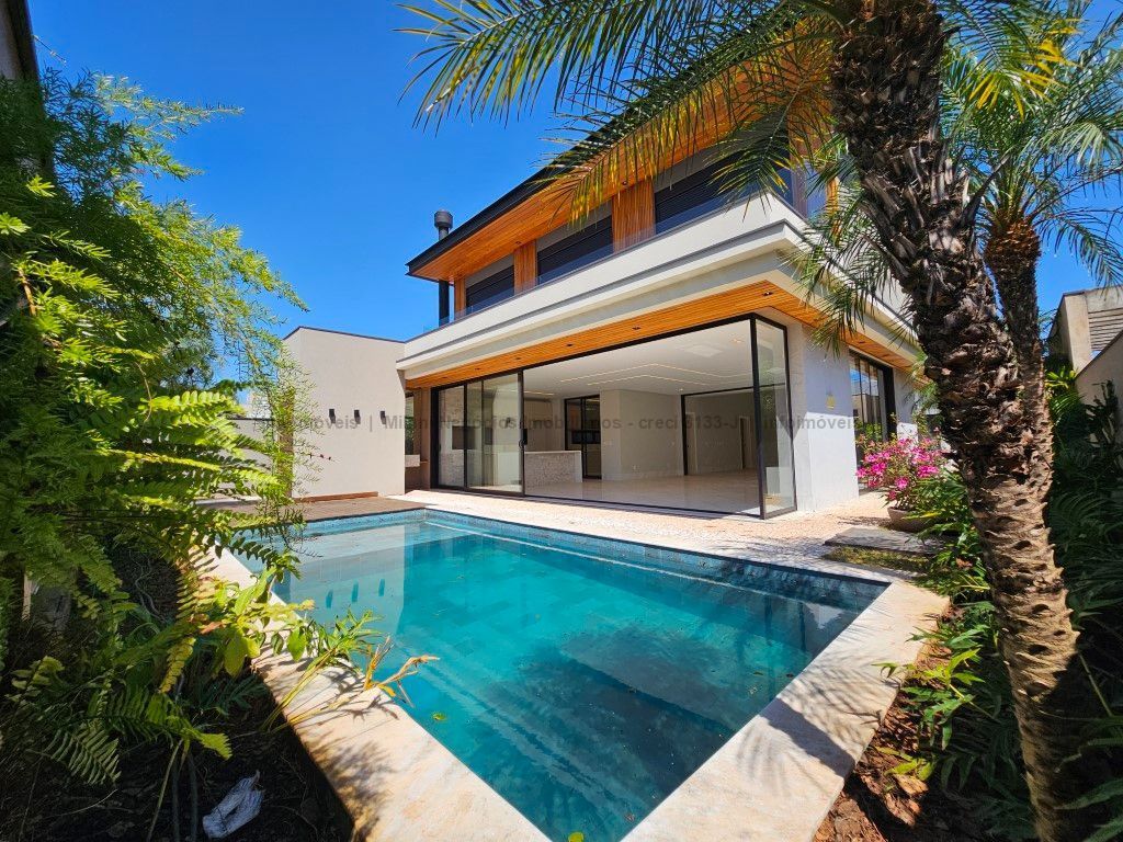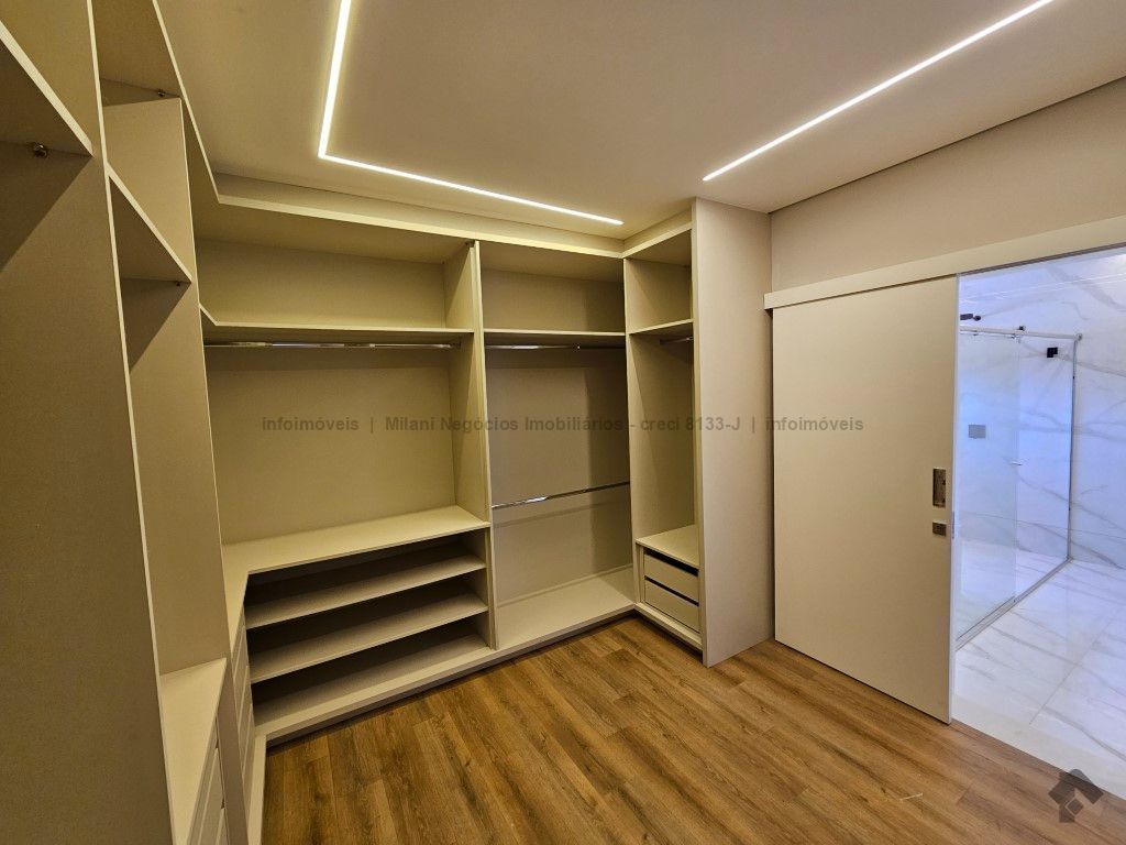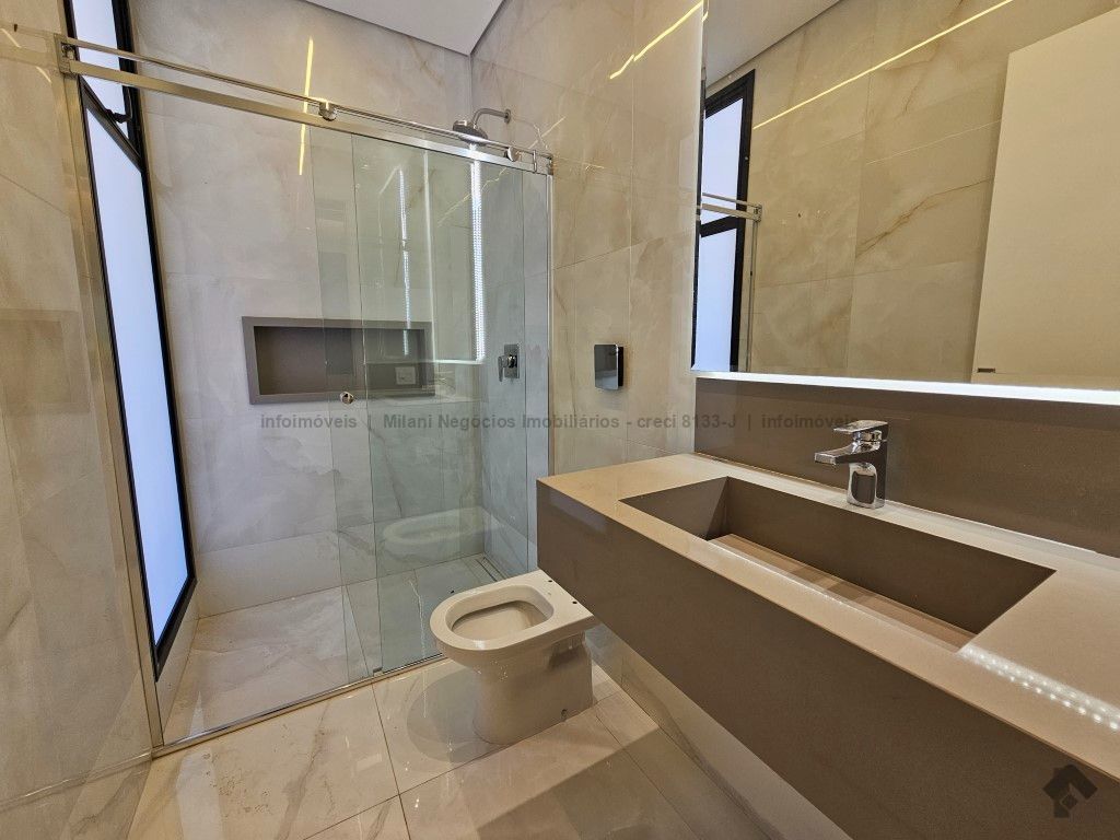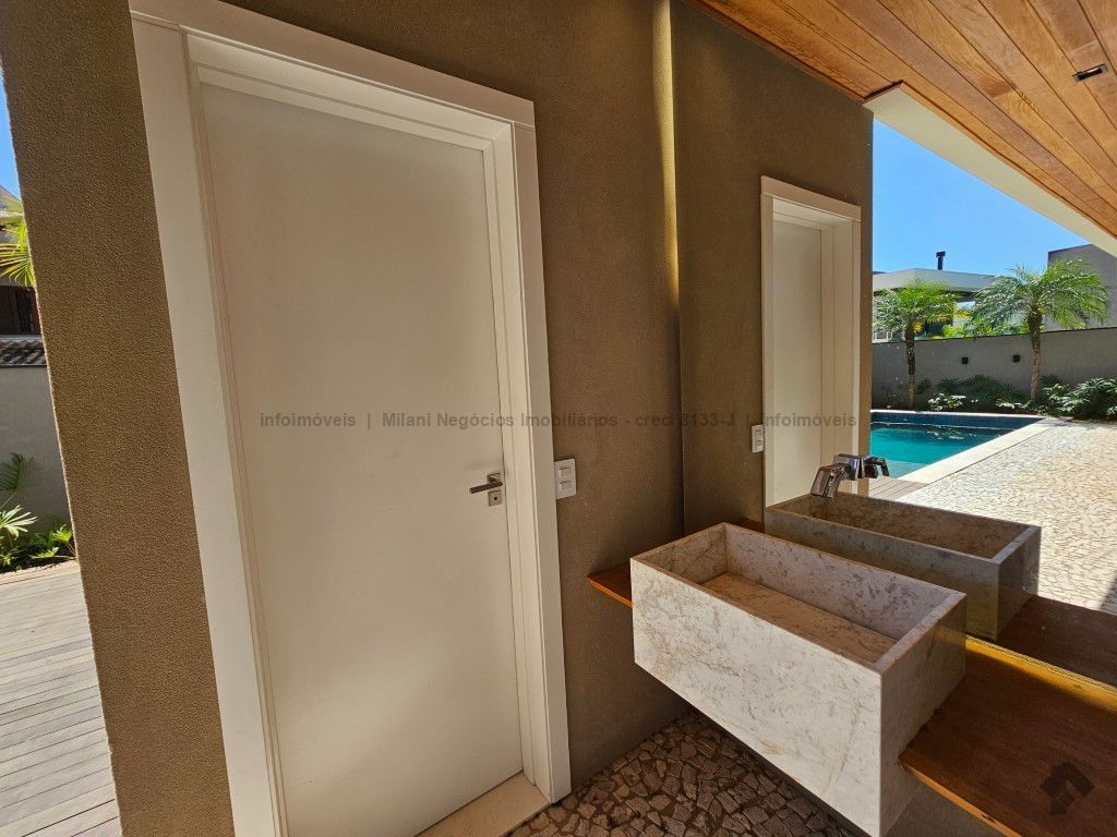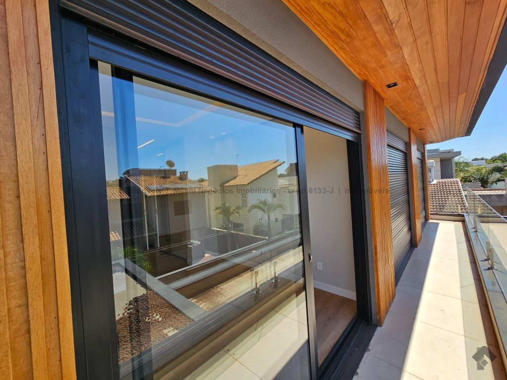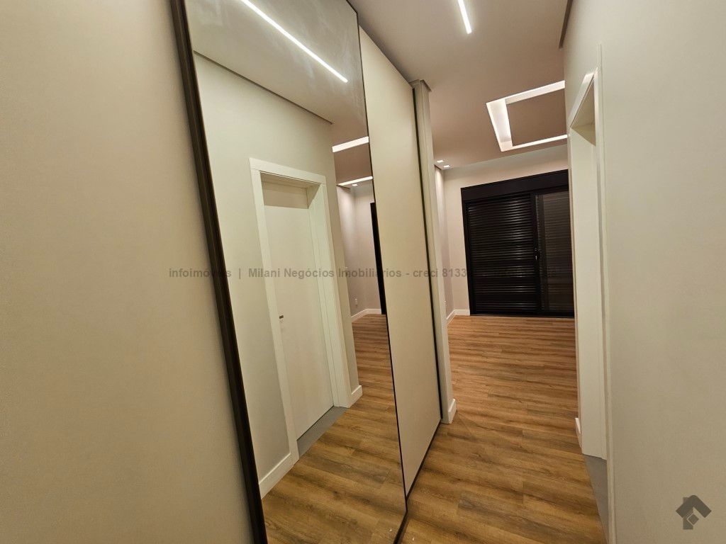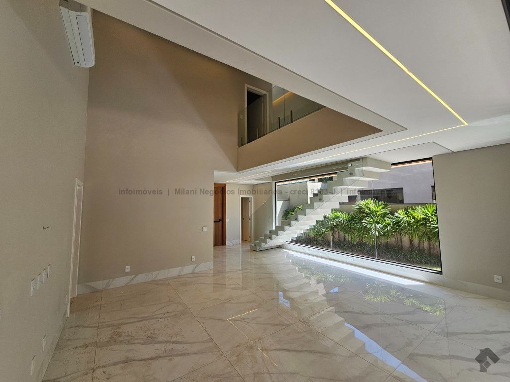 Sobrado de alto padrão com 05 suítes (01 no piso inferior), 01 home theater, living amplo com pé direito duplo, lavabo, espaço gourmet com bancada e ilha central, cozinha fechada com eletrodomésticos embutidos, despensa, WC de serviço na área gourmet/piscina, depósito. Acabamentos premium com piso 120 x 120 cm, bancadas supernanoglass, white plus (Fornari), mármore Michelangelo Nuvolato. 03 vagas de garagem coberta.