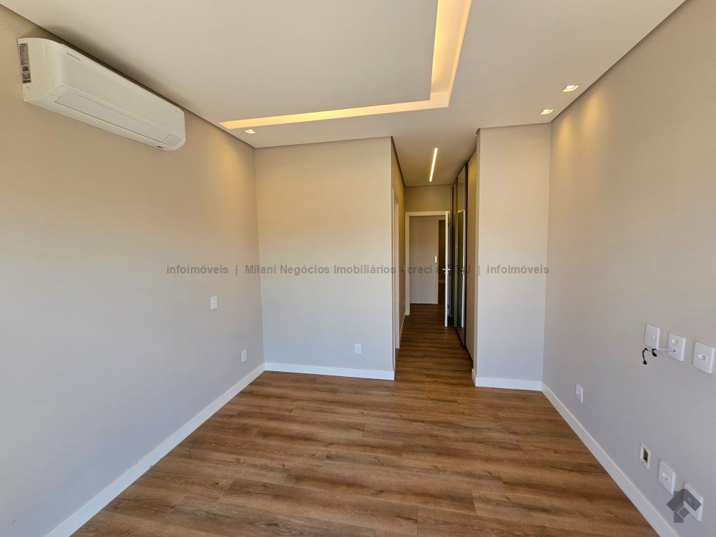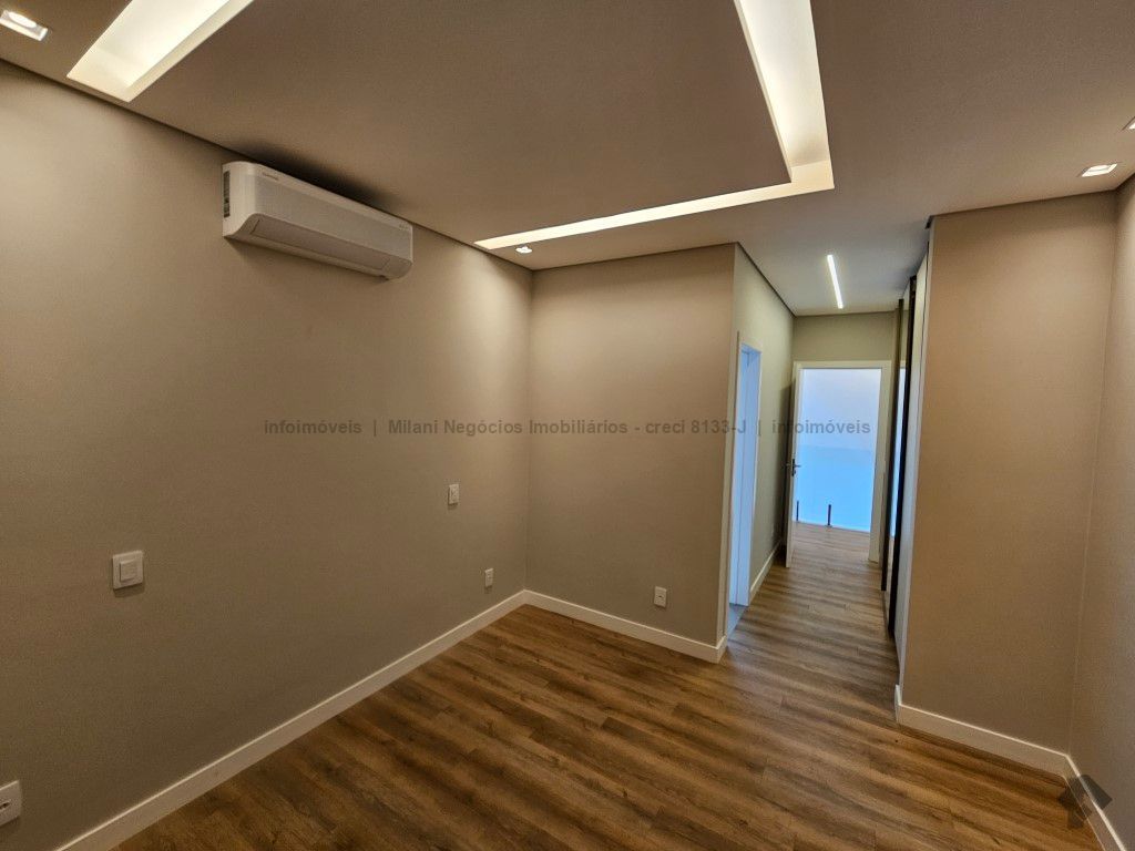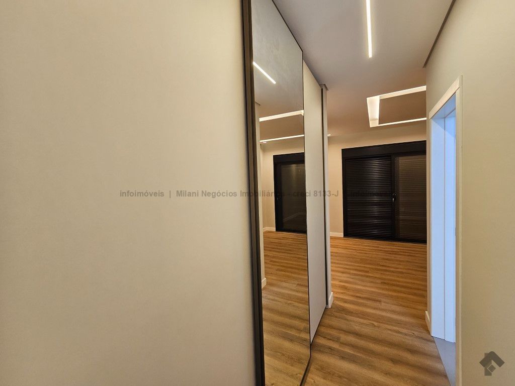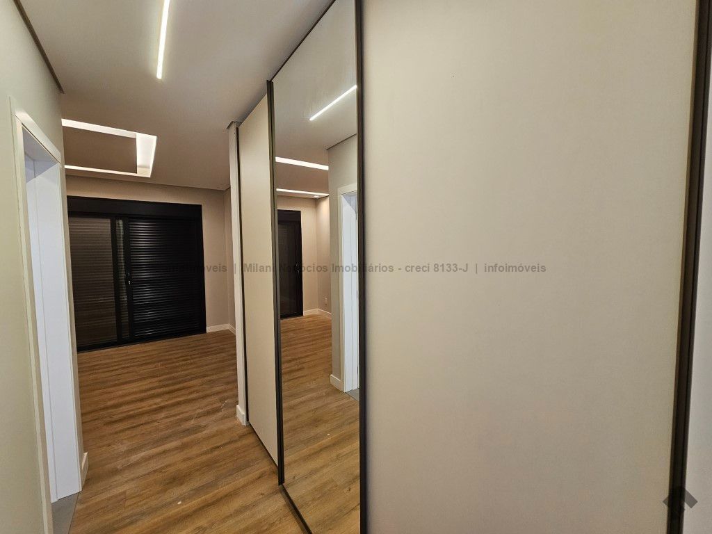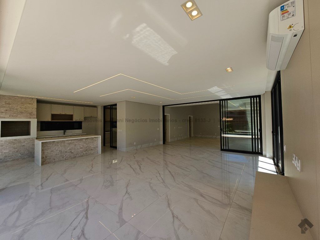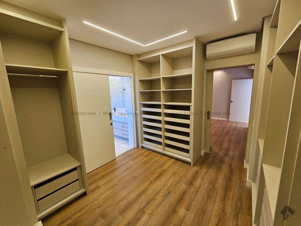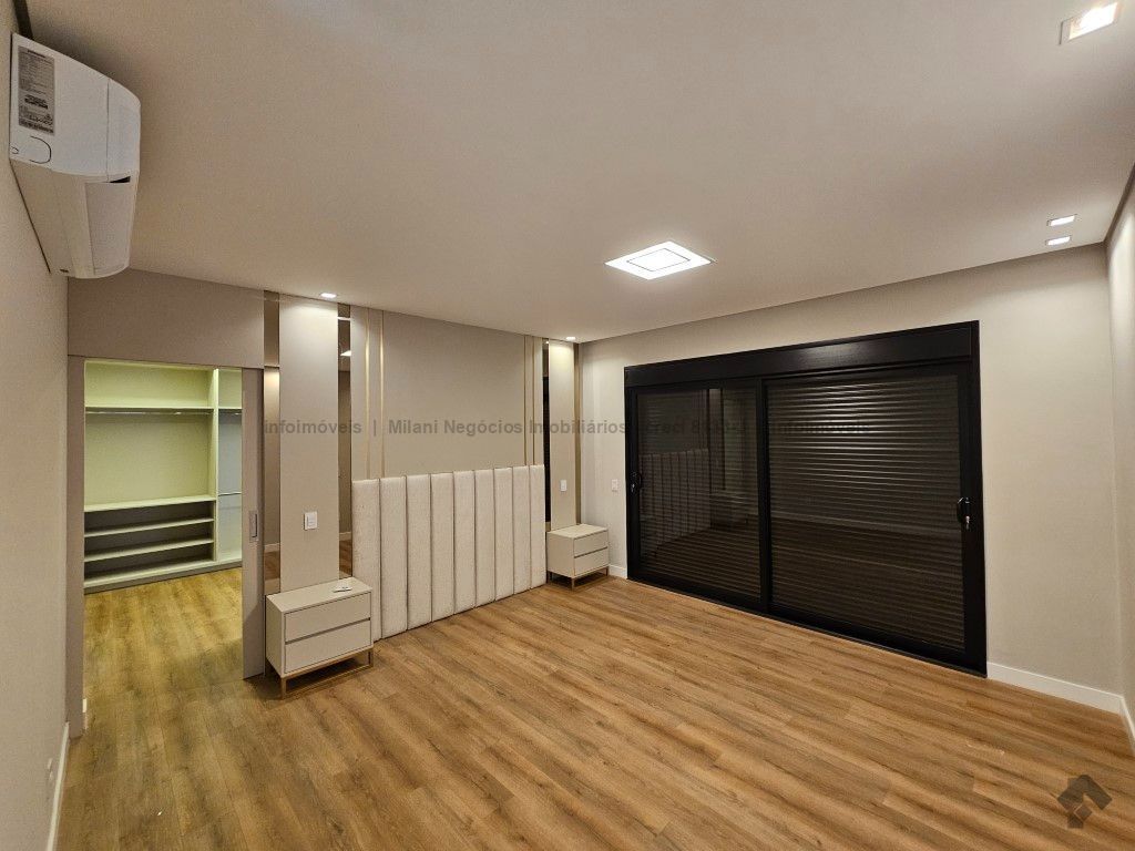 Sobrado de alto padrão com 05 suítes (01 no piso inferior), 01 home theater, living amplo com pé direito duplo, lavabo, espaço gourmet com bancada e ilha central, cozinha fechada com eletrodomésticos embutidos, despensa, WC de serviço na área gourmet/piscina, depósito. Acabamentos premium com piso 120 x 120 cm, bancadas supernanoglass, white plus (Fornari), mármore Michelangelo Nuvolato. 03 vagas de garagem coberta.