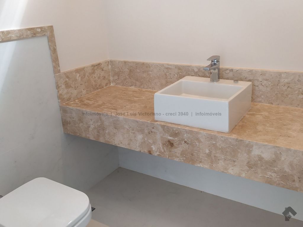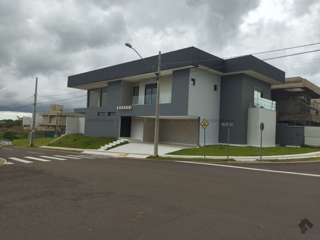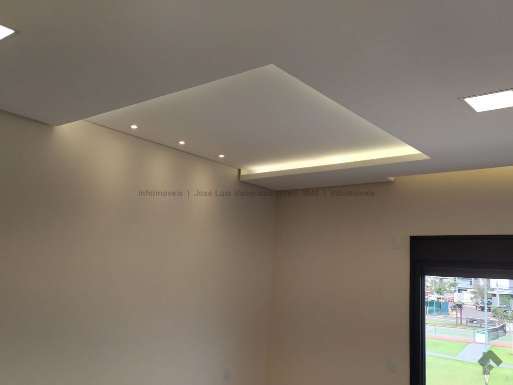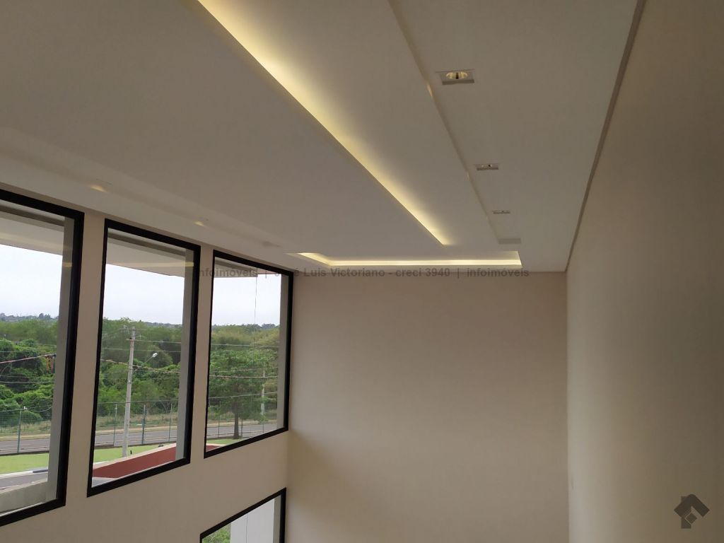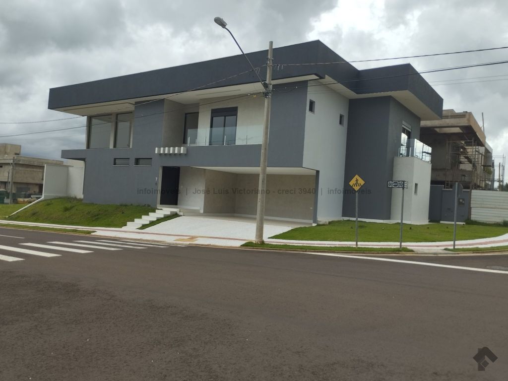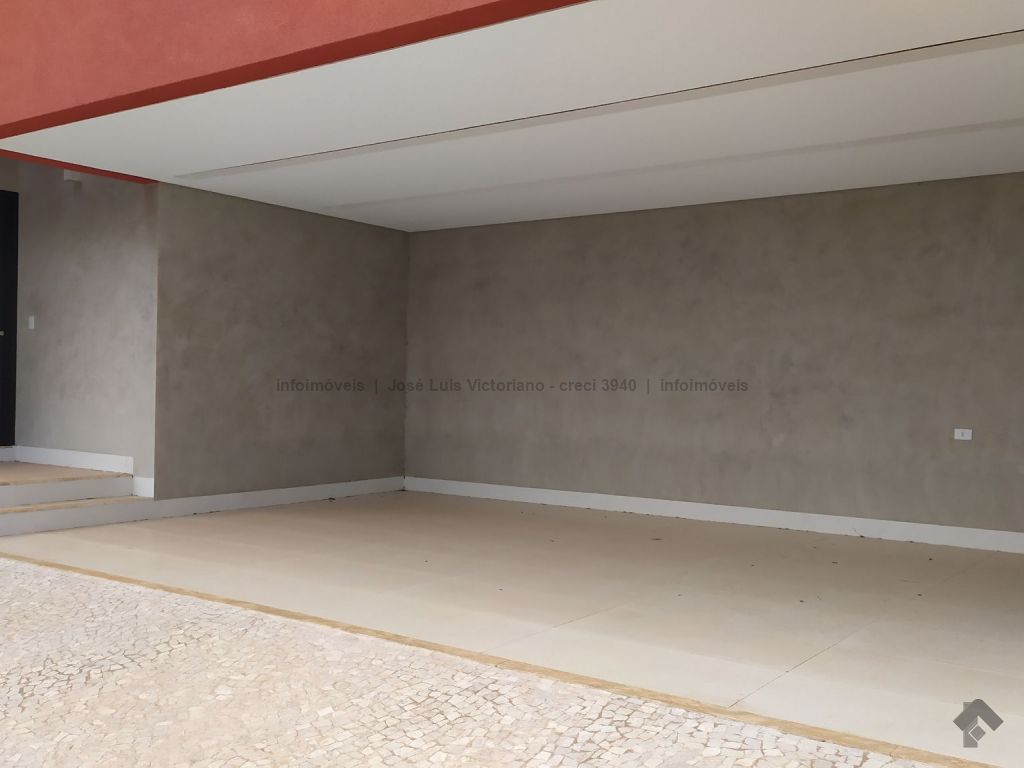 Projeto moderno, pé direito triplo, ampla sala para 3 ambientes, espaço gourmet, piscina, escritório, lavabo, cozinha, dispensa, quarto e banheiro para funcionária. No piso superior são três suítes, sendo duas com sacada.