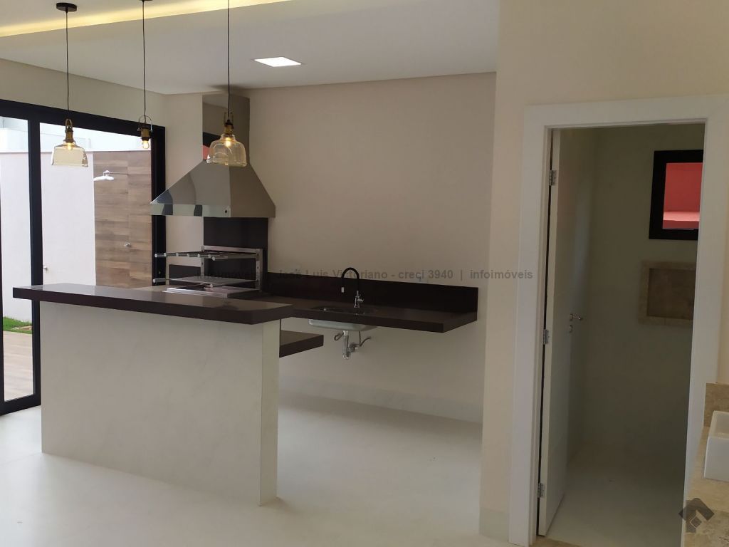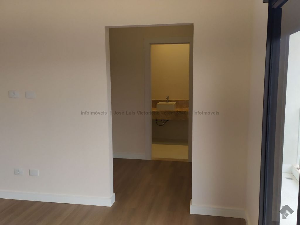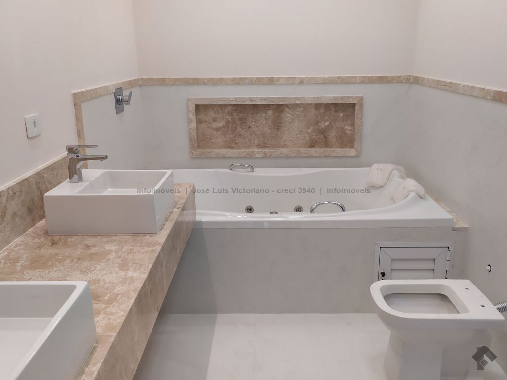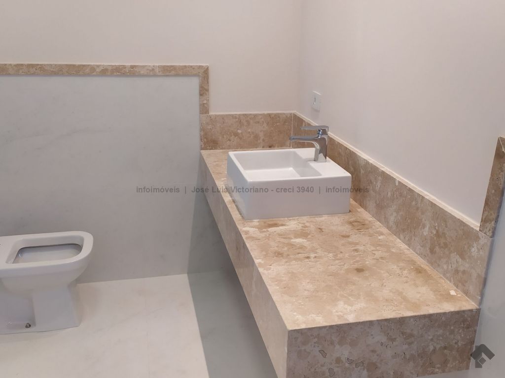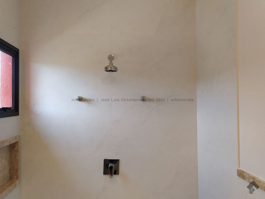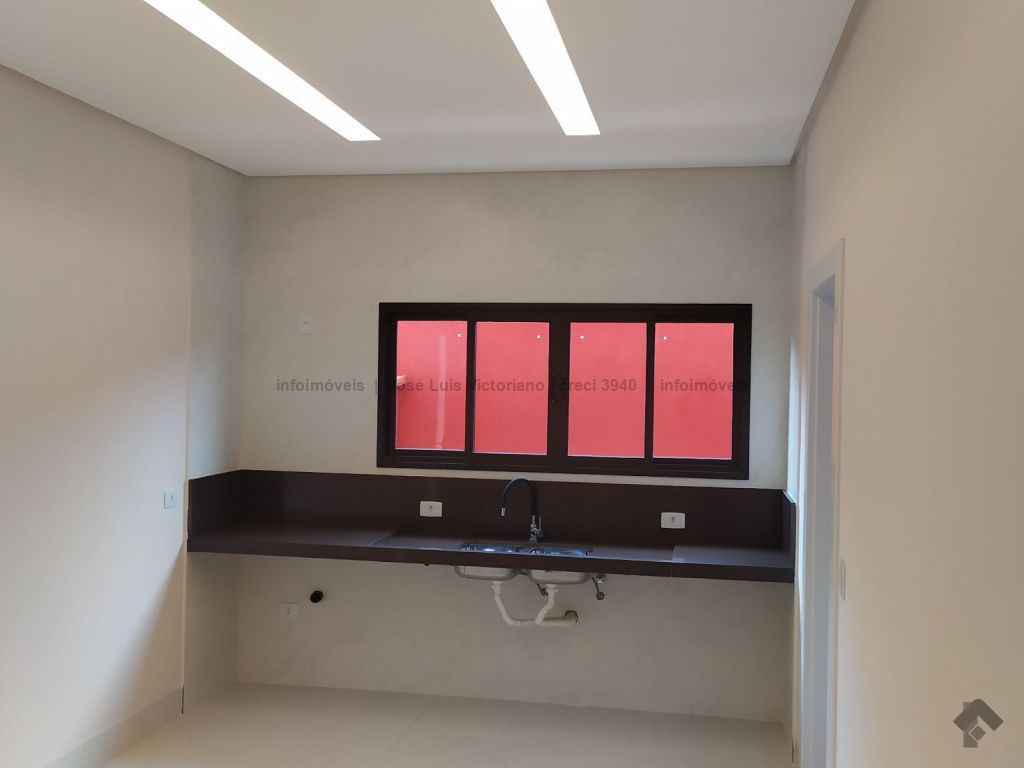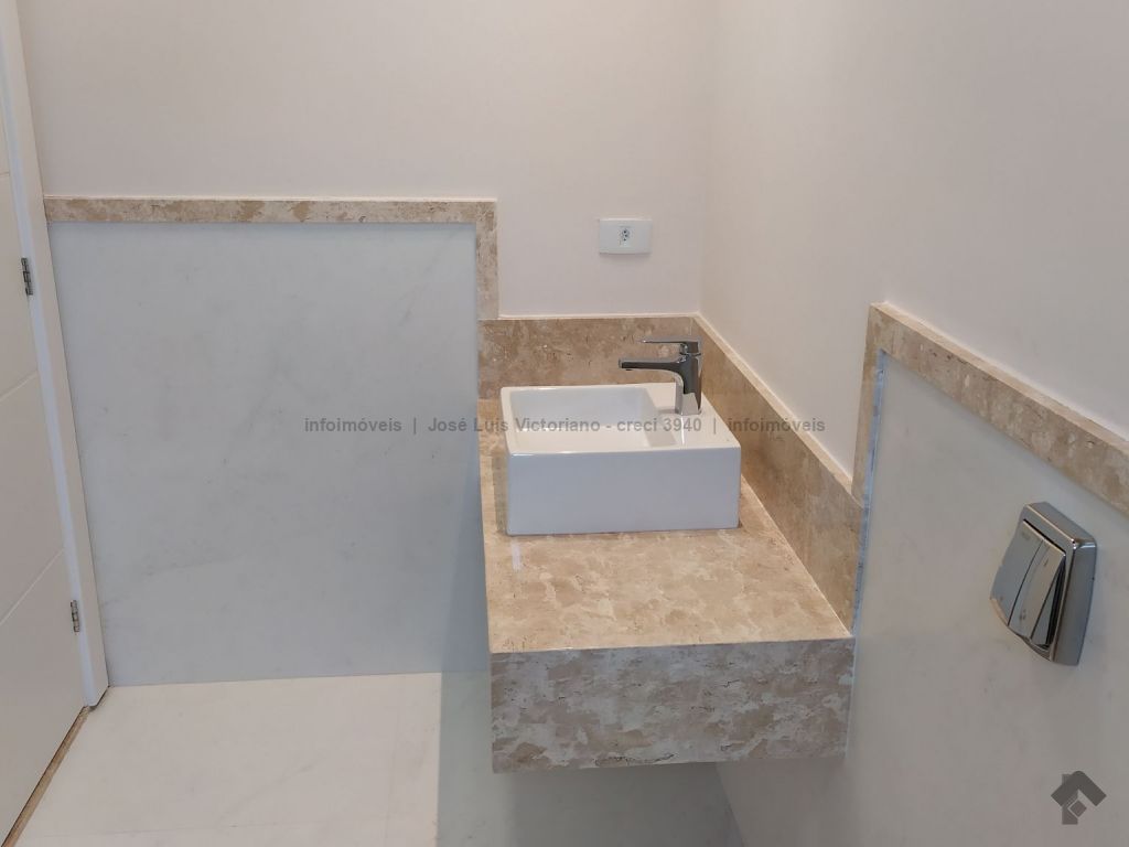 Projeto moderno, pé direito triplo, ampla sala para 3 ambientes, espaço gourmet, piscina, escritório, lavabo, cozinha, dispensa, quarto e banheiro para funcionária. No piso superior são três suítes, sendo duas com sacada.