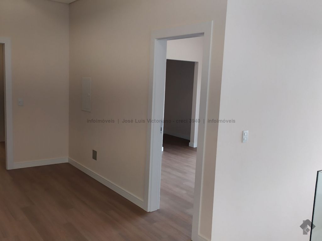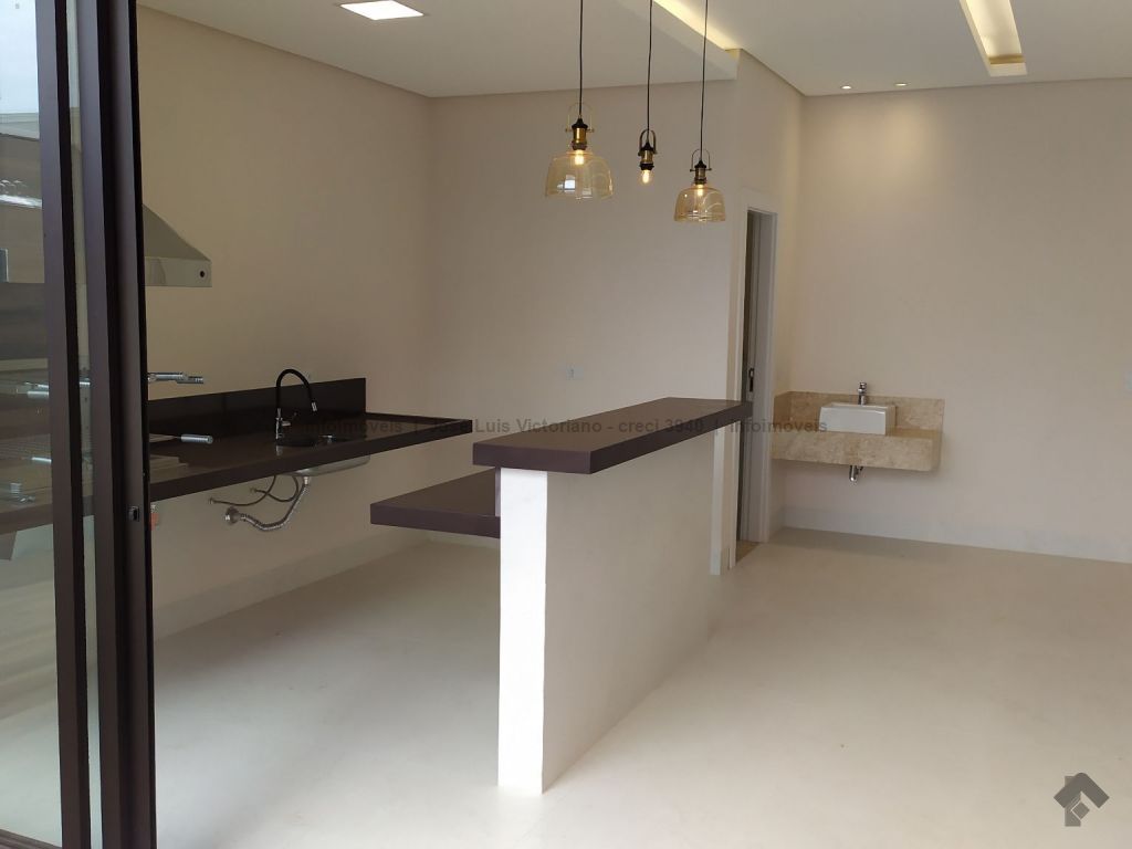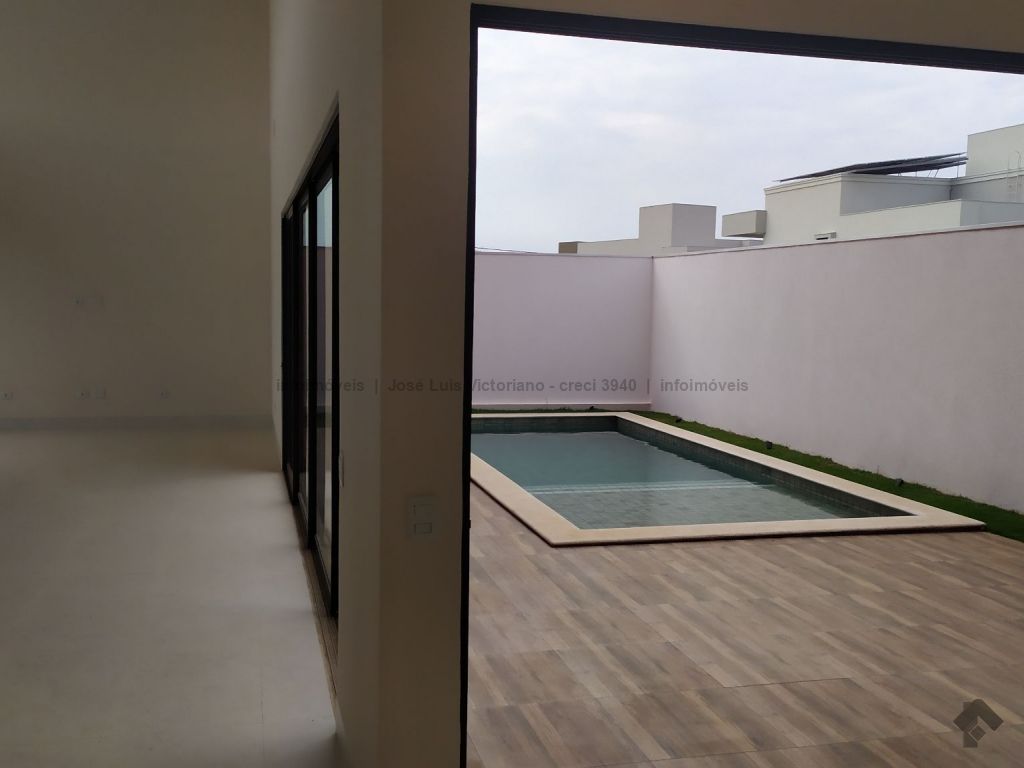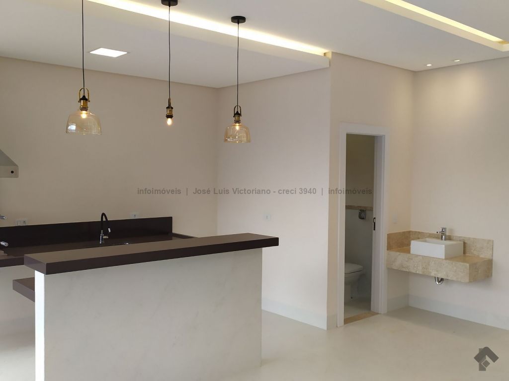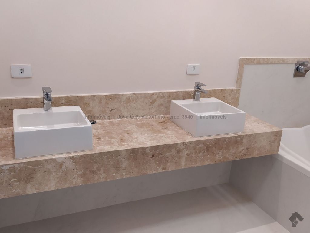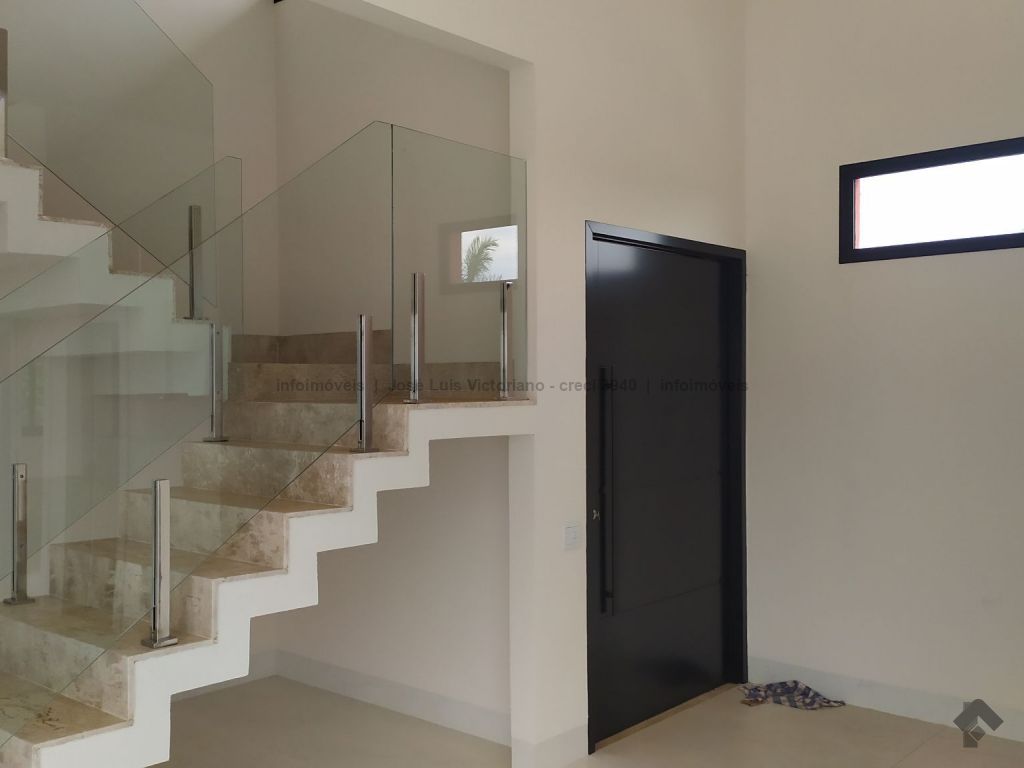 Projeto moderno, pé direito triplo, ampla sala para 3 ambientes, espaço gourmet, piscina, escritório, lavabo, cozinha, dispensa, quarto e banheiro para funcionária. No piso superior são três suítes, sendo duas com sacada.