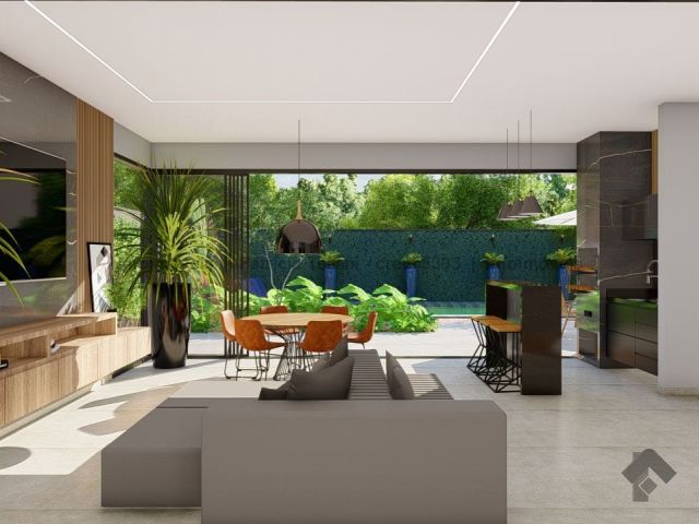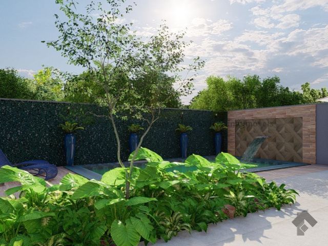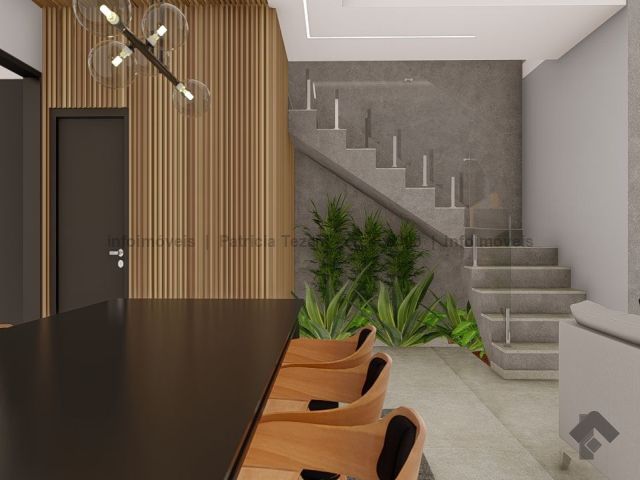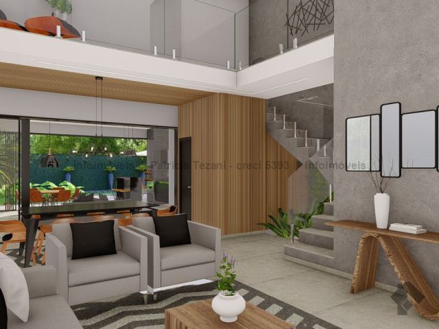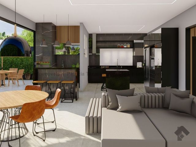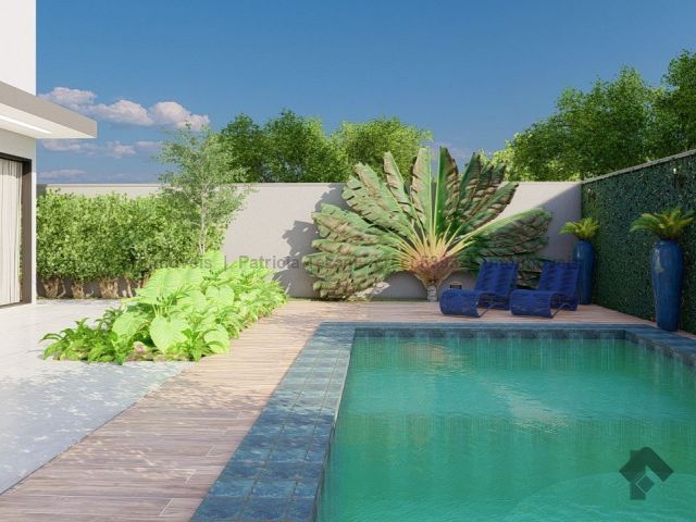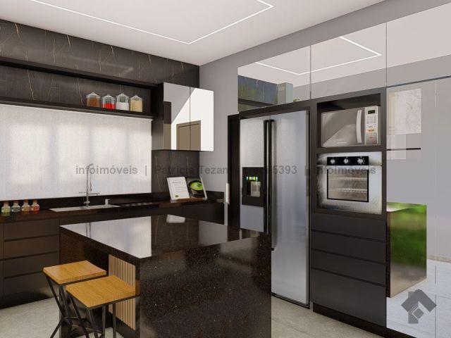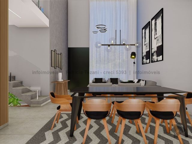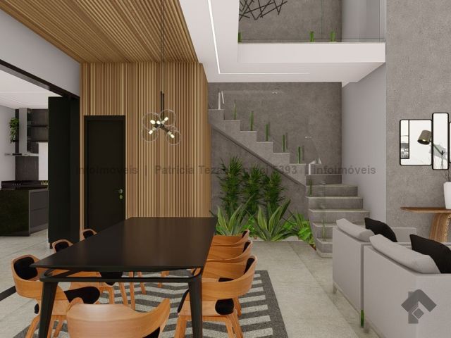 Piso inferior: garagem para 3 carros, sala de estar, sala de jantar, home theater, cozinha, despensa, lavabo, área de serviço, banheiro de serviço, espaço gourmet com balcão e churrasqueira, piscina com prainha, banheiro para piscina. Piso superior: varanda/sacada, home office, 3 suítes. Banheira jacuzzi, aquecedor solar e boiler para 500 litros de agua quente, fachada frente com pedra portuguesa branca, piscina com prainha hidromassagem e agua aquecida, escada de granito, luminárias led, portas externas de alumínio, portas internas laqueadas, cobertura com telhas térmicas, metais docol, gesso em toda casa, persianas elétricas, preparação para splits.
