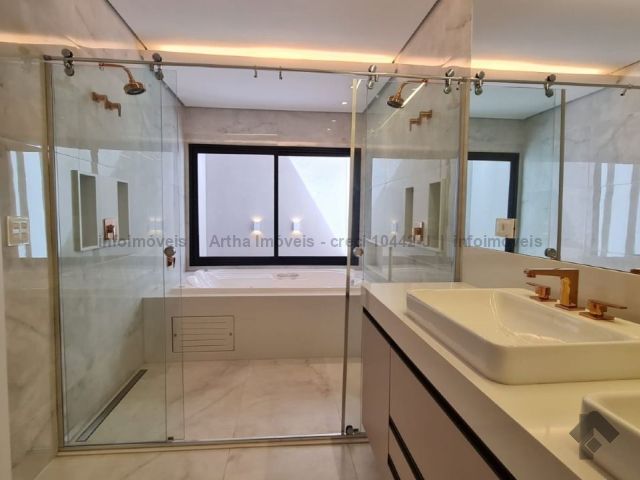 Espetacular sobrado de esquina, com acabamento em altíssimo padrão. O imóvel possui, no piso térreo: sala em dois ambientes com pé direito duplo, lavabo, cozinha e área gourmet integrados, área gourmet integrada com ilha revestida em pedra resistente ao calor para instalação de cooktop, churrasqueira revestida com pedra etrusco calacatta da castelatto, 1 apartamento ou escritório com banheiro, com as portas do quarto e do banheiro, mais largas para ter acessibilidade, piscina aquecida com prainha, banheiro para atender o lazer, área de serviço, despensa, boxes de depósito. No piso superior temos: 2 apartamentos amplos, 1 suíte ampla, mini copa. O imóvel terá como revestimento porcelanato.