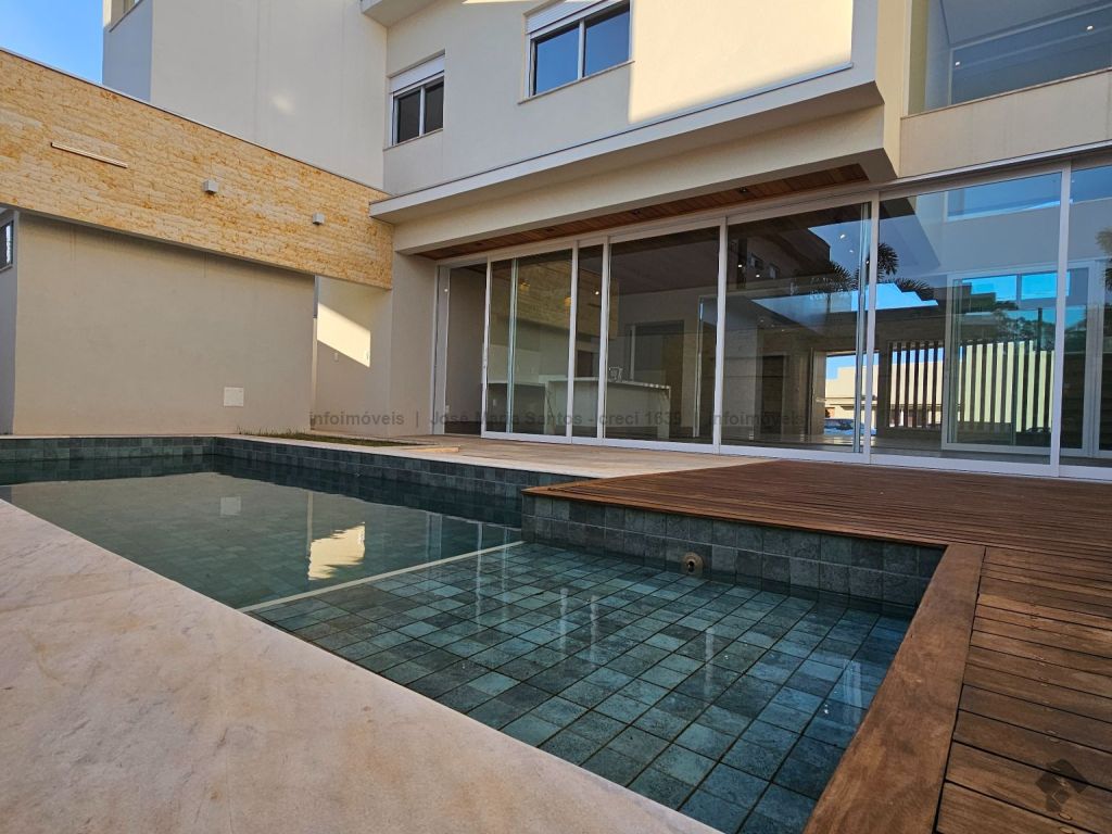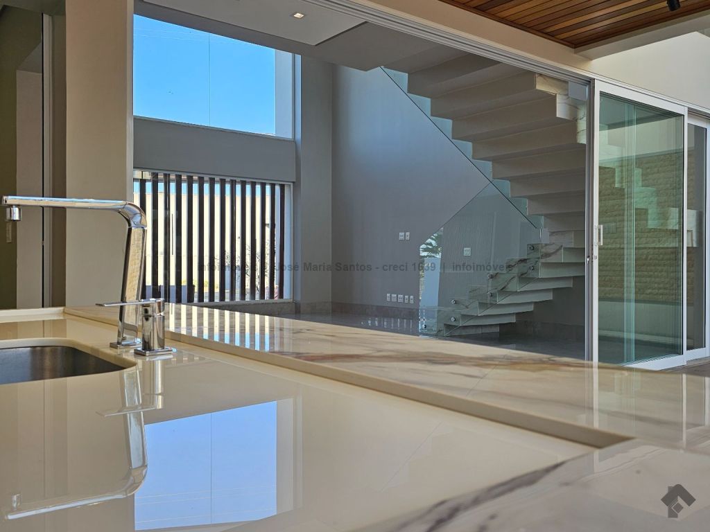 Com um projeto arquitetônico moderno, com 327,70 m², a casa com 04 suítes foi construída com um rico acabamento, todo em porcelanato Portinari, granitos e mármores importados. Possui também esquadrias automatizadas, piscina aquecida e equipada com espera para energia fotovoltaica.
