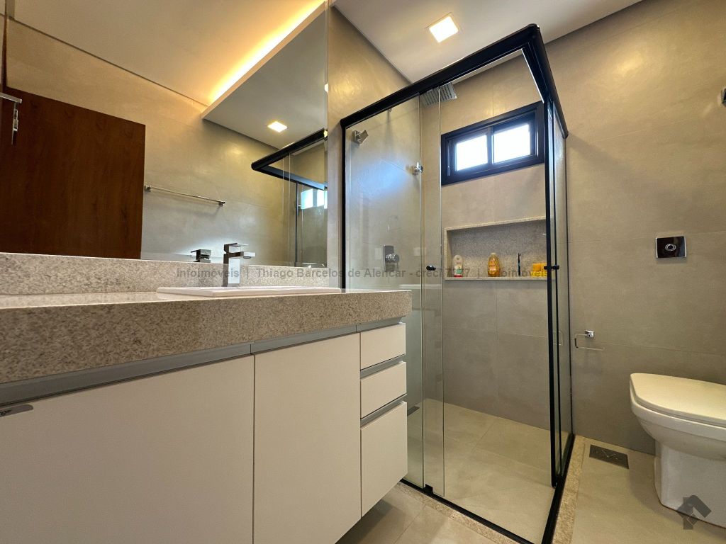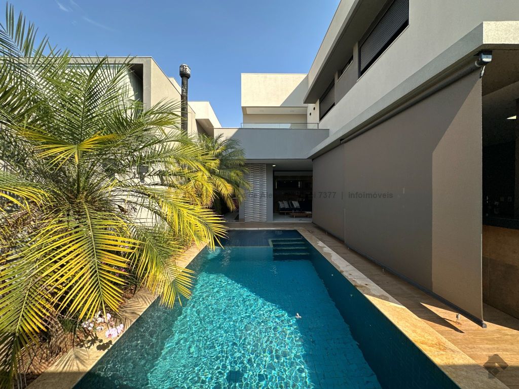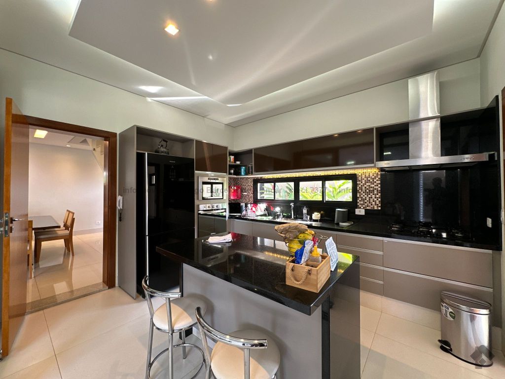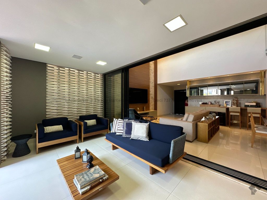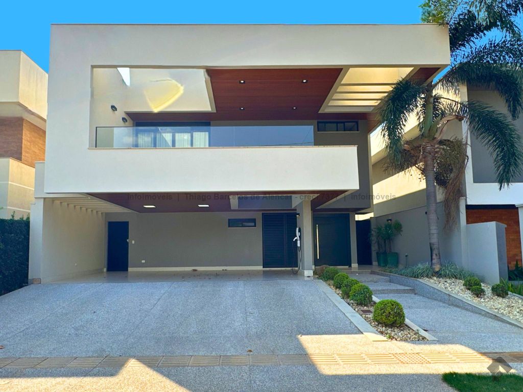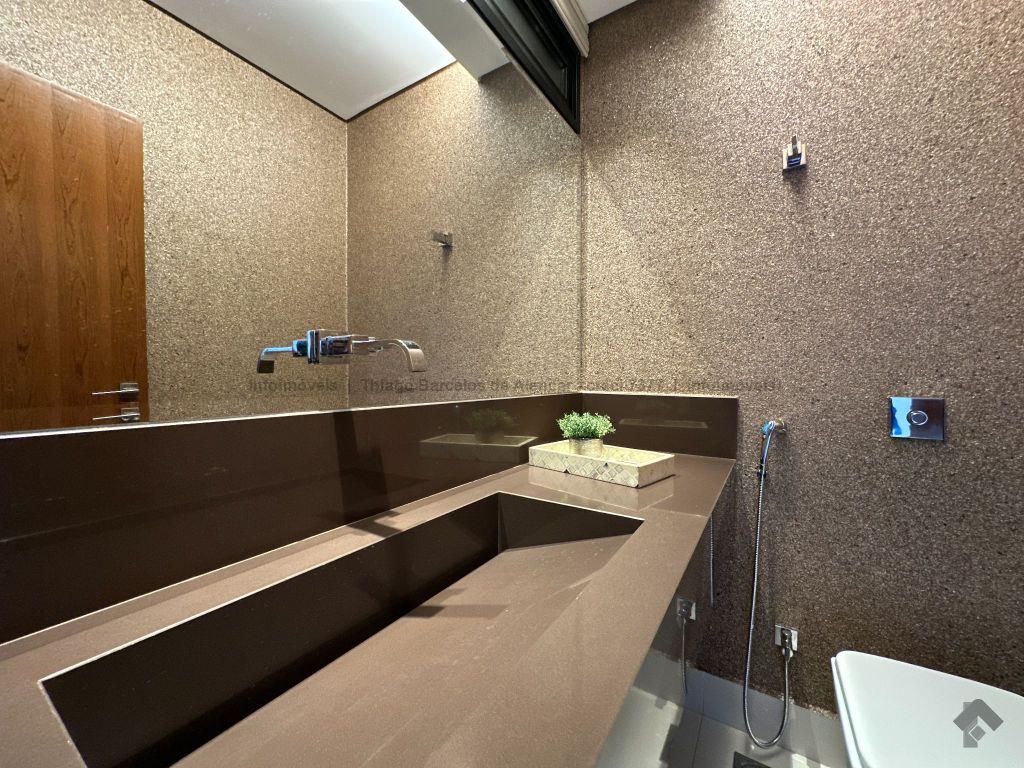 Sobrado com 4 suítes, sendo 1 máster com closet e sacada. Sala de estar, jantar e TV, além de home theater. Living com pé-direito duplo, lavabo e cozinha planejada. Conta com área de serviço, lavanderia, depósito e WC social. Área gourmet com churrasqueira e integração ao lazer. Piscina aquecida, hidromassagem e paisagismo. Diferenciais: aquecimento solar, armários embutidos, 4 vagas de garagem e ambientes bem distribuídos para garantir funcionalidade e conforto.