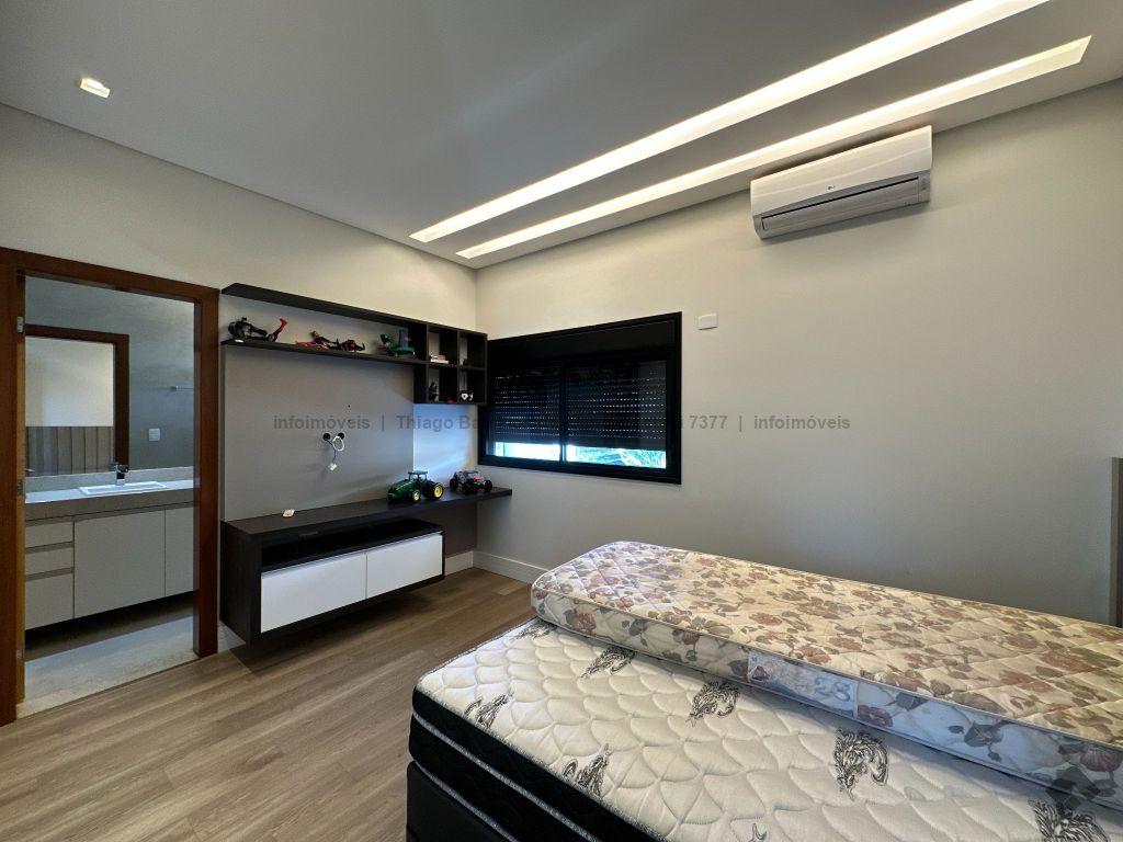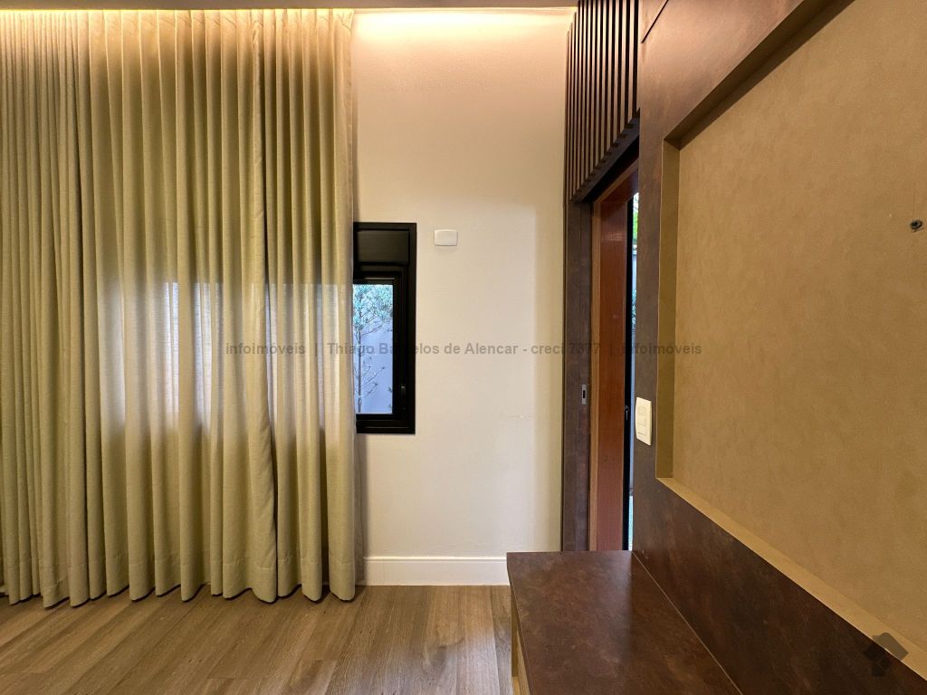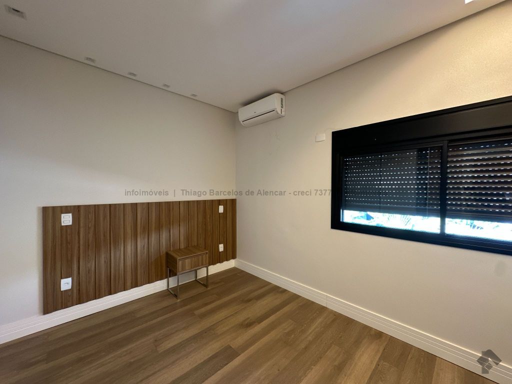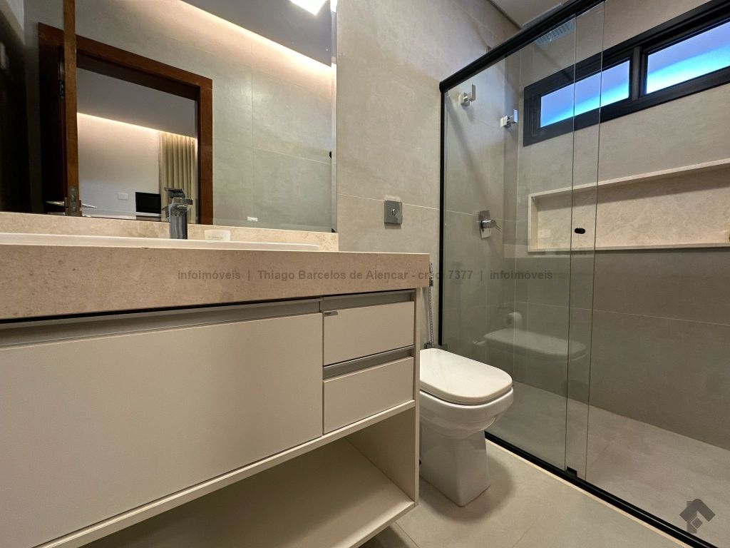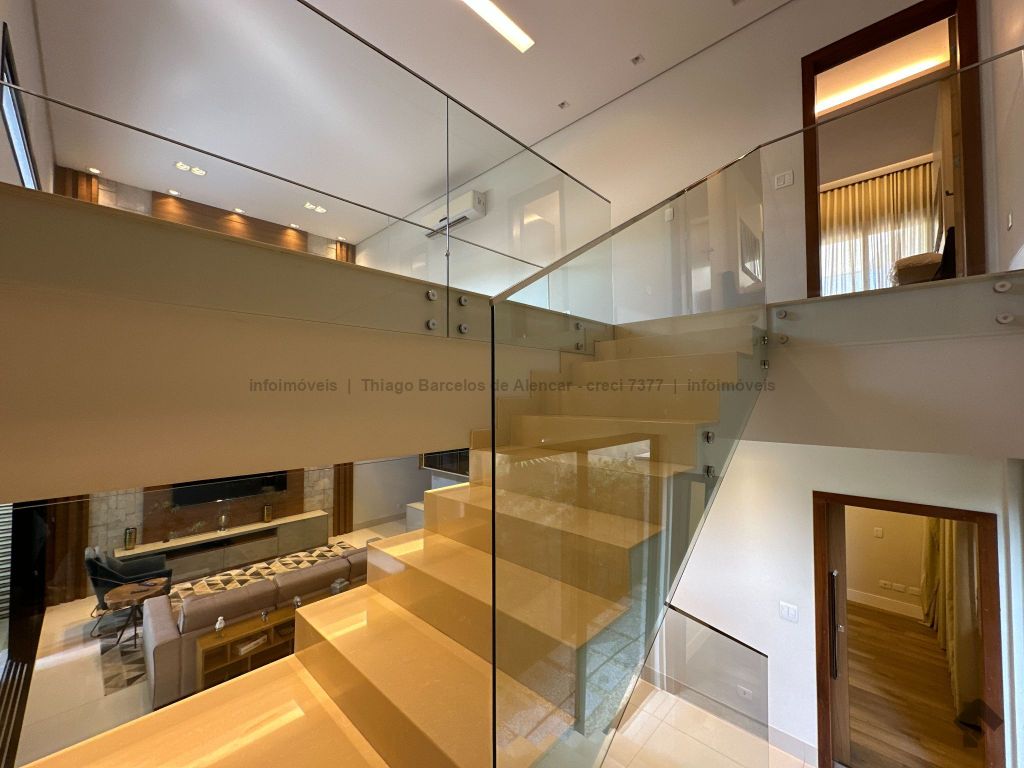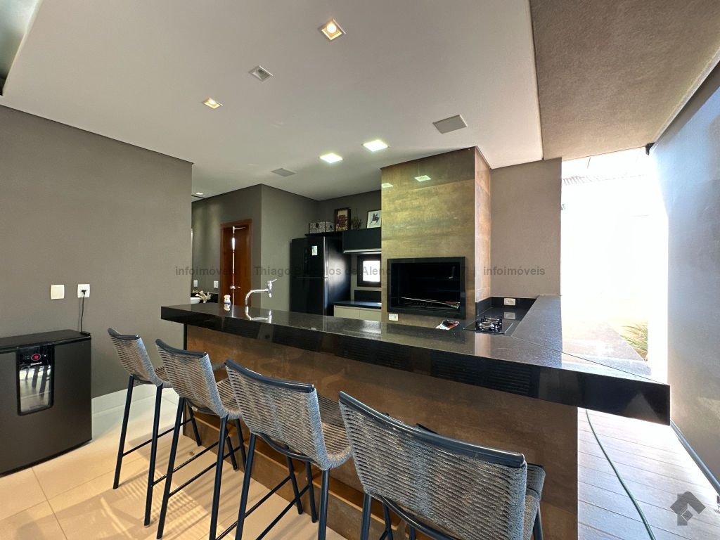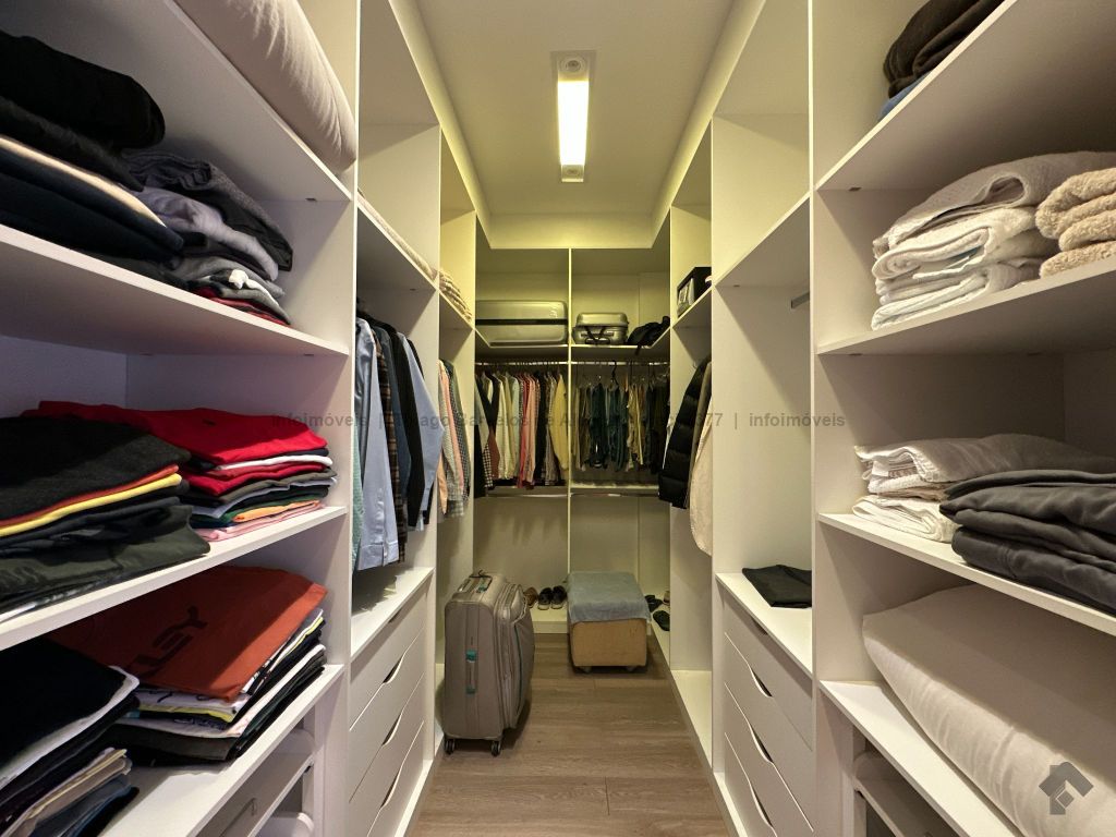 Sobrado com 4 suítes, sendo 1 máster com closet e sacada. Sala de estar, jantar e TV, além de home theater. Living com pé-direito duplo, lavabo e cozinha planejada. Conta com área de serviço, lavanderia, depósito e WC social. Área gourmet com churrasqueira e integração ao lazer. Piscina aquecida, hidromassagem e paisagismo. Diferenciais: aquecimento solar, armários embutidos, 4 vagas de garagem e ambientes bem distribuídos para garantir funcionalidade e conforto.
