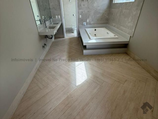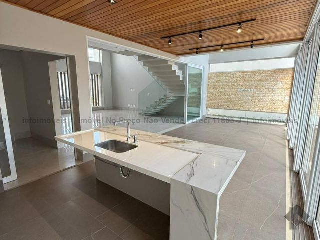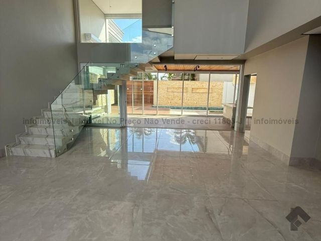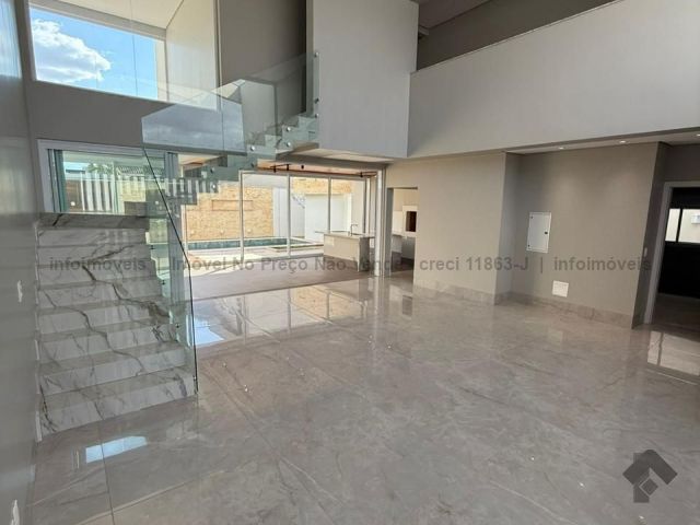 Sobrado moderno com 4 suítes, incluindo 1 master. Ambientes bem distribuídos, com sala ampla para 2 ambientes, lavabo, cozinha funcional e despensa. Conta ainda com área de serviço, espaço gourmet com banheiro, área externa com piscina aquecida e garagem para até 4 carros. Diferencial com infraestrutura pronta para energia fotovoltaica.