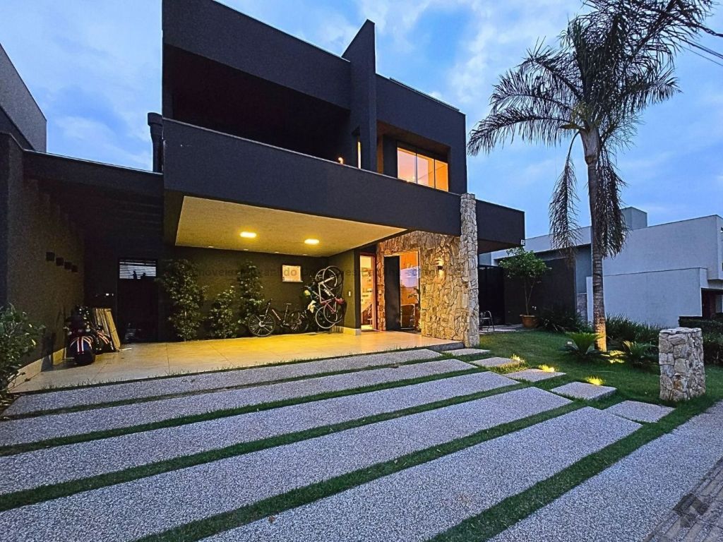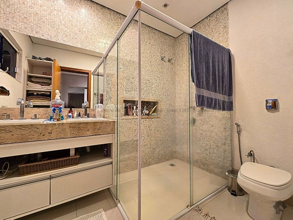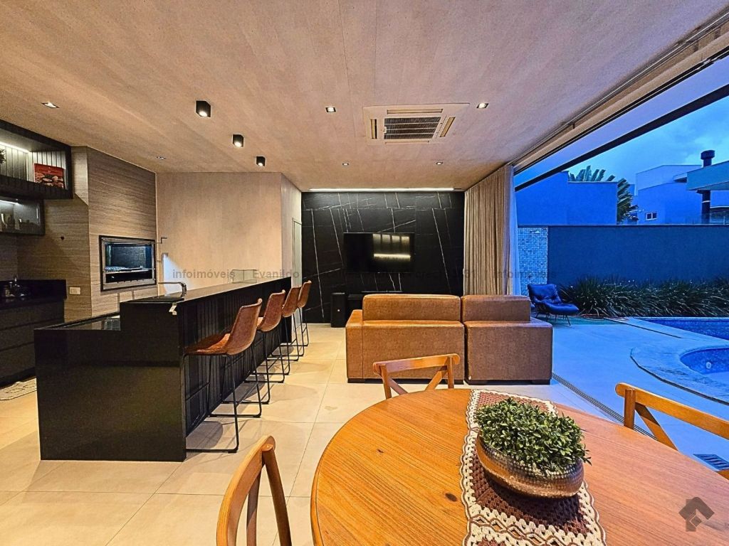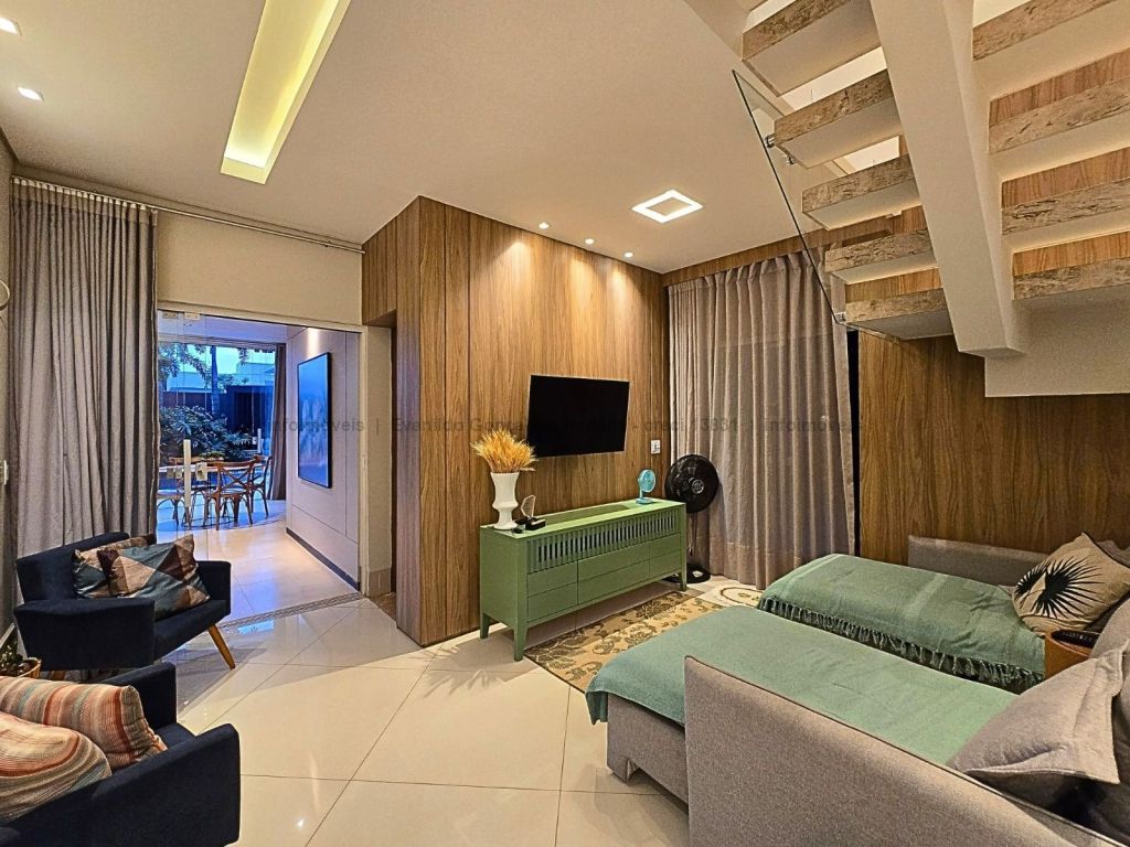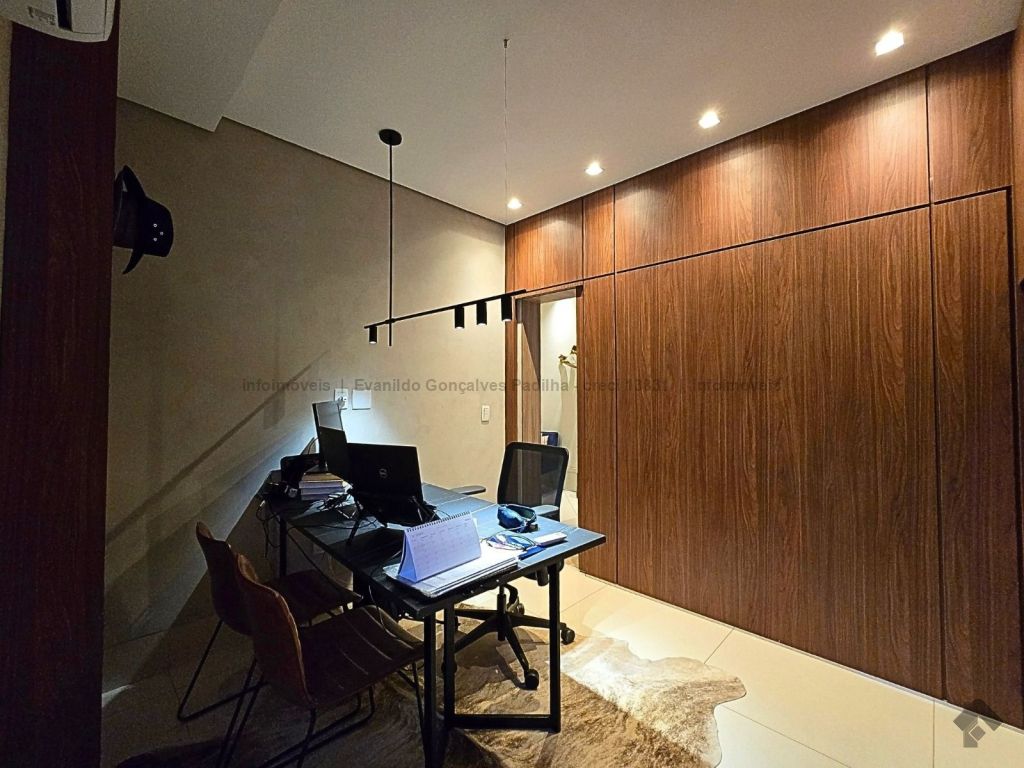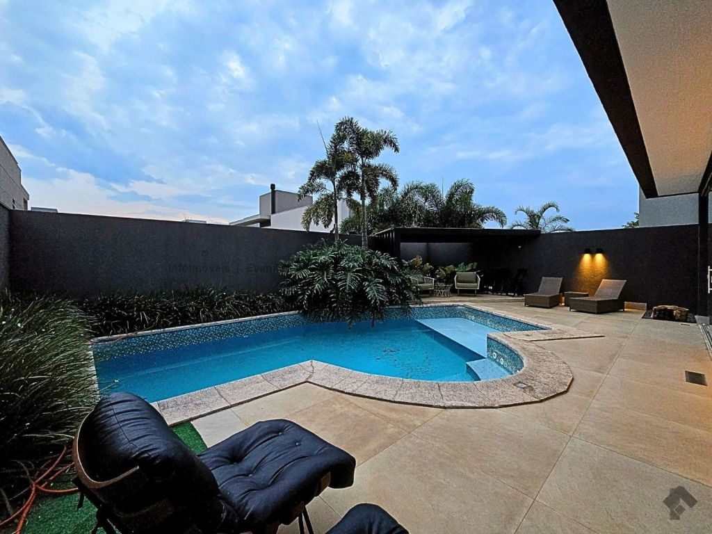 No piso inferior, o imóvel conta com ampla sala para 2 ambientes, lavabo, cozinha com ilha e armários planejados, área de serviço funcional e escritório privativo. O espaço gourmet climatizado integra-se à área externa, proporcionando um ambiente ideal para receber amigos e familiares, com espaço de TV e banheiro de apoio. A piscina aquecida de 33 m², com hidromassagem, garante momentos de lazer e relaxamento. Garagem para até 4 veículos. No piso superior, são 3 suítes confortáveis, sendo a suíte master com closet e varanda privativa, proporcionando mais conforto e privacidade.