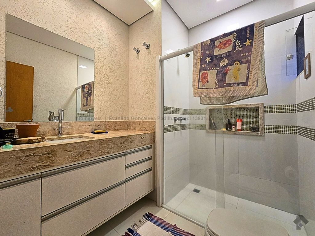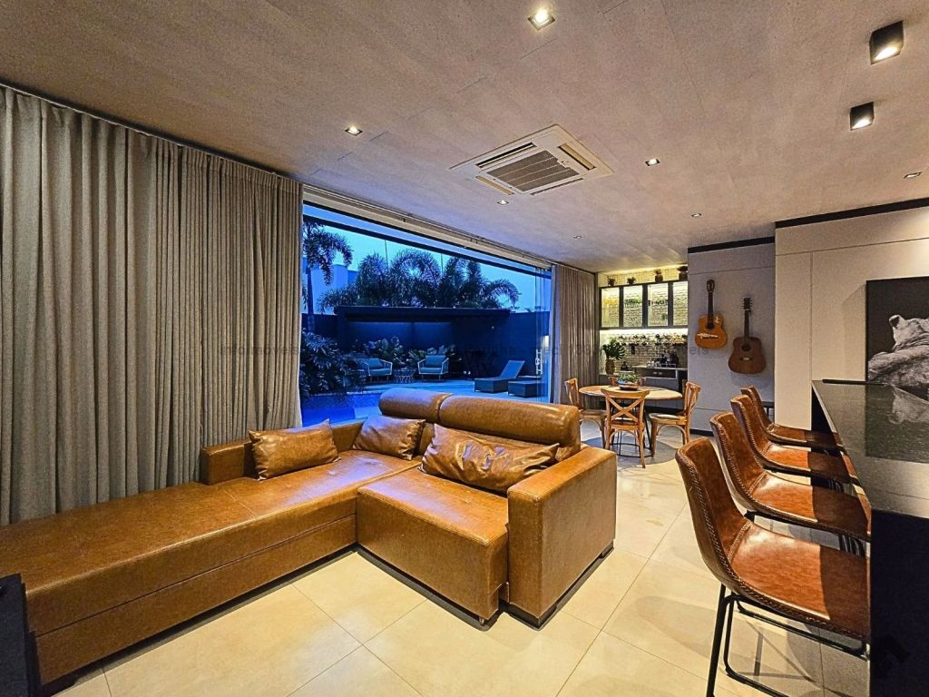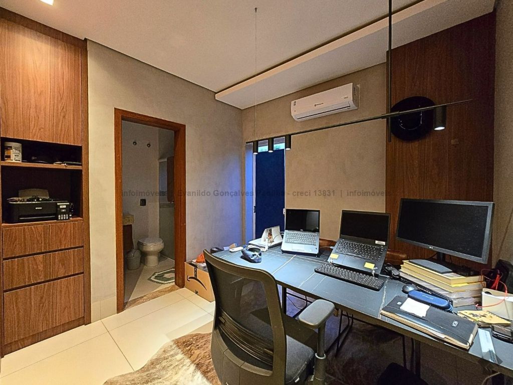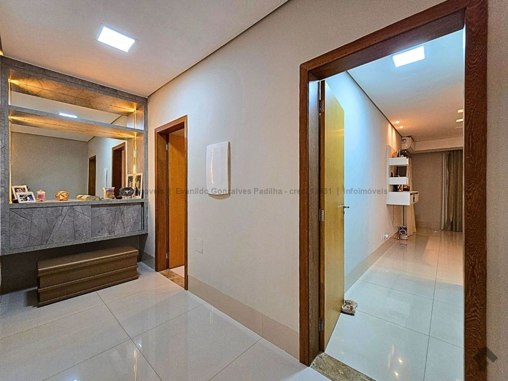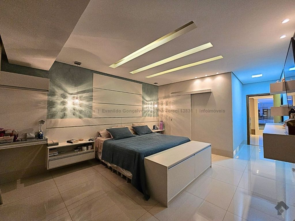 No piso inferior, o imóvel conta com ampla sala para 2 ambientes, lavabo, cozinha com ilha e armários planejados, área de serviço funcional e escritório privativo. O espaço gourmet climatizado integra-se à área externa, proporcionando um ambiente ideal para receber amigos e familiares, com espaço de TV e banheiro de apoio. A piscina aquecida de 33 m², com hidromassagem, garante momentos de lazer e relaxamento. Garagem para até 4 veículos. No piso superior, são 3 suítes confortáveis, sendo a suíte master com closet e varanda privativa, proporcionando mais conforto e privacidade.