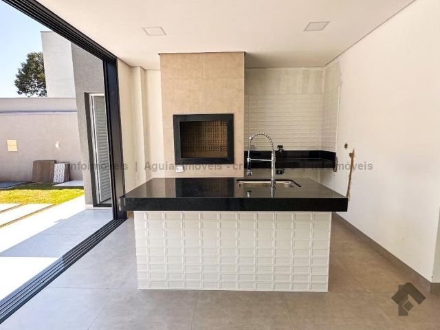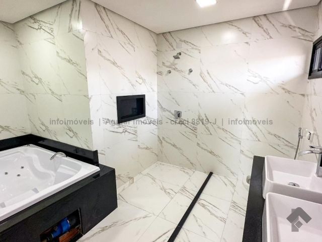 Piso térreo: living com 03 ambientes, pé direto duplo, escritório ou apartamento, lavabo, espaço gourmet integrada com sala, piscina (aquecida, com cascata e hidro massagem), cozinha com ilha de granito, despensa, lavanderia, banheiro, com muito verde. Piso superior: 01 suíte master com closet e hidro massagem, 02 apartamentos com varanda com uma vista linda. Aquecimento solar exclusivo para piscina, banheiros e cozinha. Todas as esquadrias em alumínio. Porta da suíte master automatizada. Garagem com 02 vagas coberta e 02 vagas descoberta.