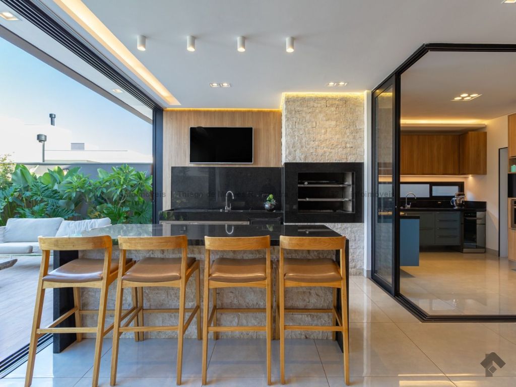 Ar condicionado em todas as suítes, piscina aquecida com hidromassagem, revestimento de rockface na sala de TV, espaço gourmet com revestimento, cozinha planejada, estuda-se proposta de porteira fechada e fachada de travertino.