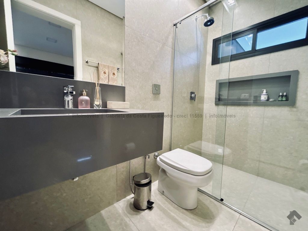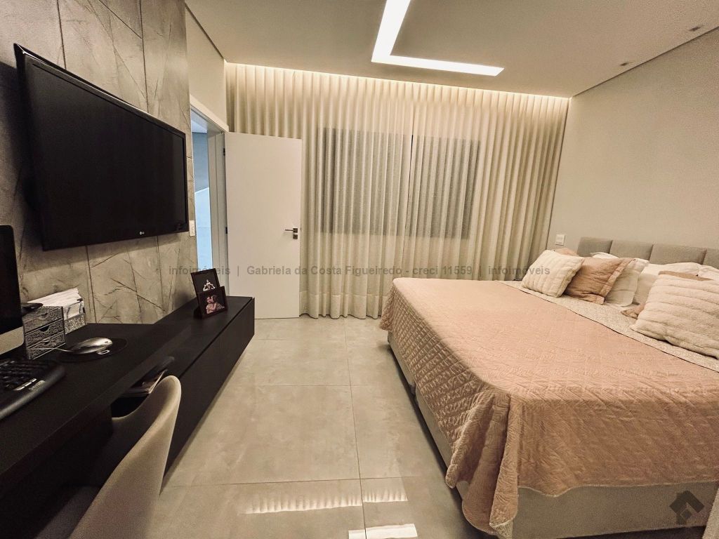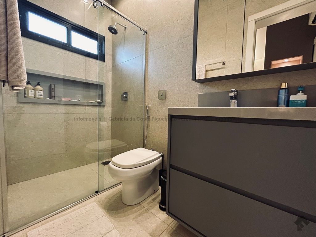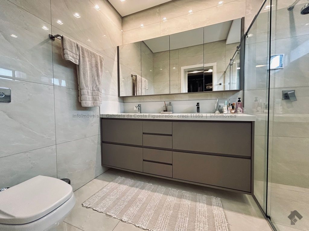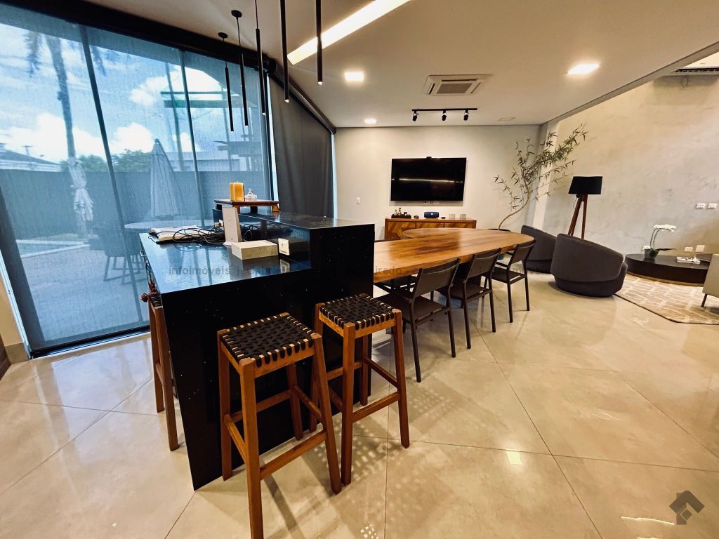 Projeto contemporâneo impecável tanto na decoração como na marcenaria e iluminação. Conforto e bom gosto em cada detalhe no living integrado com pé direito duplo, lavabo, sala de jantar, cozinha e espaço gourmet. Área de serviço com despensa. Uma suíte no térreo. Área de lazer com piscina aquecida e WC de apoio. Uma escada em vidro moderna leva a três suítes aconchegantes e confortáveis. A master possui generoso closet e WC espaçoso com cuba dupla.