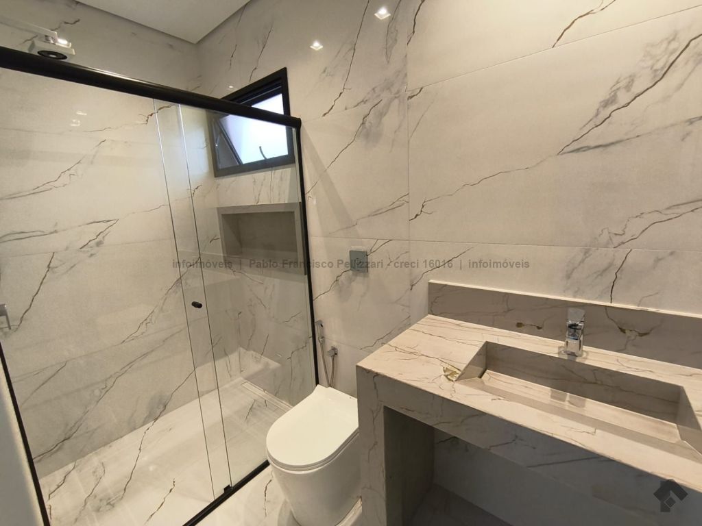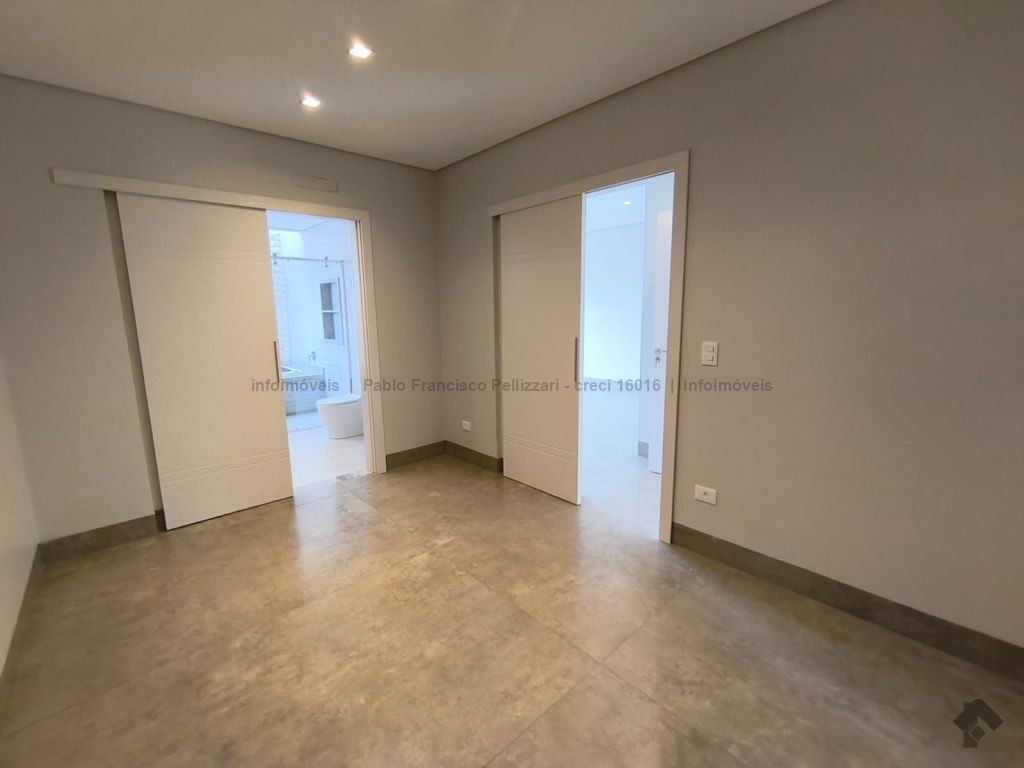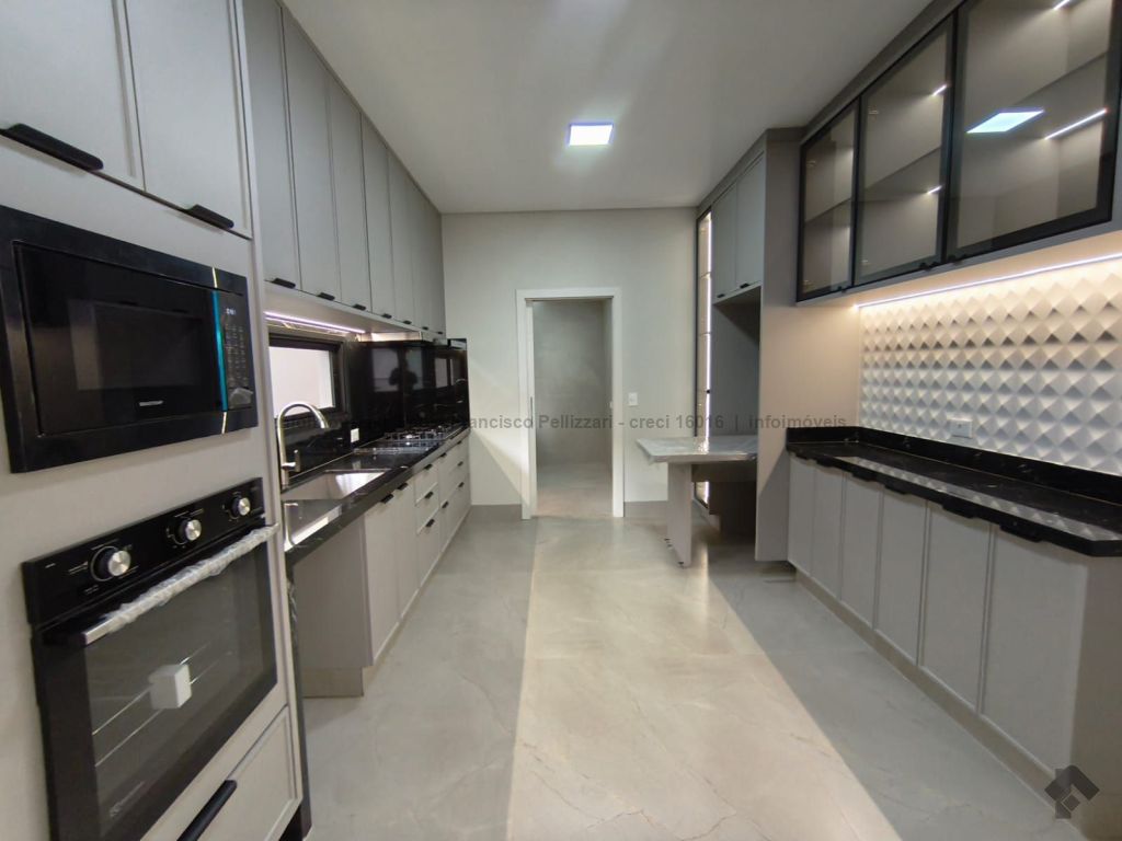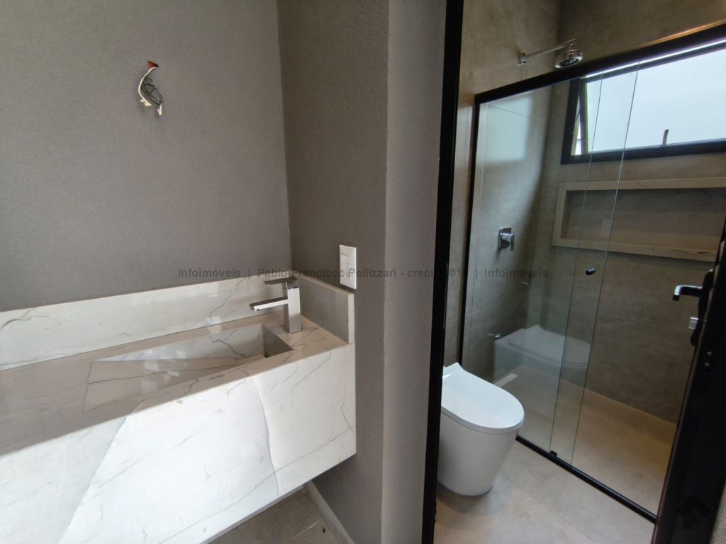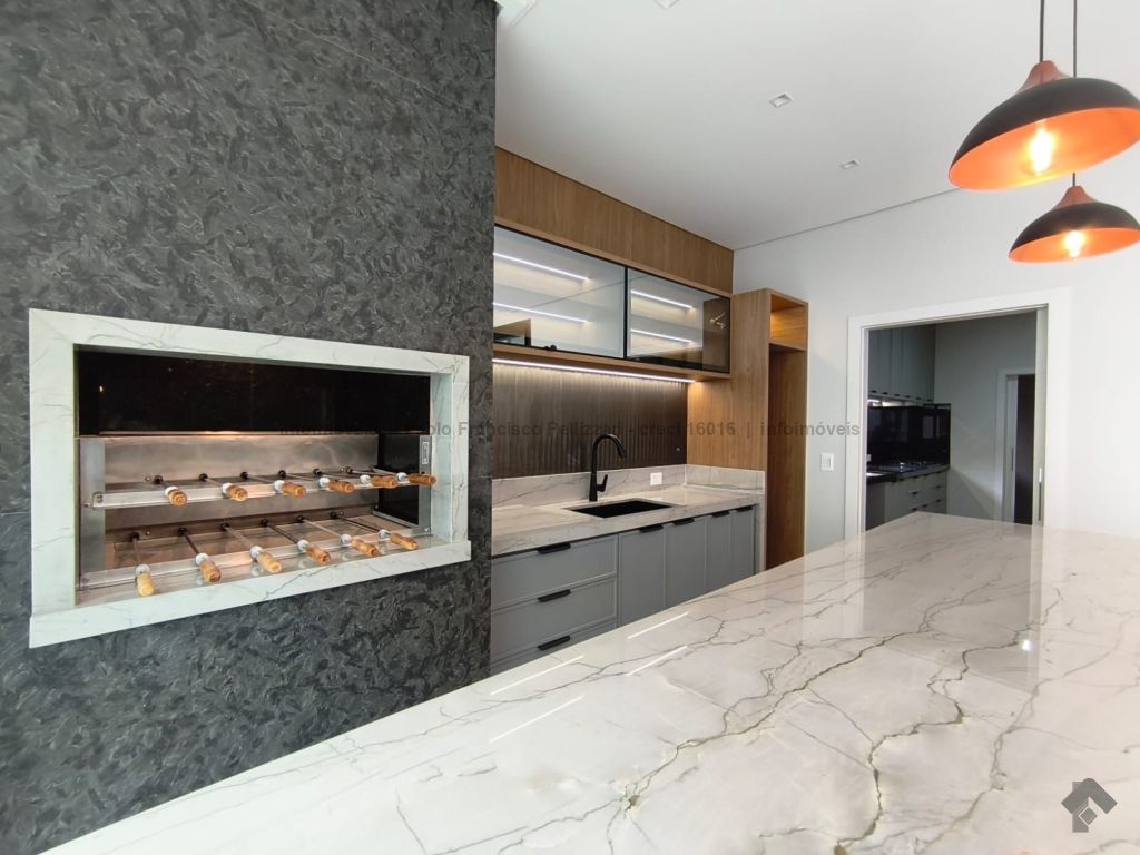 Amplo sobrado com 328 m² de área construída (18 m² de piscina). Piso inferior: lavabo, 1 suíte/escritório, ampla sala 3 ambientes, cozinha e área gourmet com planejados e equipados com churrasqueira com espetos automatizados, micro-ondas, forno, cooktop e coifa, WC social para atender piscina e gourmet integrado, piscina aquecida e ducha externa, área de serviço, garagem para 3 veículos cobertos. Piso superior: 3 suítes amplas, sendo uma master com closet generoso, hidromassagem com cromoterapia e ozônio e ampla sacada com vista para a reserva de mata, 1 sala íntima bem ampla, com espaço inclusive para copa. Condomínio com segurança e lazer completo.